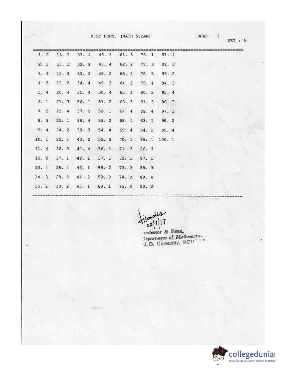 MDUCEE 2017 M.Sc. (Hons) Math 5 Year Integrated Set A Question paper with answer key pdf is available for download. The exam was successfully organized by Maharishi Dayanand University. The question paper comprised a total of 100 questions.