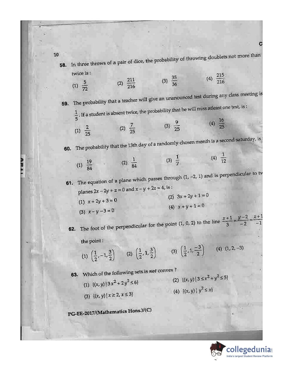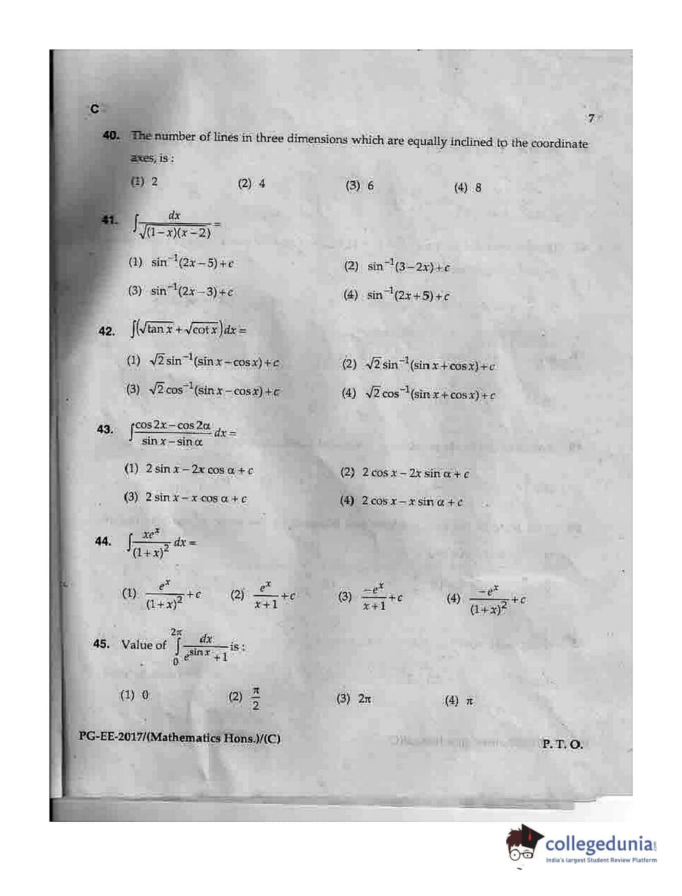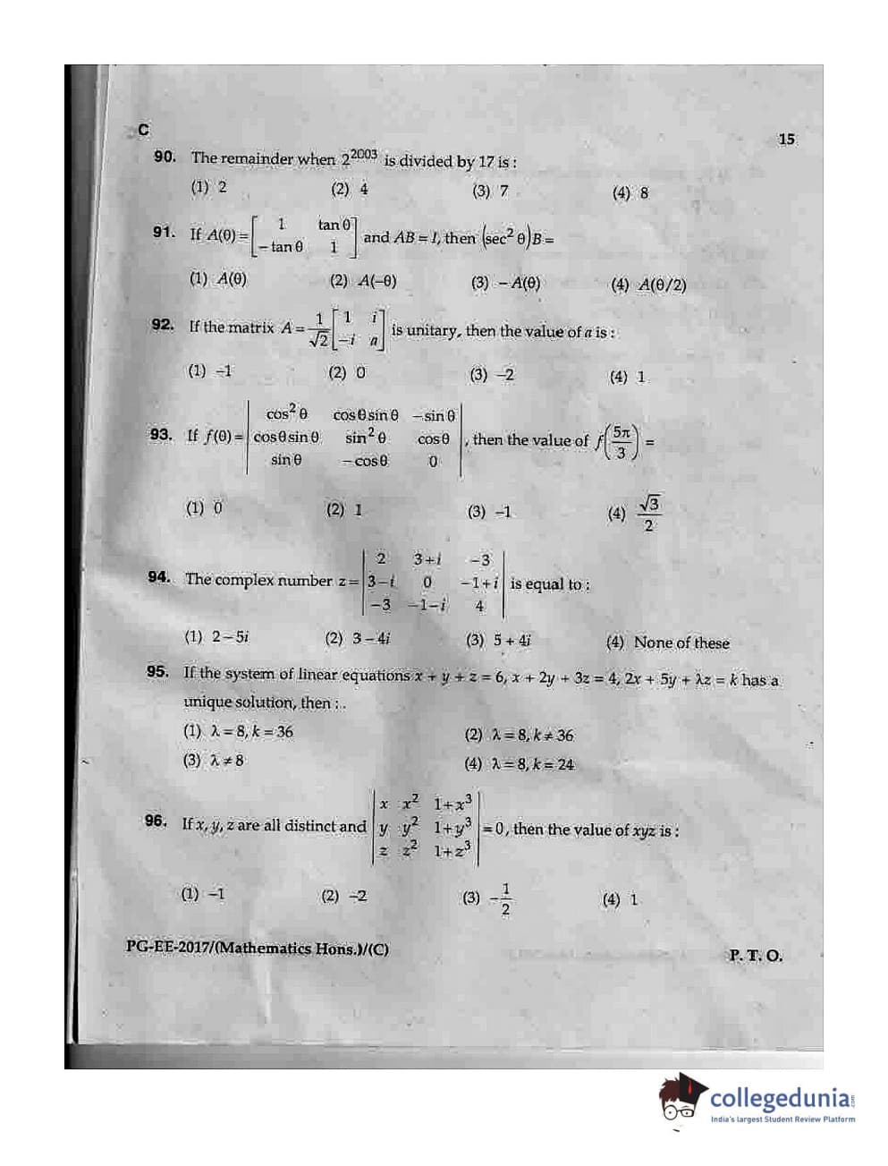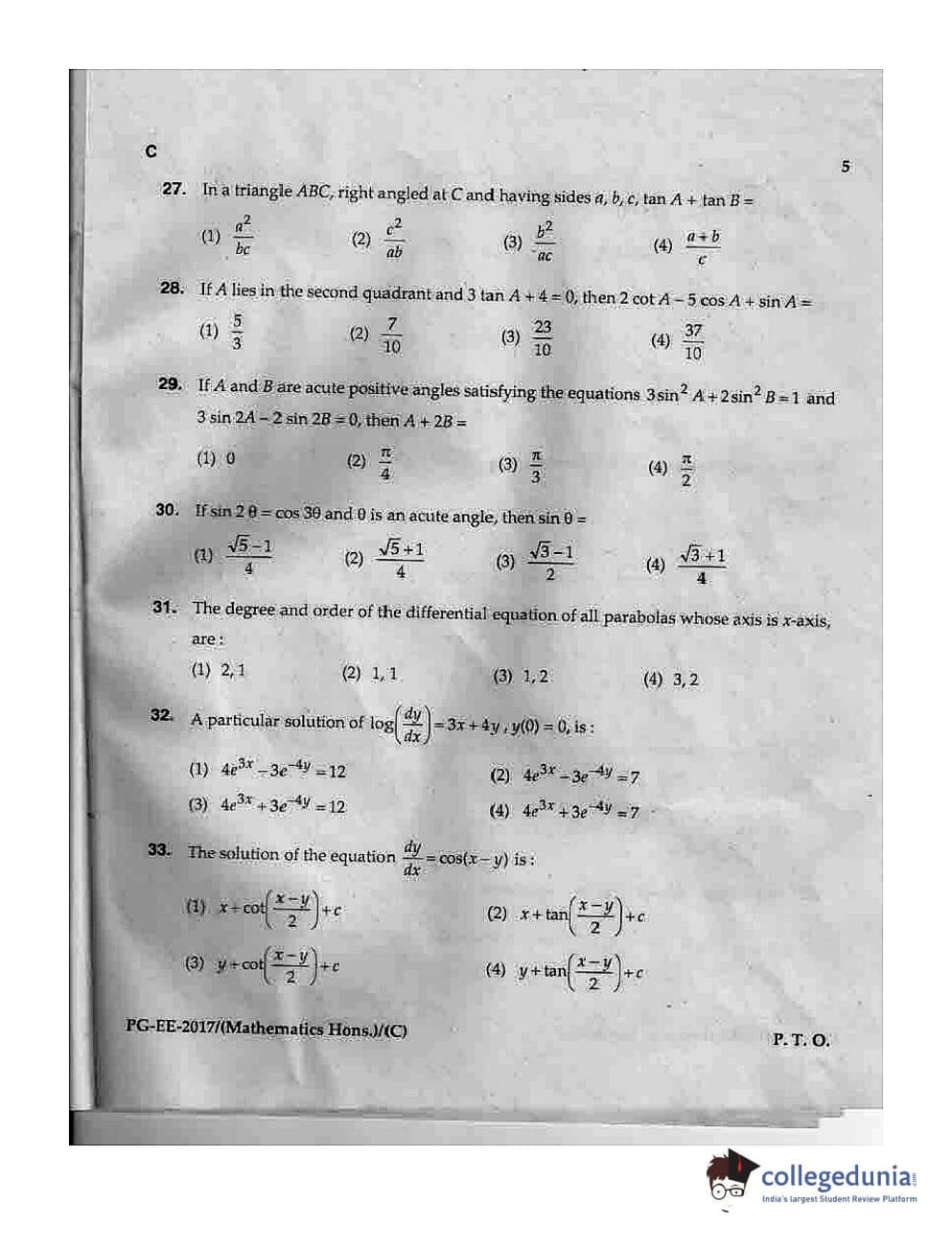 MDUCEE 2017 M.Sc. (Hons) Math 5 Year Integrated Set C Question Paper with Answer Key PDFs