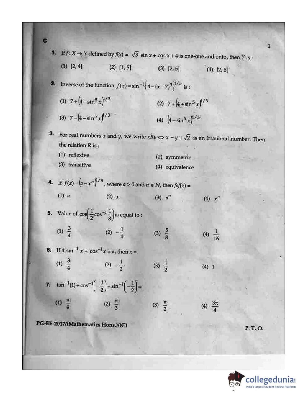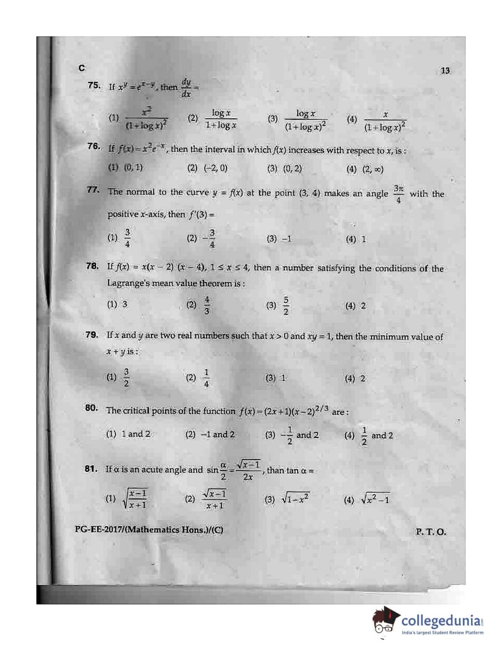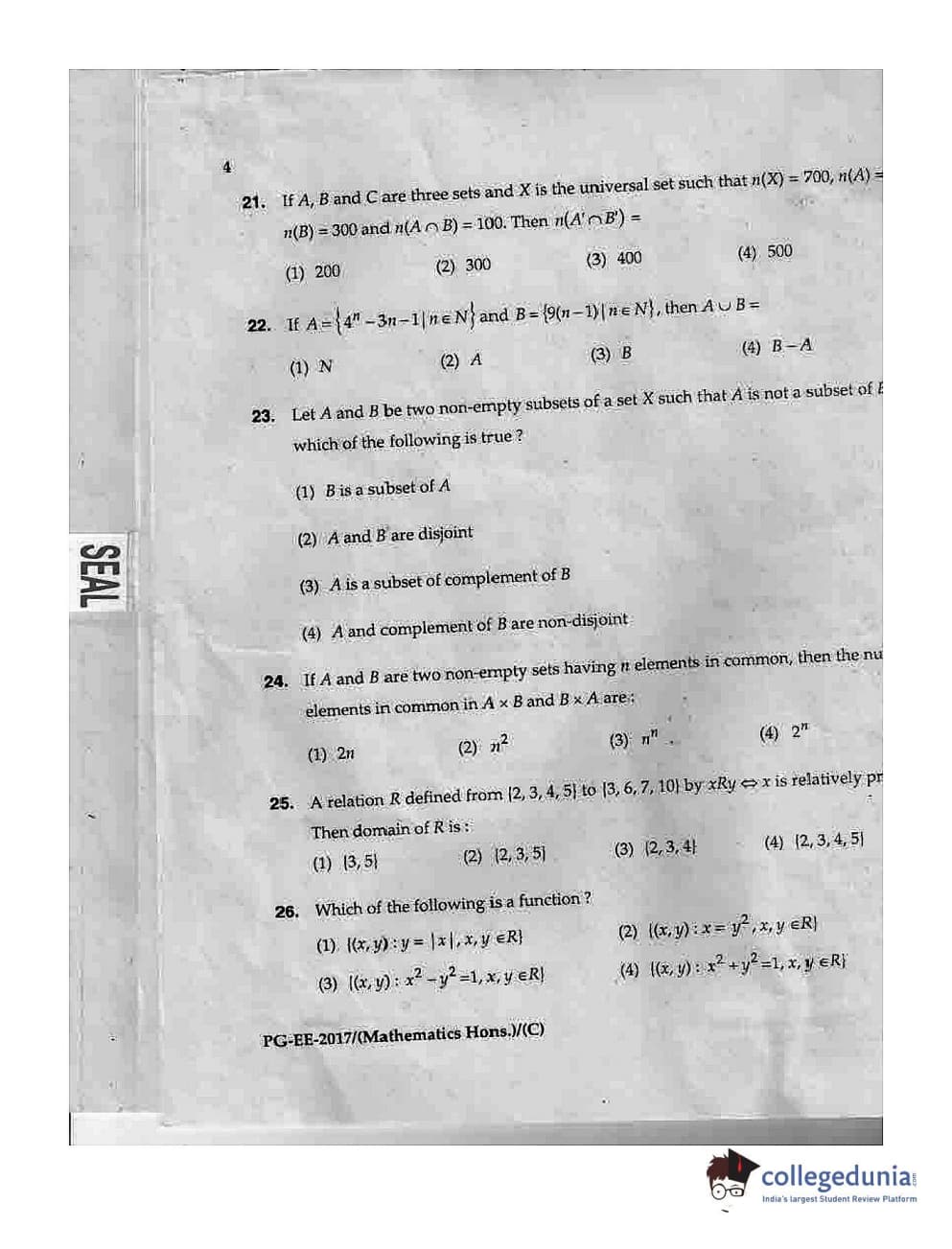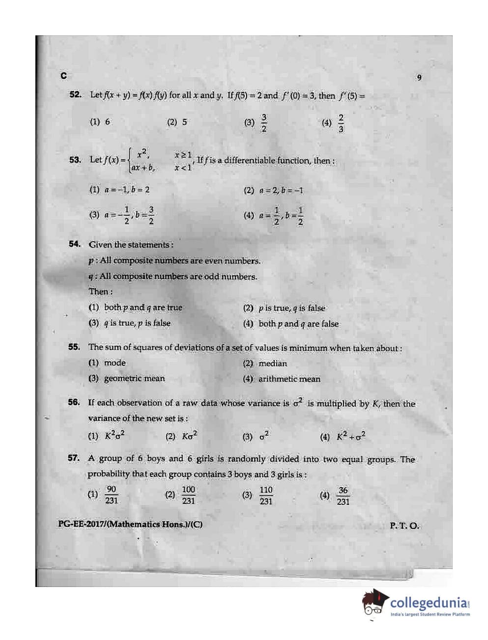 MDUCEE 2017 M.Sc. (Hons) Math 5 Year Integrated Set C Question Paper with Answer Key PDFs