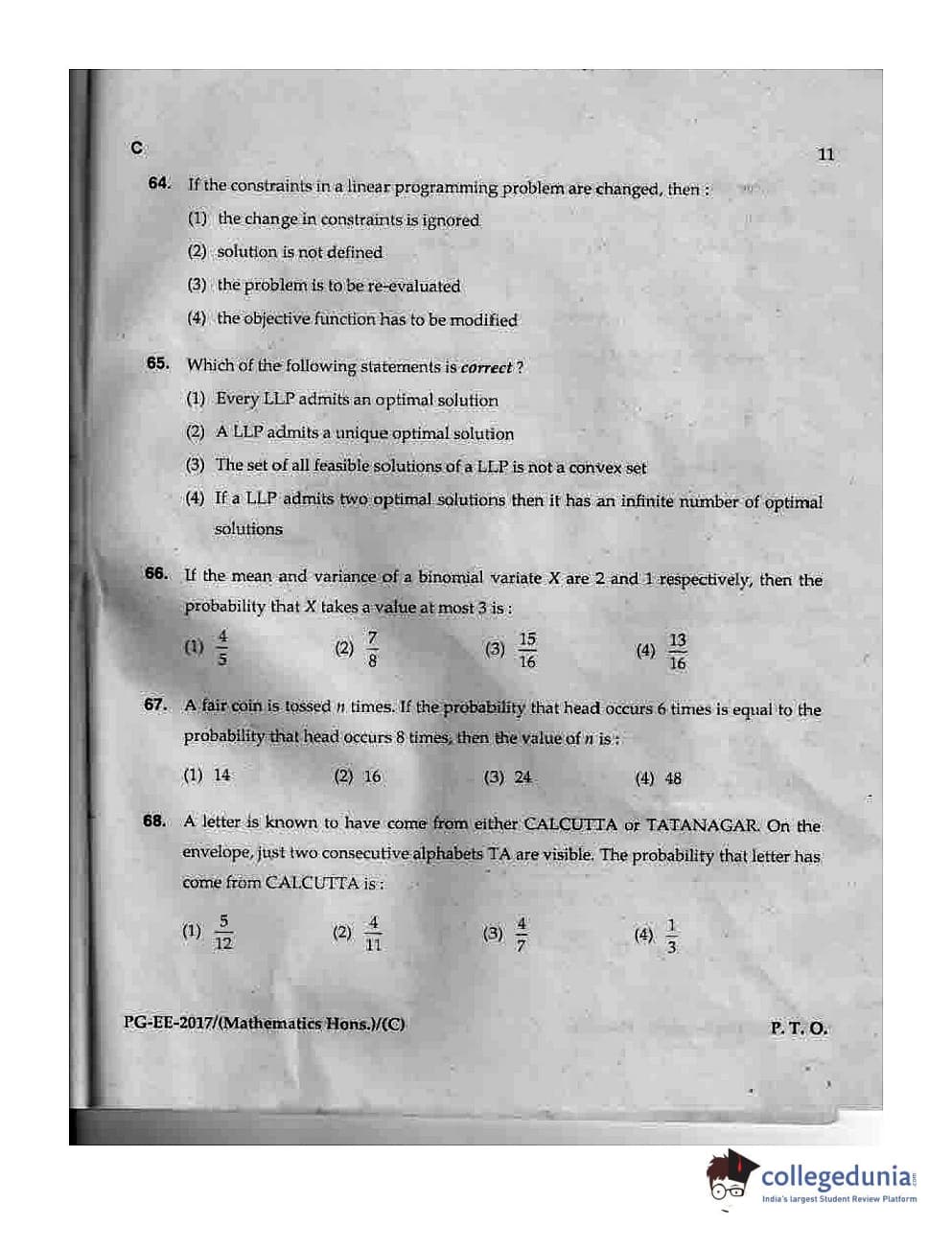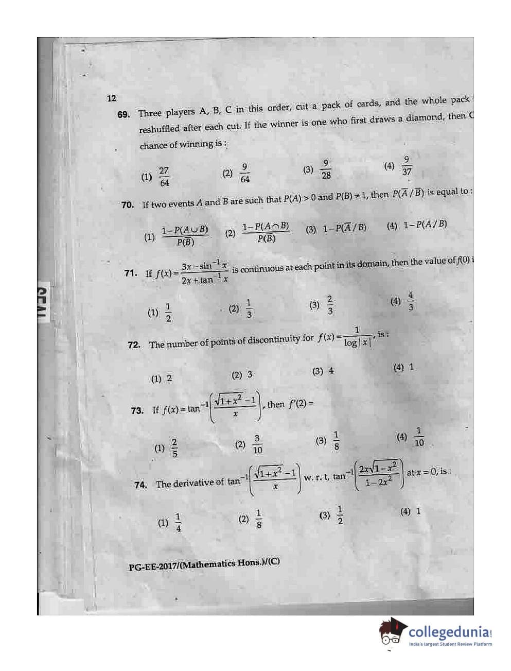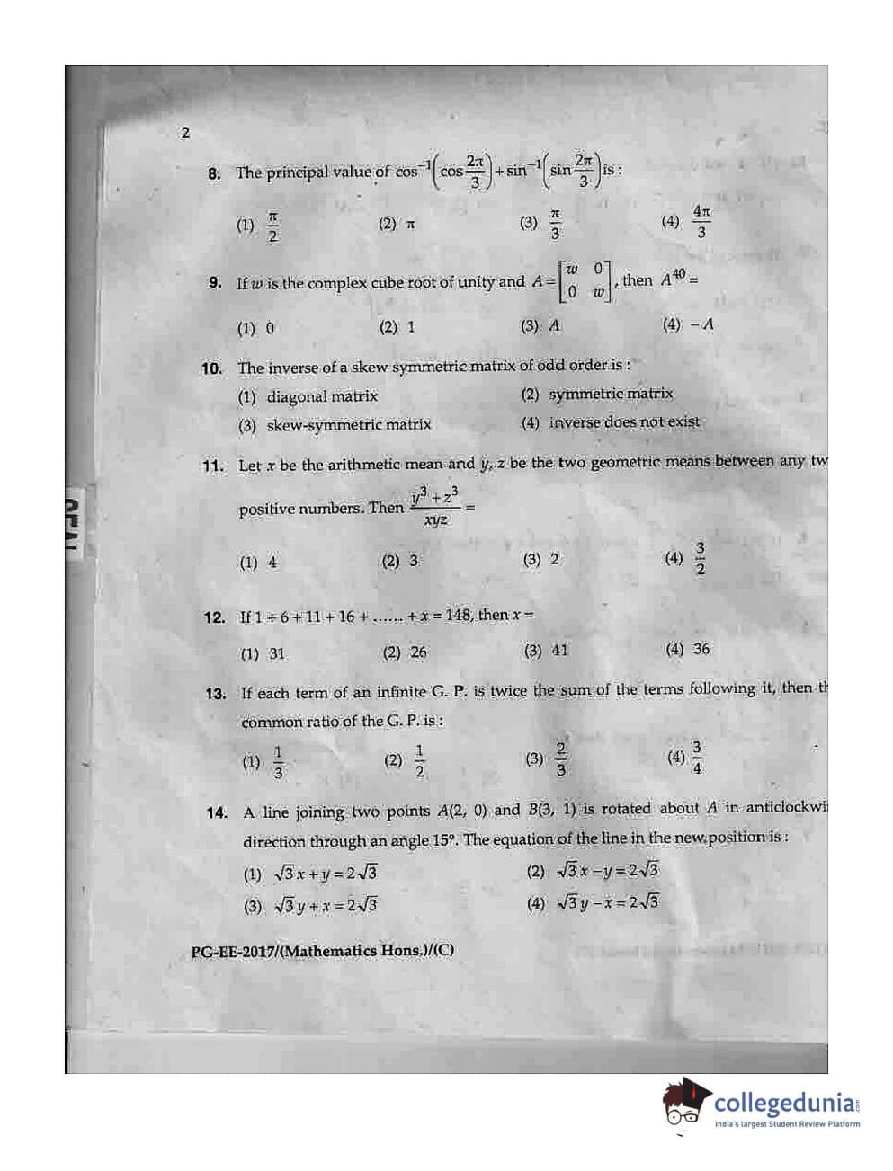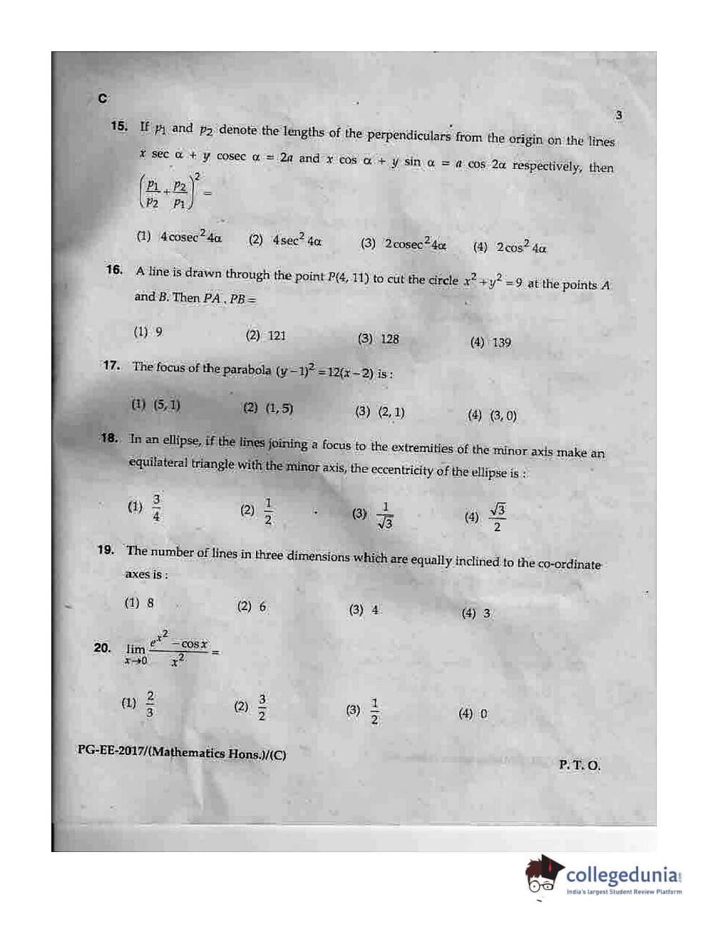 MDUCEE 2017 M.Sc. (Hons) Math 5 Year Integrated Set C Question Paper with Answer Key PDFs