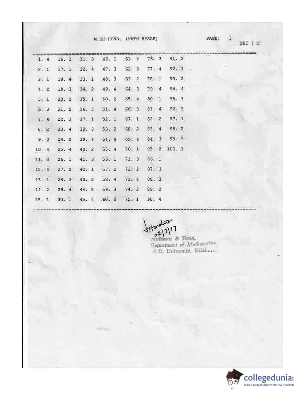 MDUCEE 2017 M.Sc. (Hons) Math 5 Year Integrated Set C Question paper with answer key pdf is available for download. The exam was successfully organized by Maharishi Dayanand University. The question paper comprised a total of 100 questions.