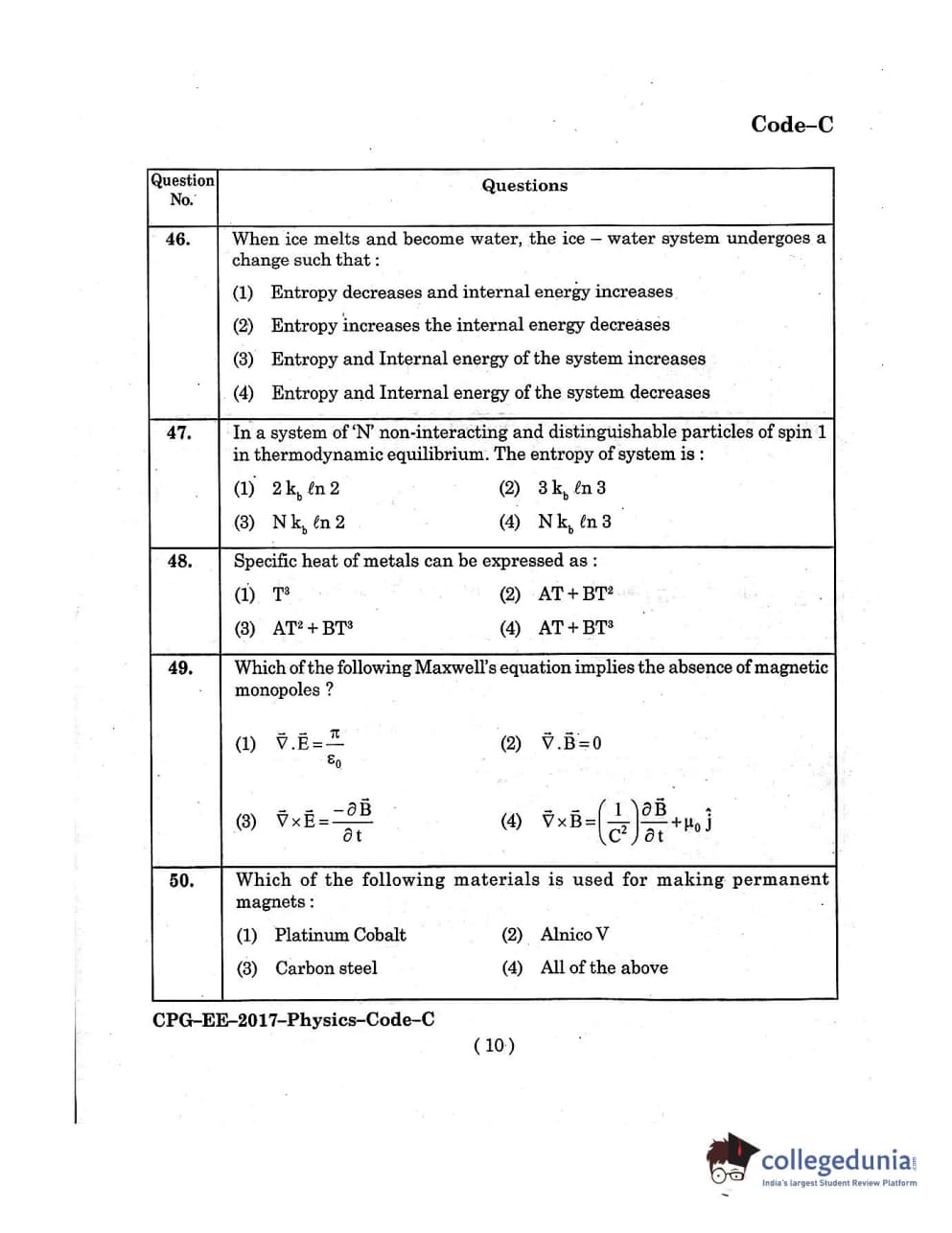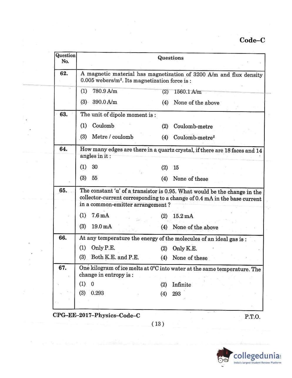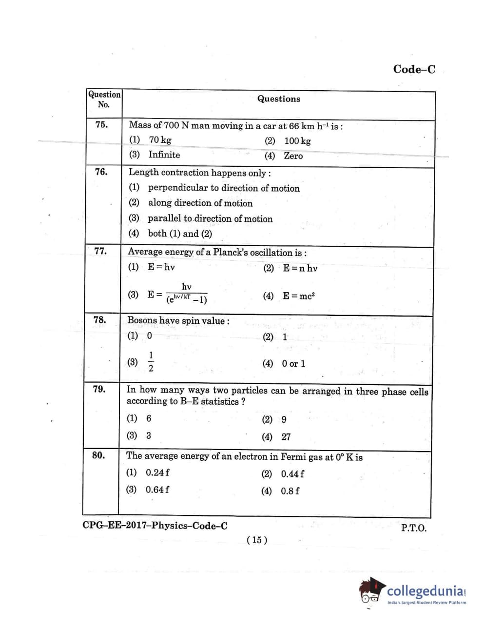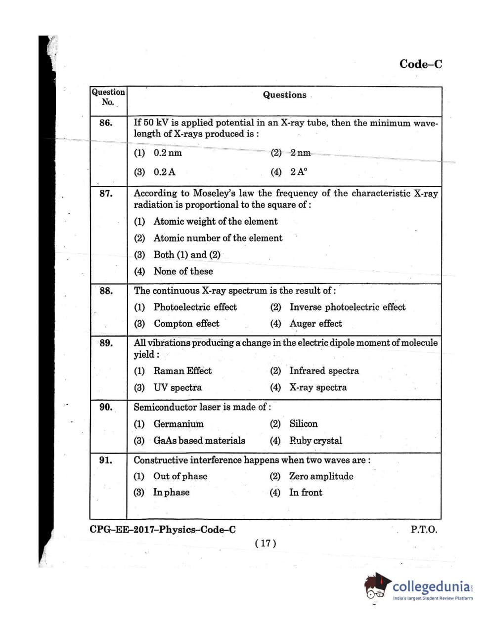MDUCEE 2017 Physics Set C Question Paper with Answer Key PDFs