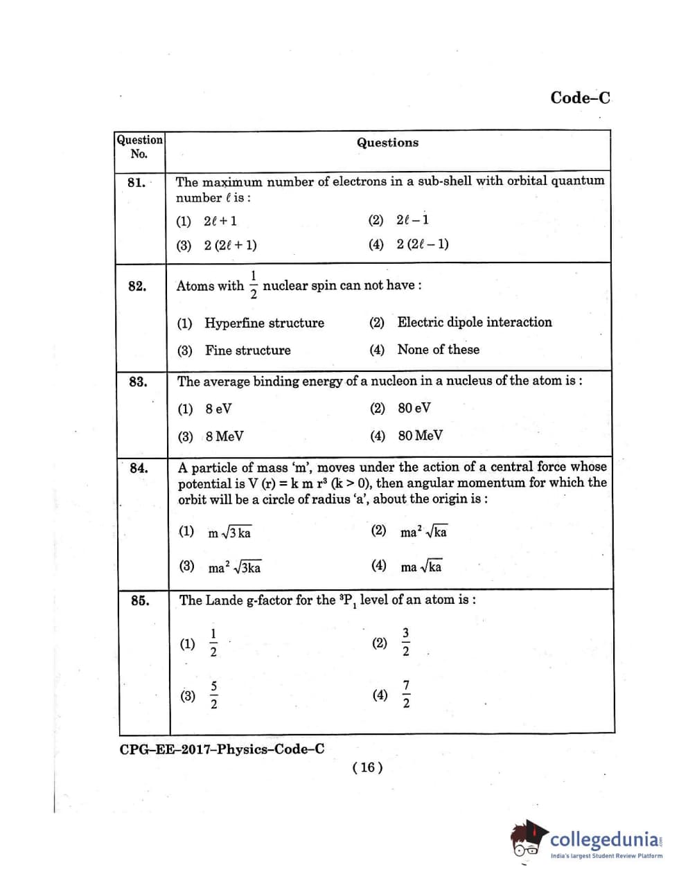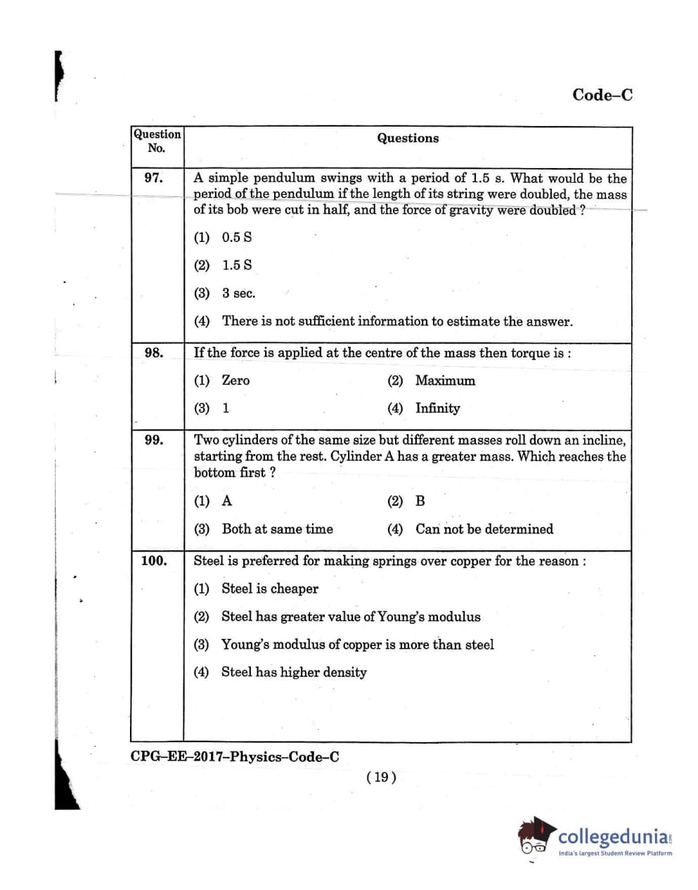| MDUCEE 2017 Physics Set C Question Paper PDF | MDUCEE 2017 Physics Set C Answer Key PDF |