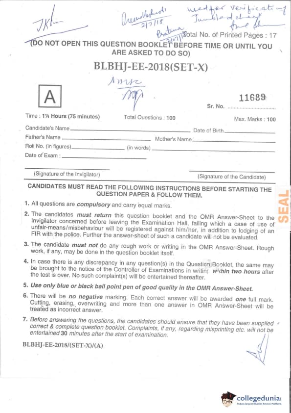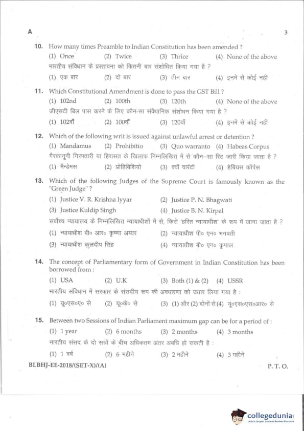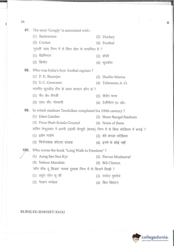 MDUCEE 2018 BA LLB 5 Years Set A Question paper with answer key pdf is available for download. The exam was successfully organized by Maharishi Dayanand University. The question paper comprised a total of 100 questions.