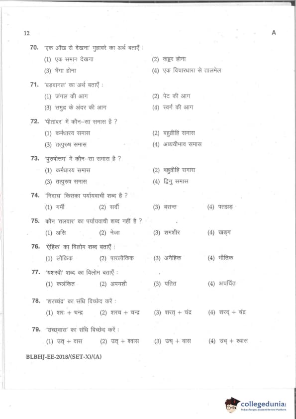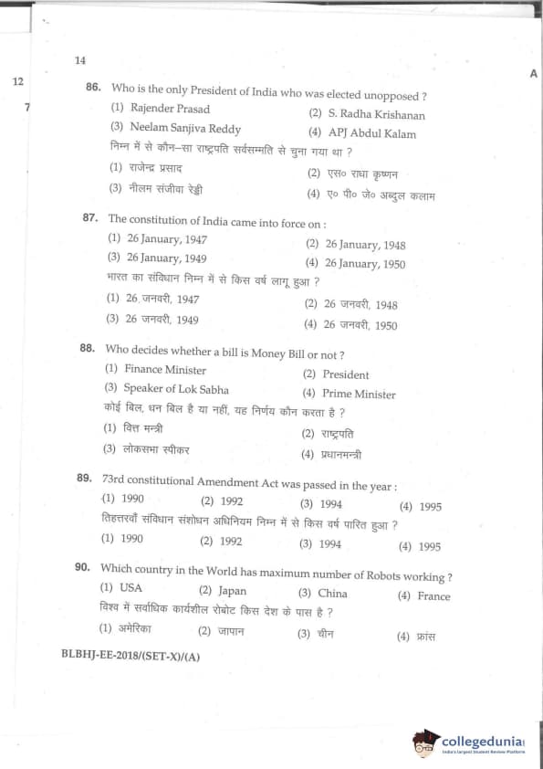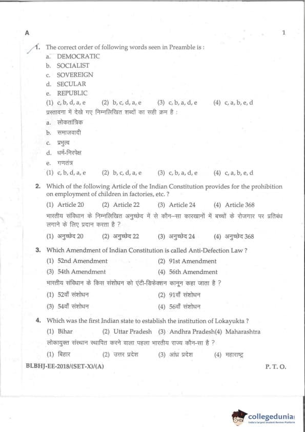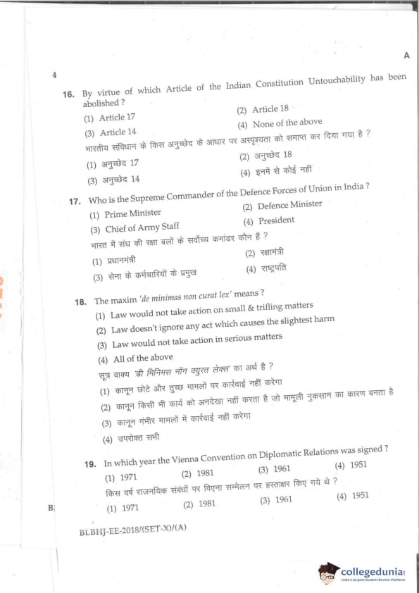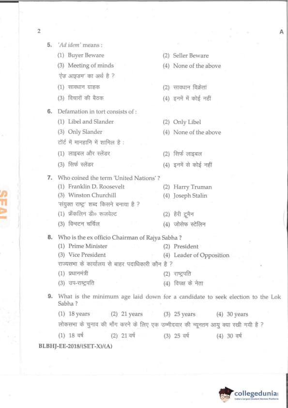 MDUCEE 2018 BA LLB 5 Years Set A Question Paper with Answer Key PDFs
