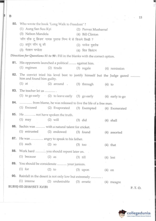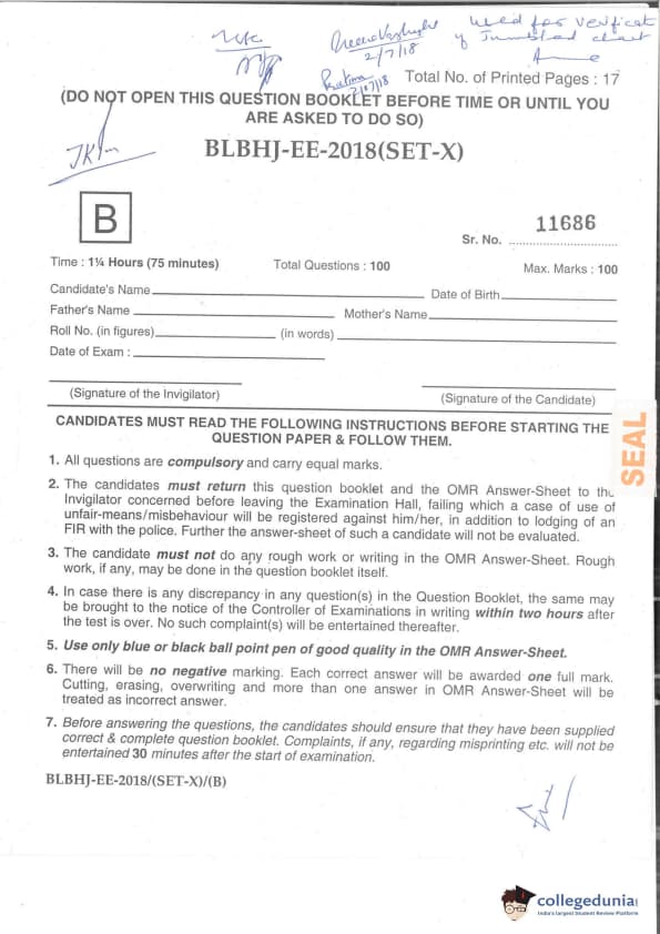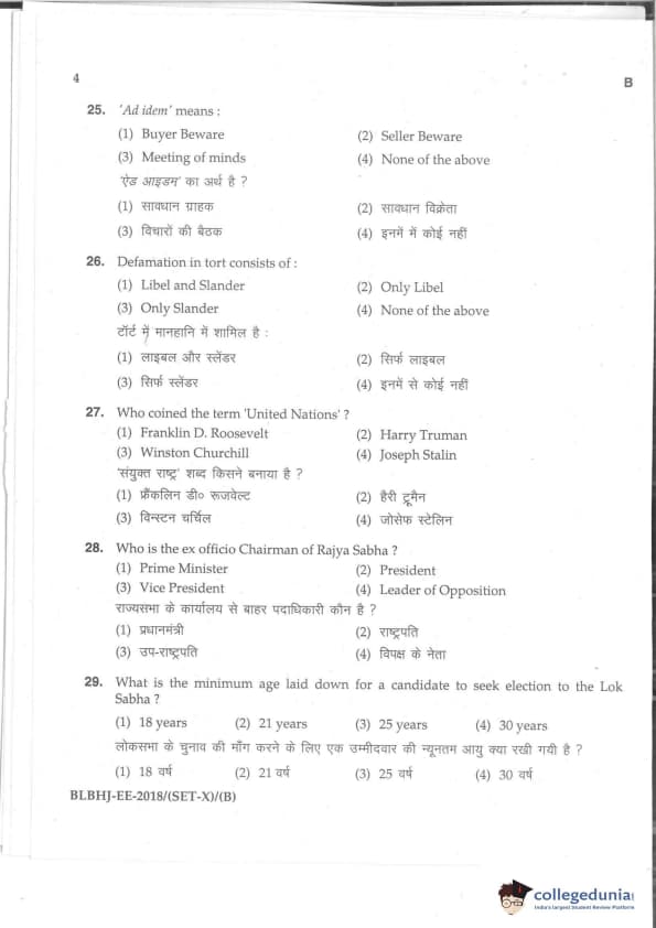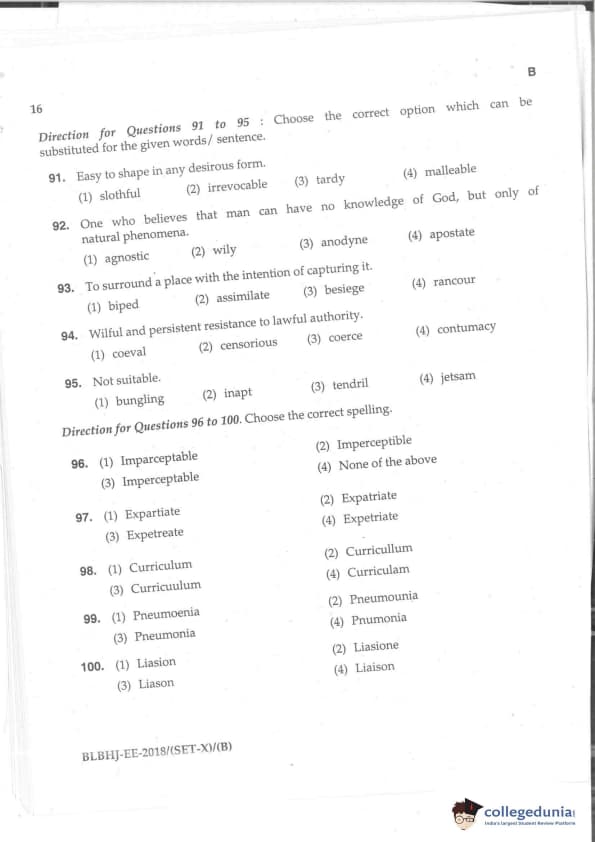 MDUCEE 2018 BA LLB 5 Years Set B Question paper with answer key pdf is available for download. The exam was successfully organized by Maharishi Dayanand University. The question paper comprised a total of 100 questions.