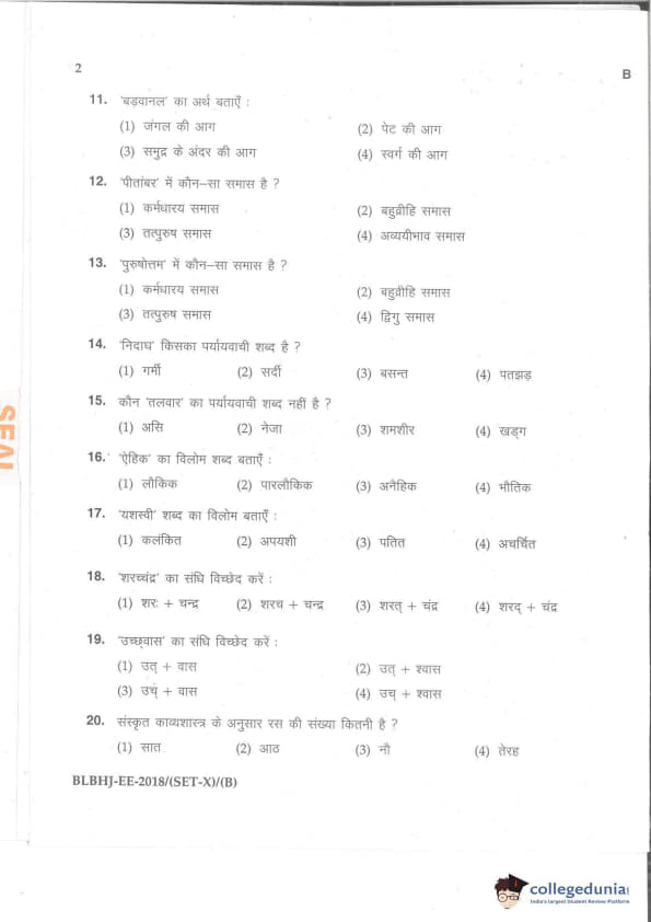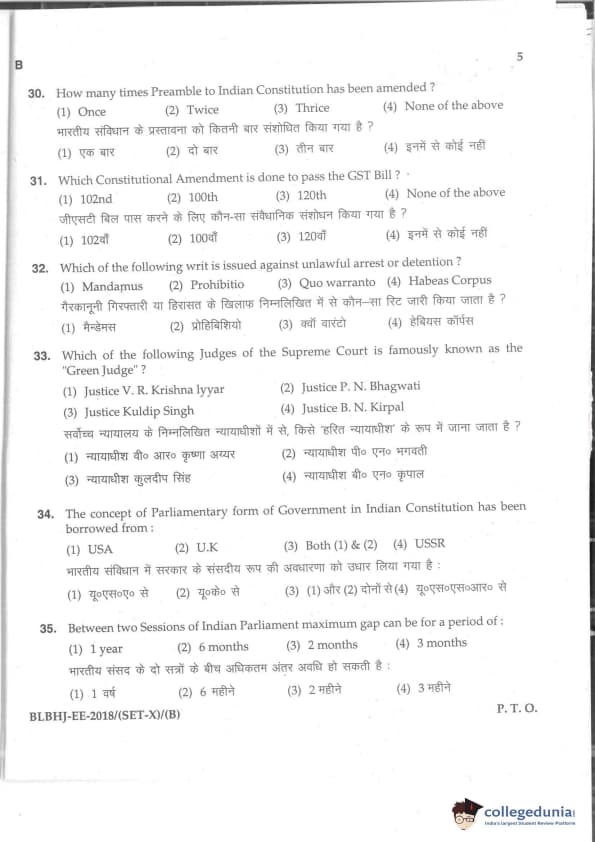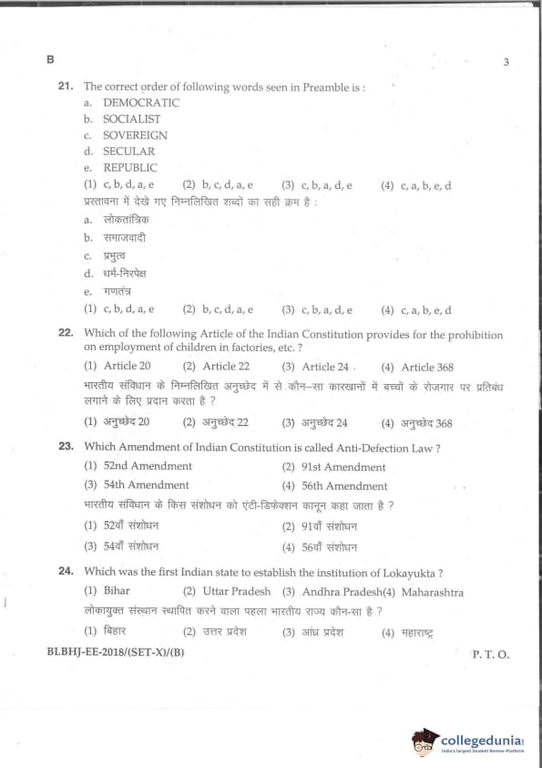 MDUCEE 2018 BA LLB 5 Years Set B Question Paper with Answer Key PDFs