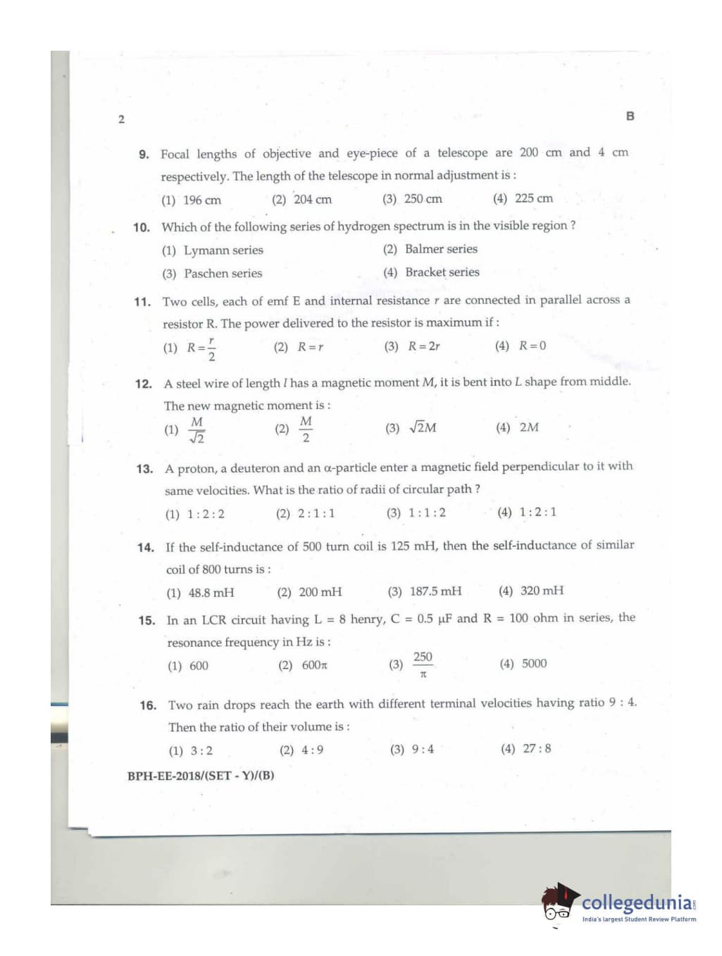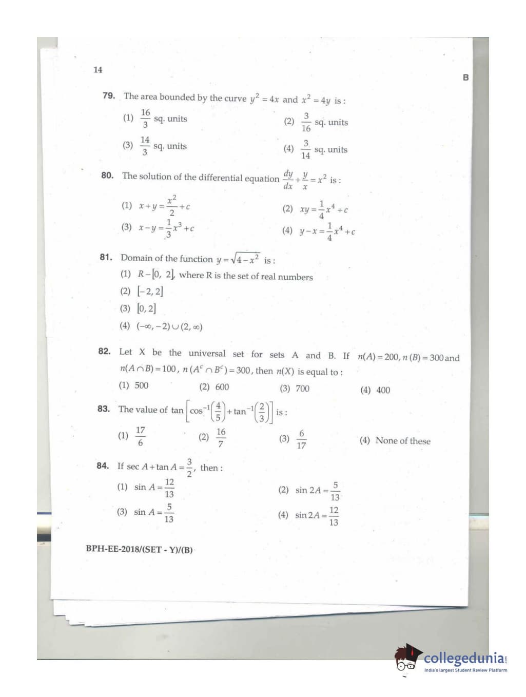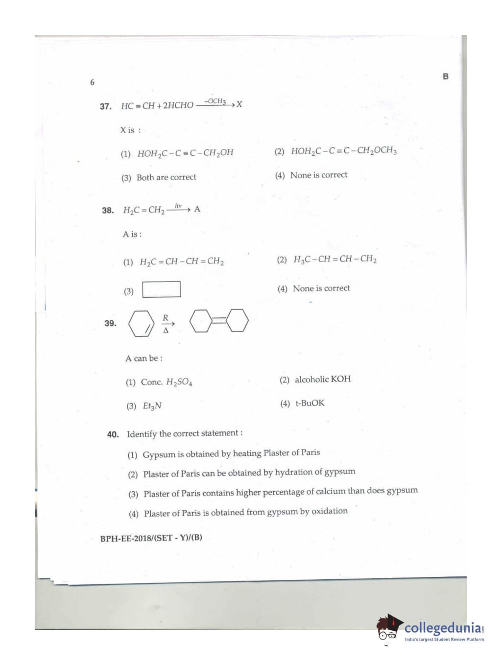 MDUCEE 2018 B.Pharma Set B Question Paper with Answer Key PDFs