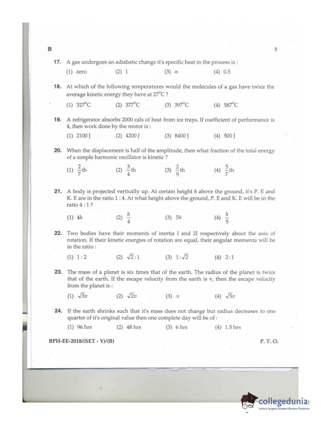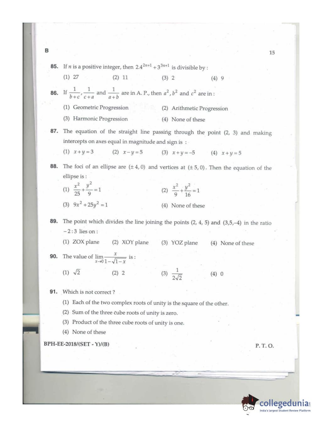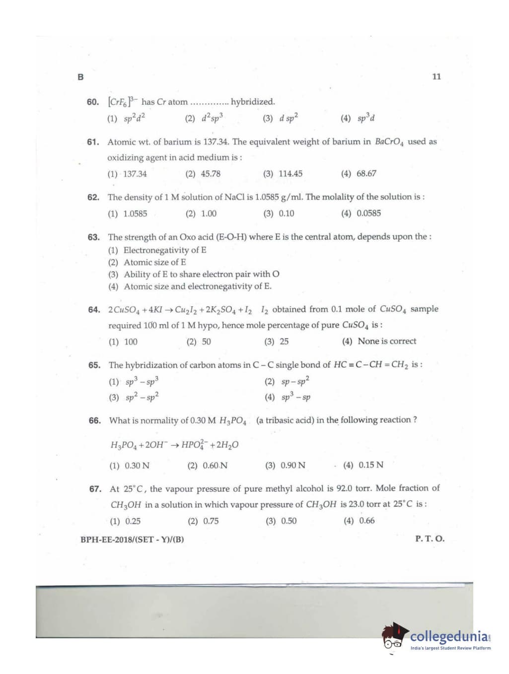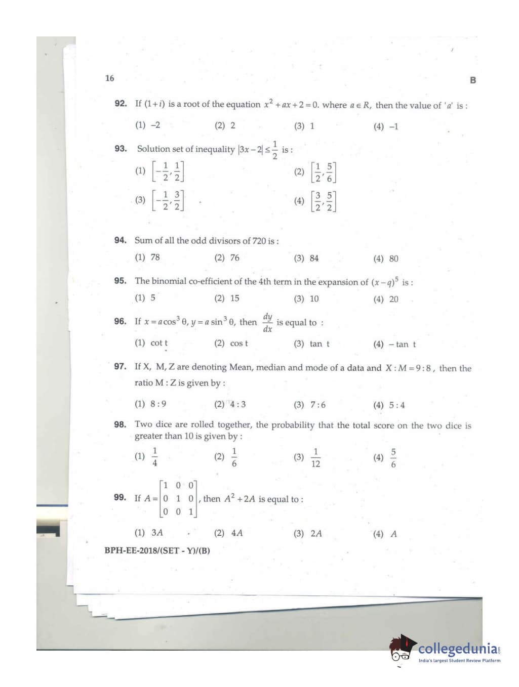MDUCEE 2018 B.Pharma Set B Question Paper with Answer Key PDFs