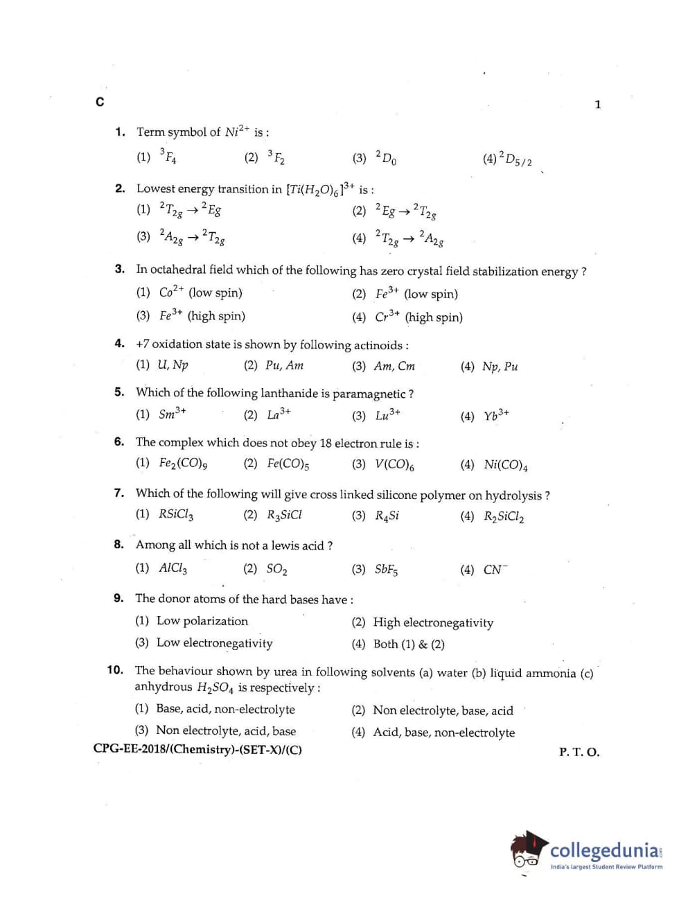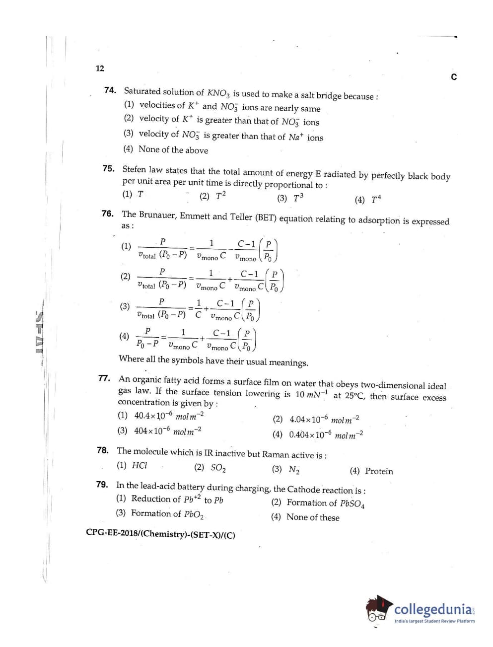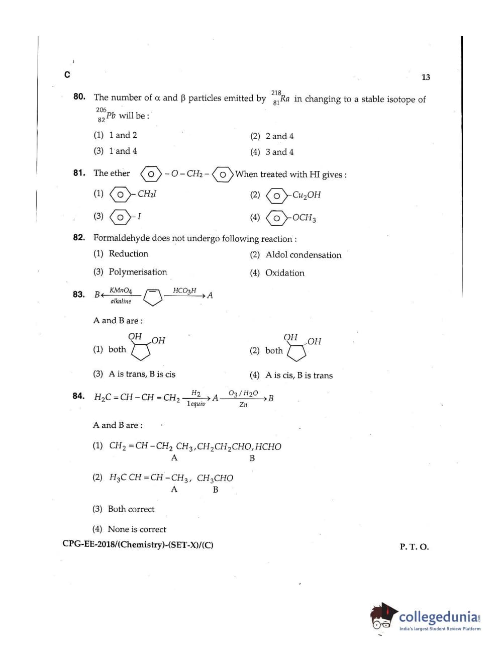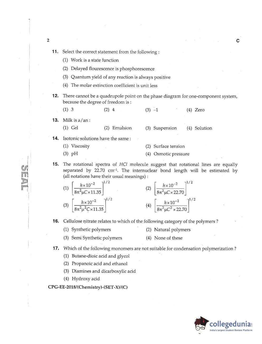 MDUCEE 2018 Chemistry Set C Question Paper with Answer Key PDFs