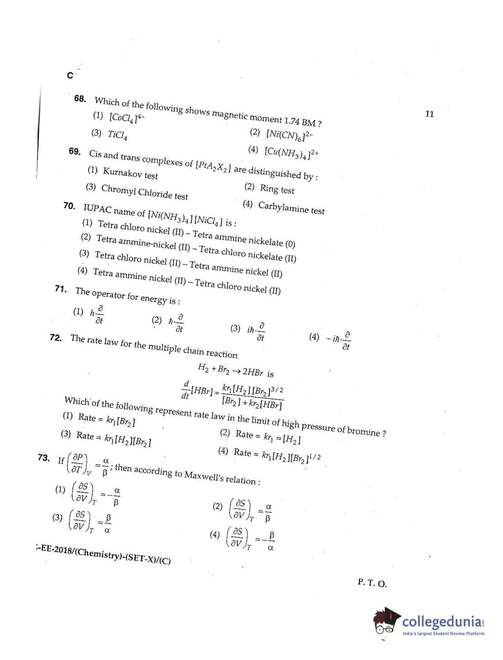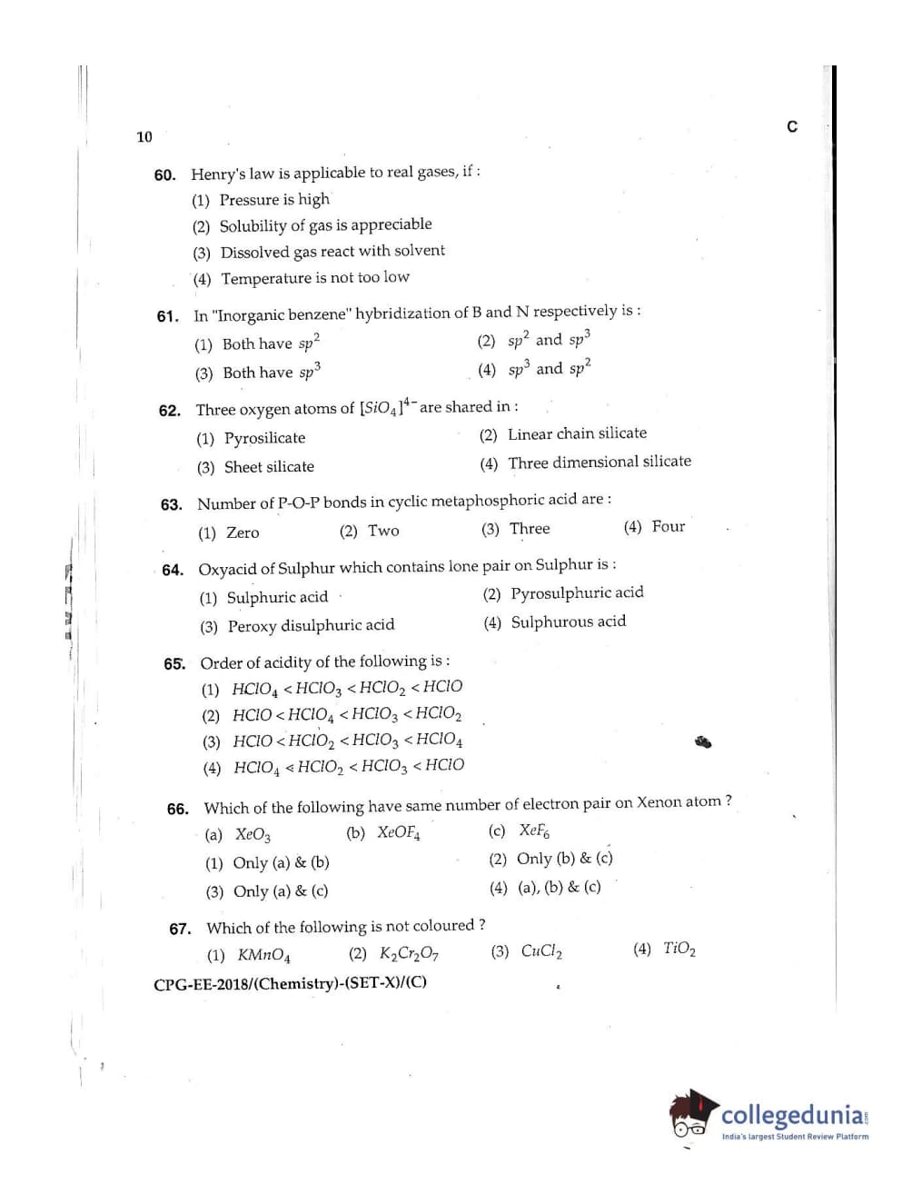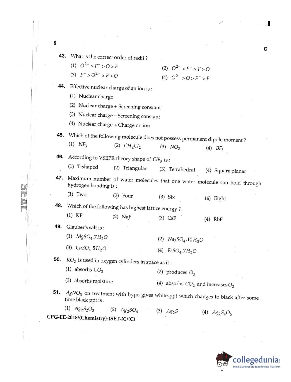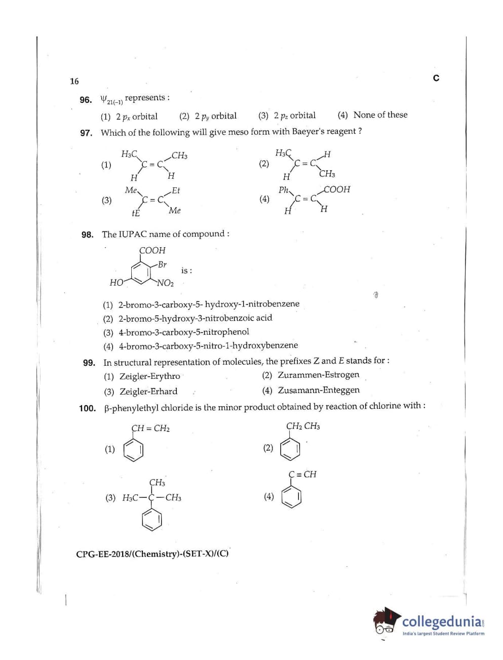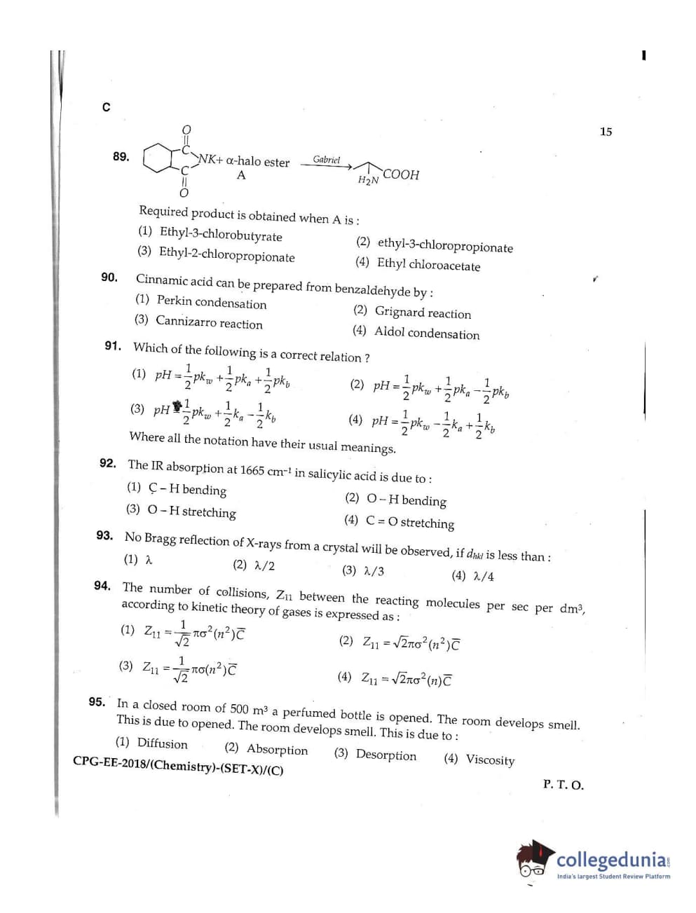 MDUCEE 2018 Chemistry Set C Question Paper with Answer Key PDFs