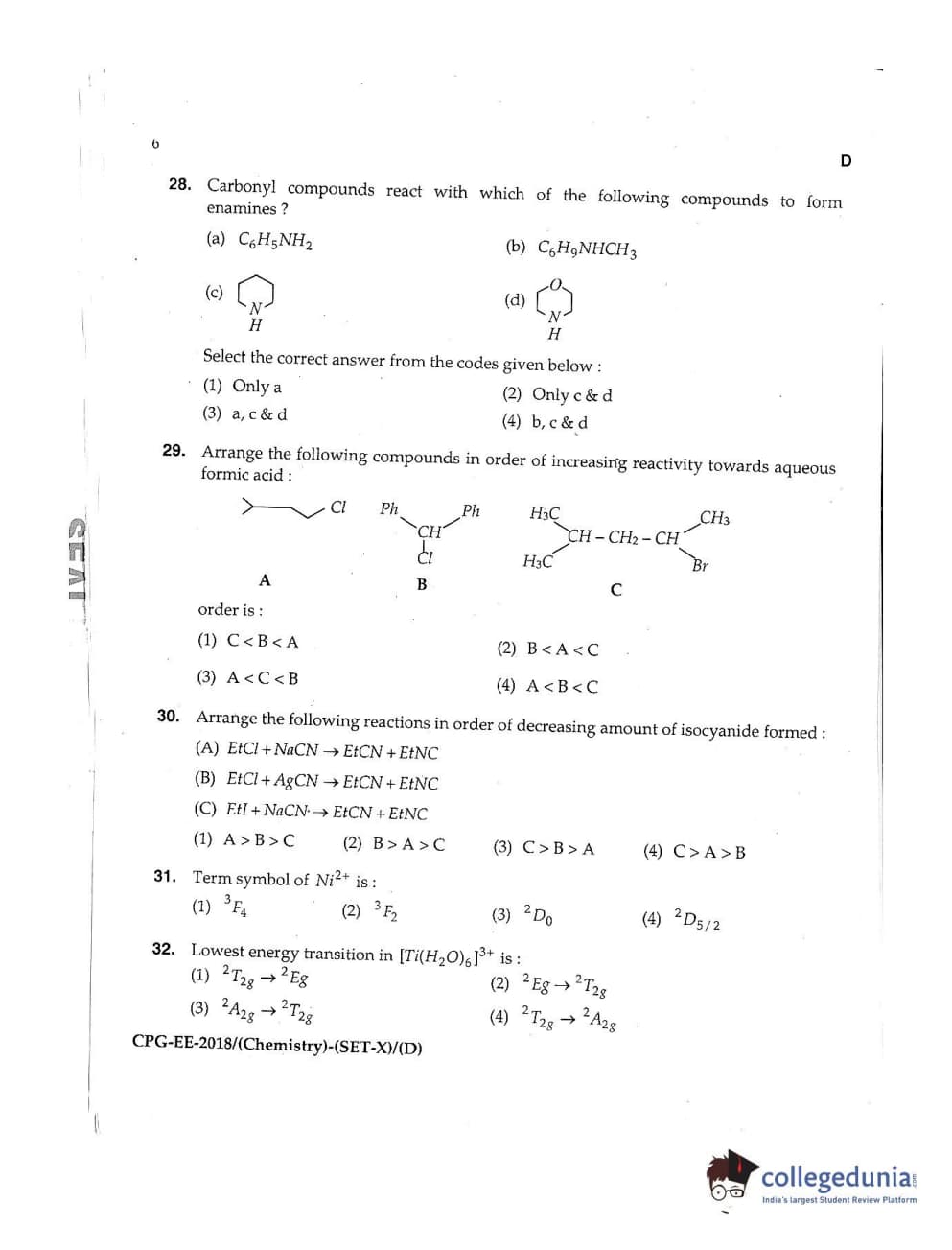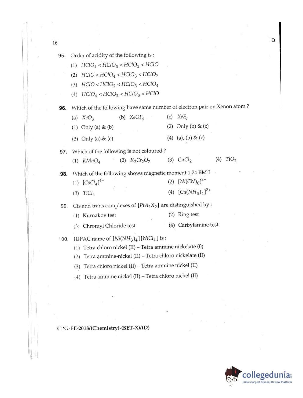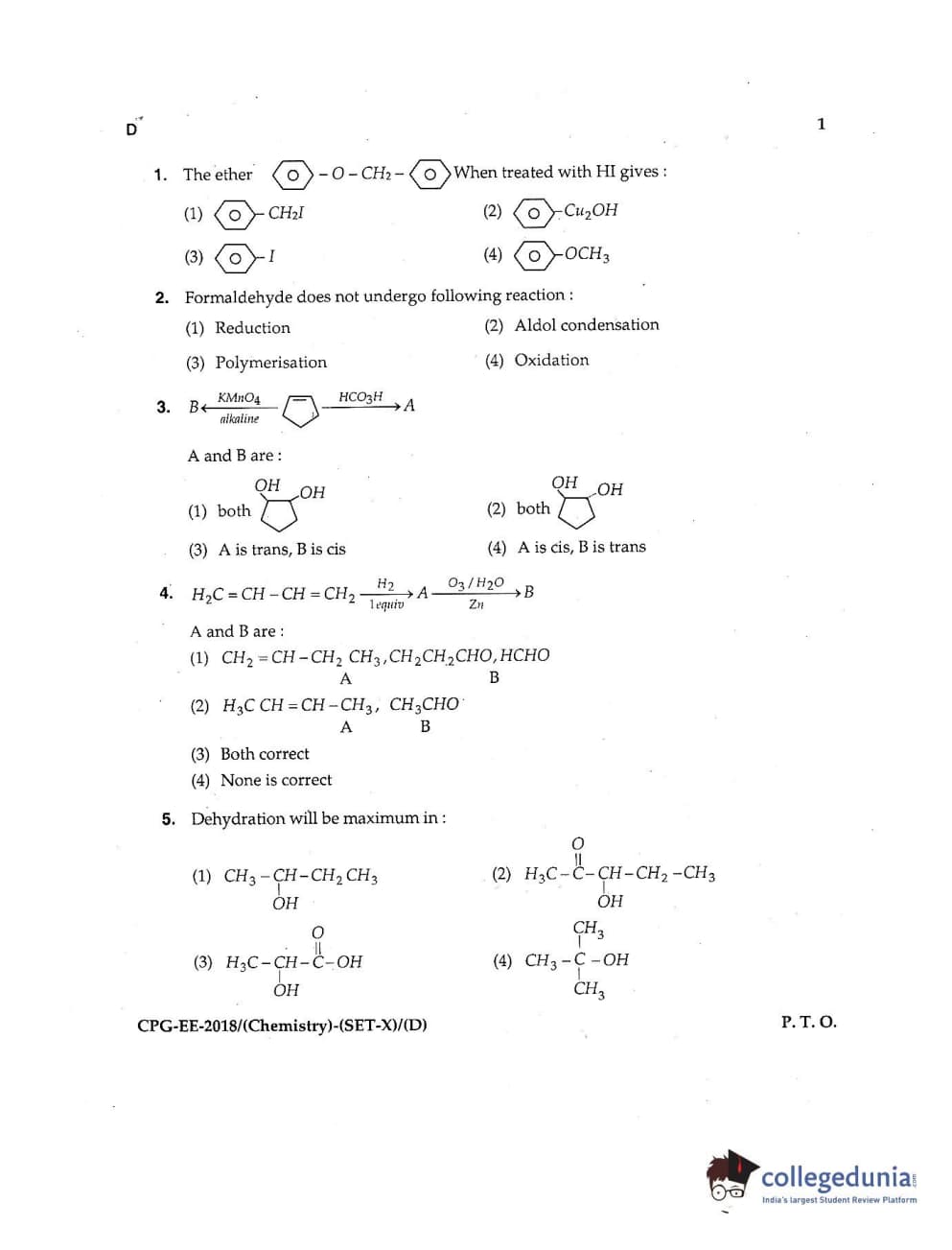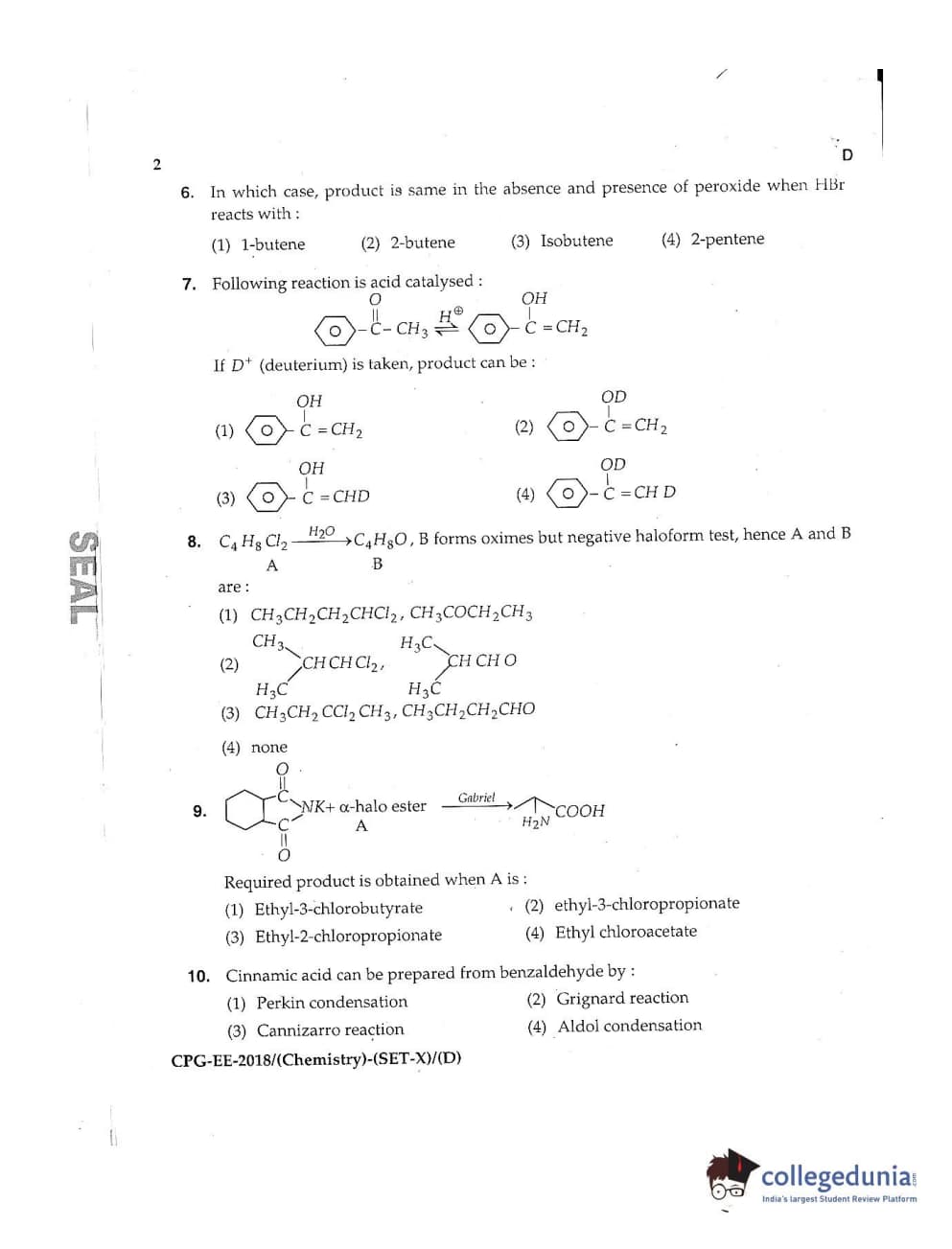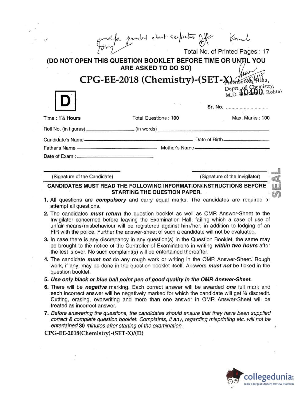 MDUCEE 2018 Chemistry Set D Question Paper with Answer Key PDFs