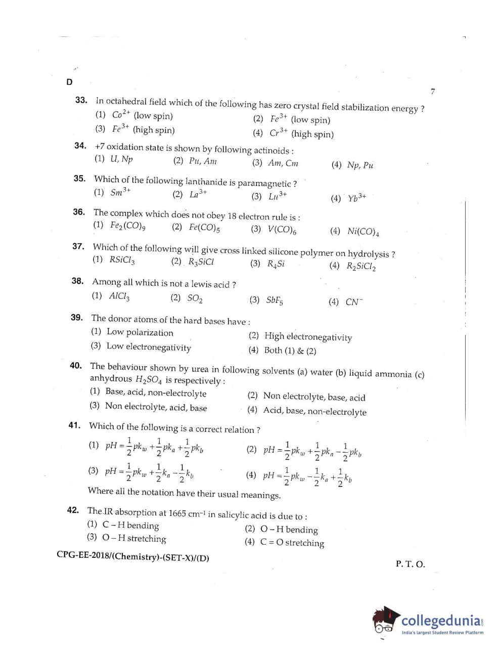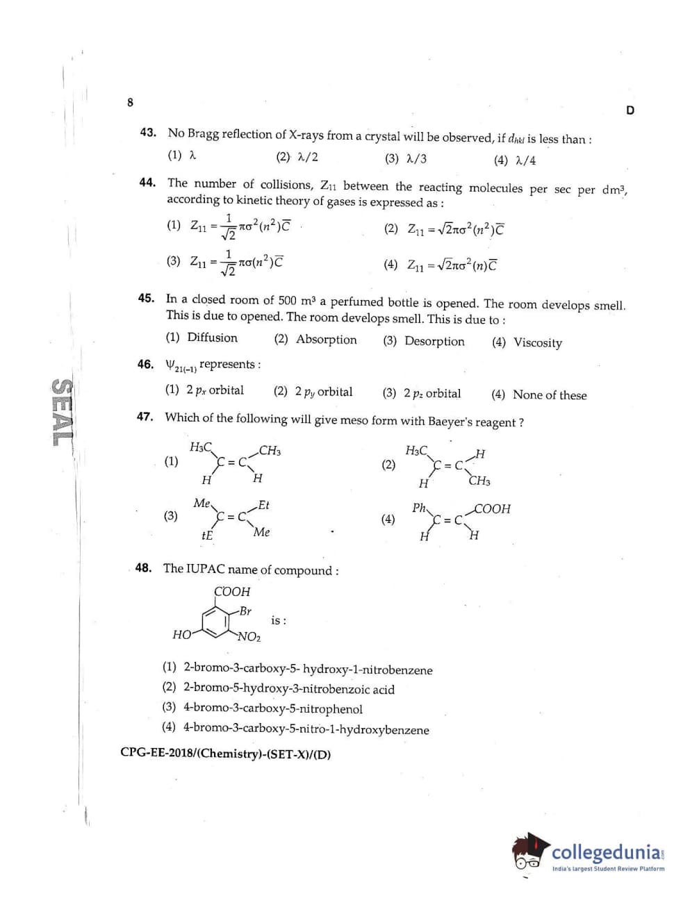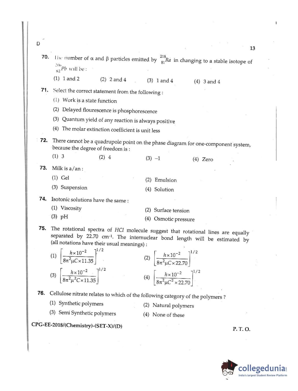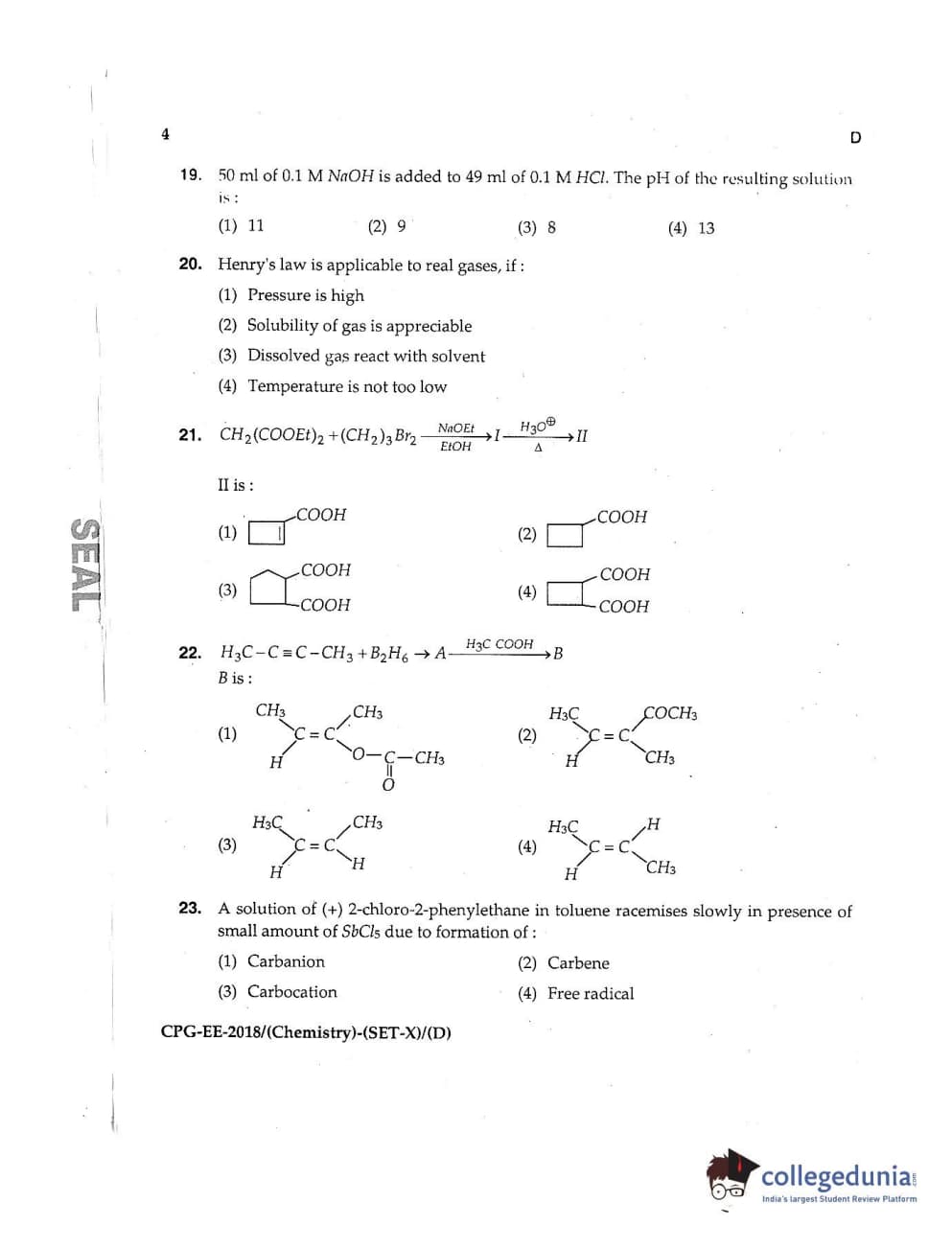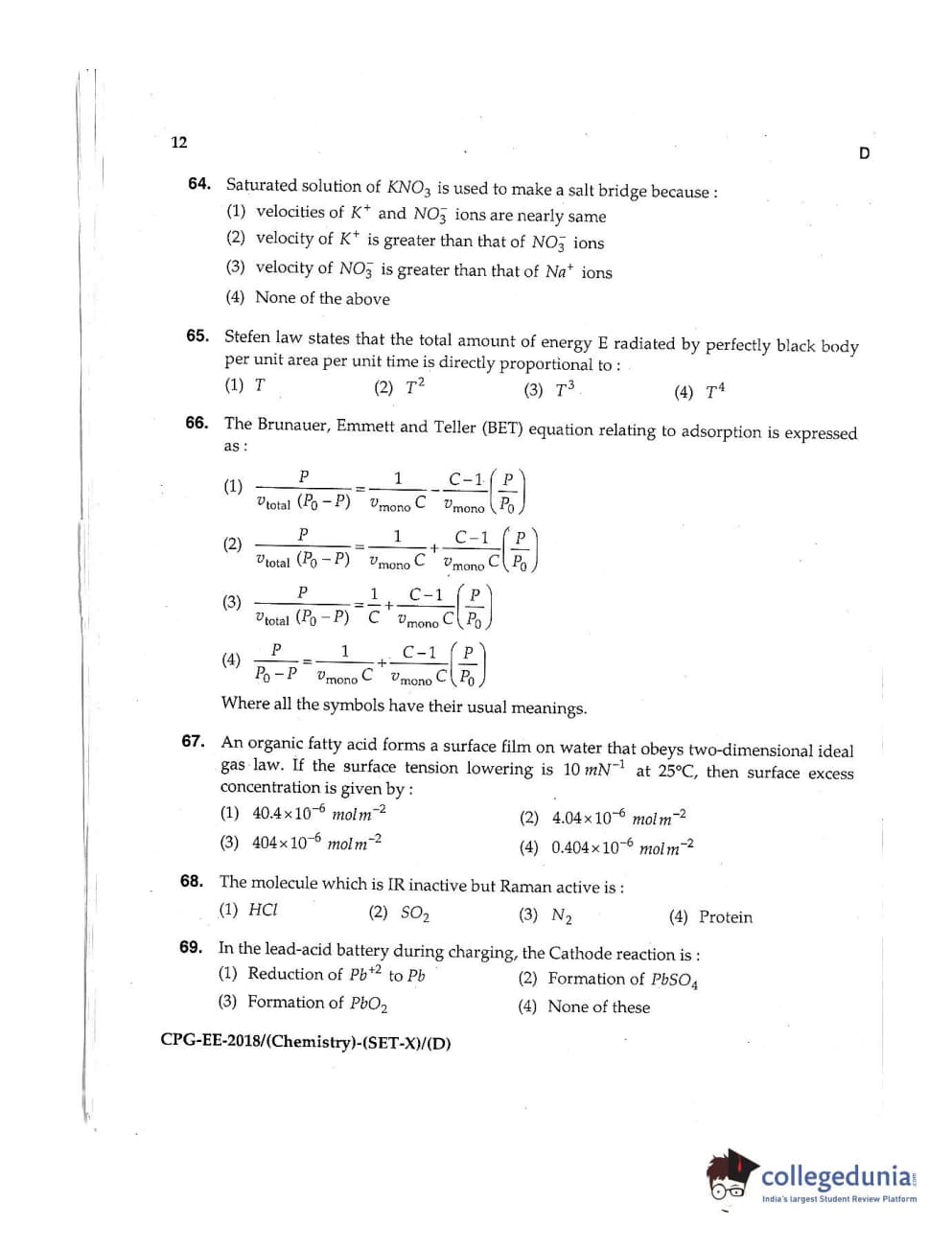 MDUCEE 2018 Chemistry Set D Question Paper with Answer Key PDFs