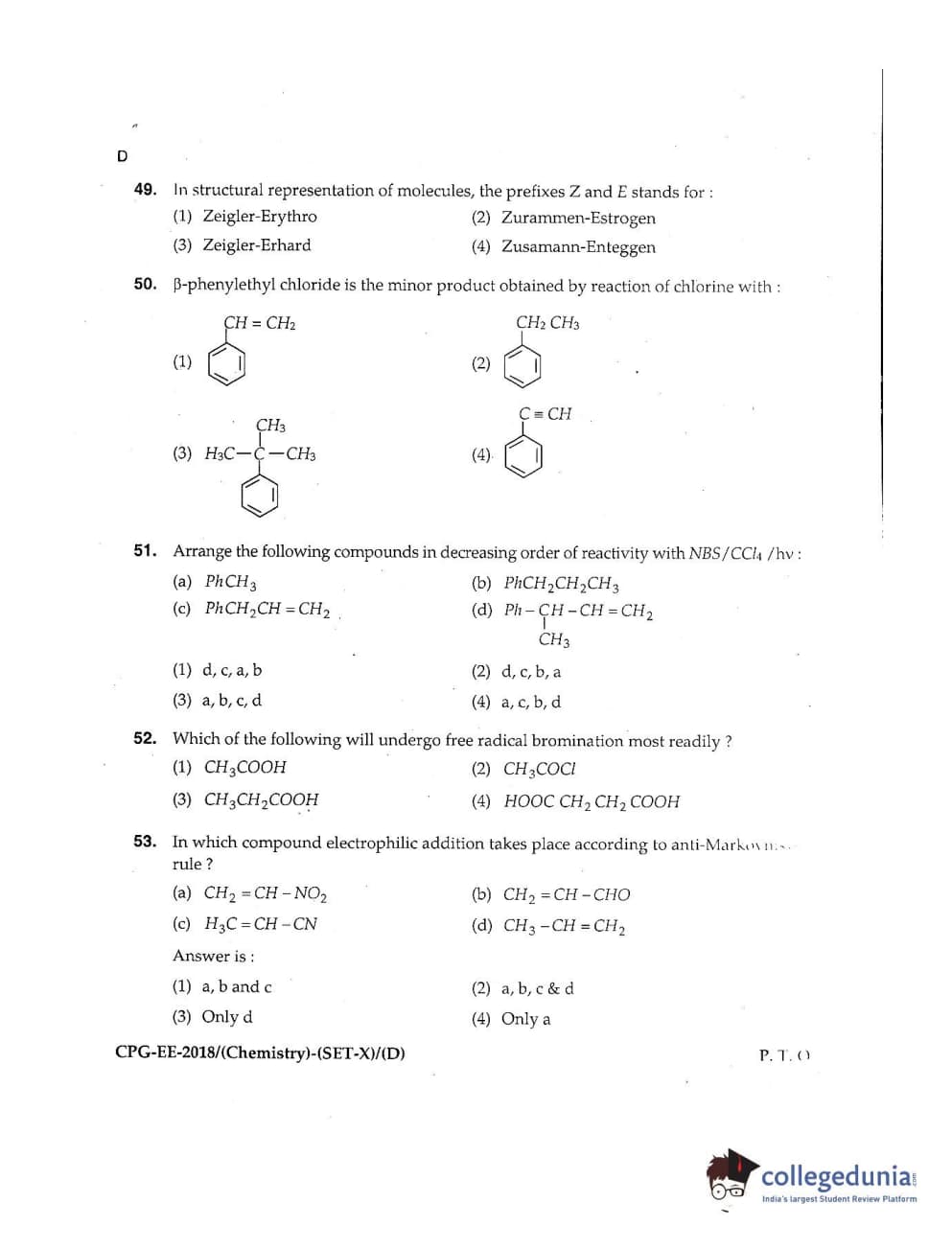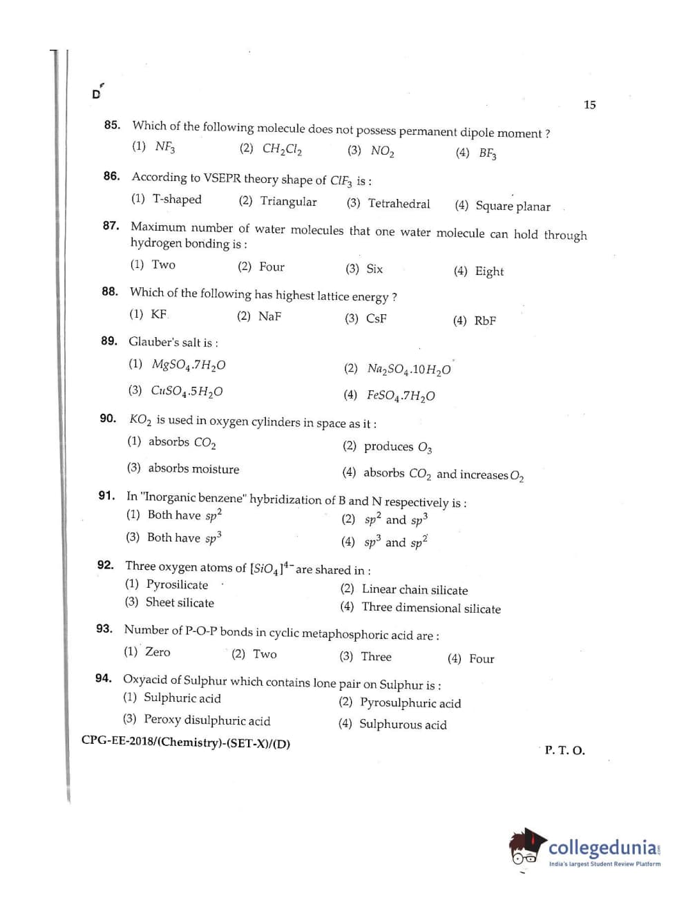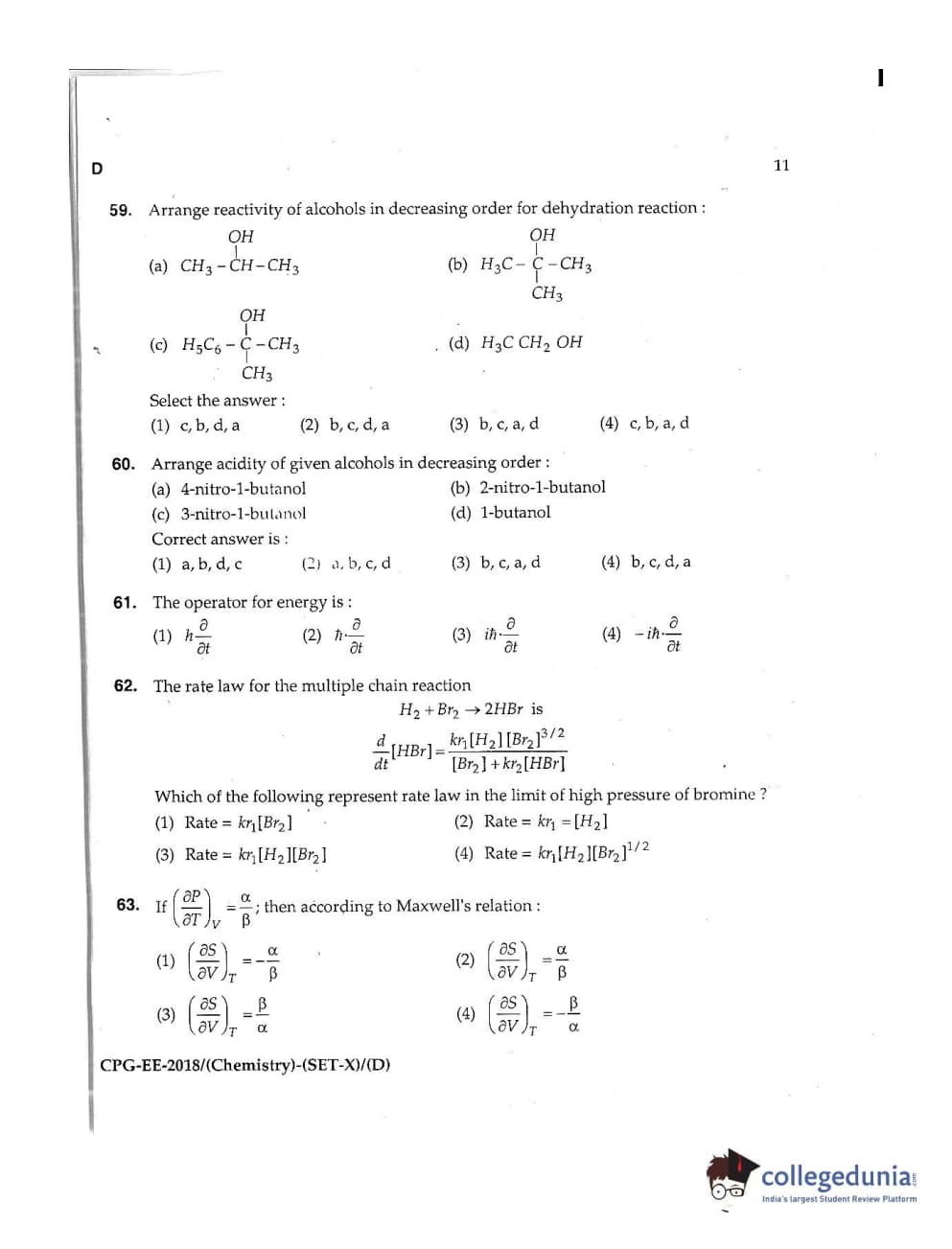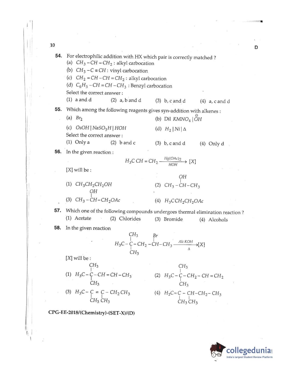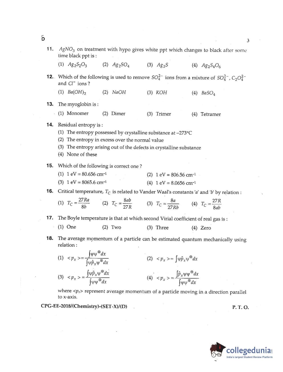 MDUCEE 2018 Chemistry Set D Question Paper with Answer Key PDFs