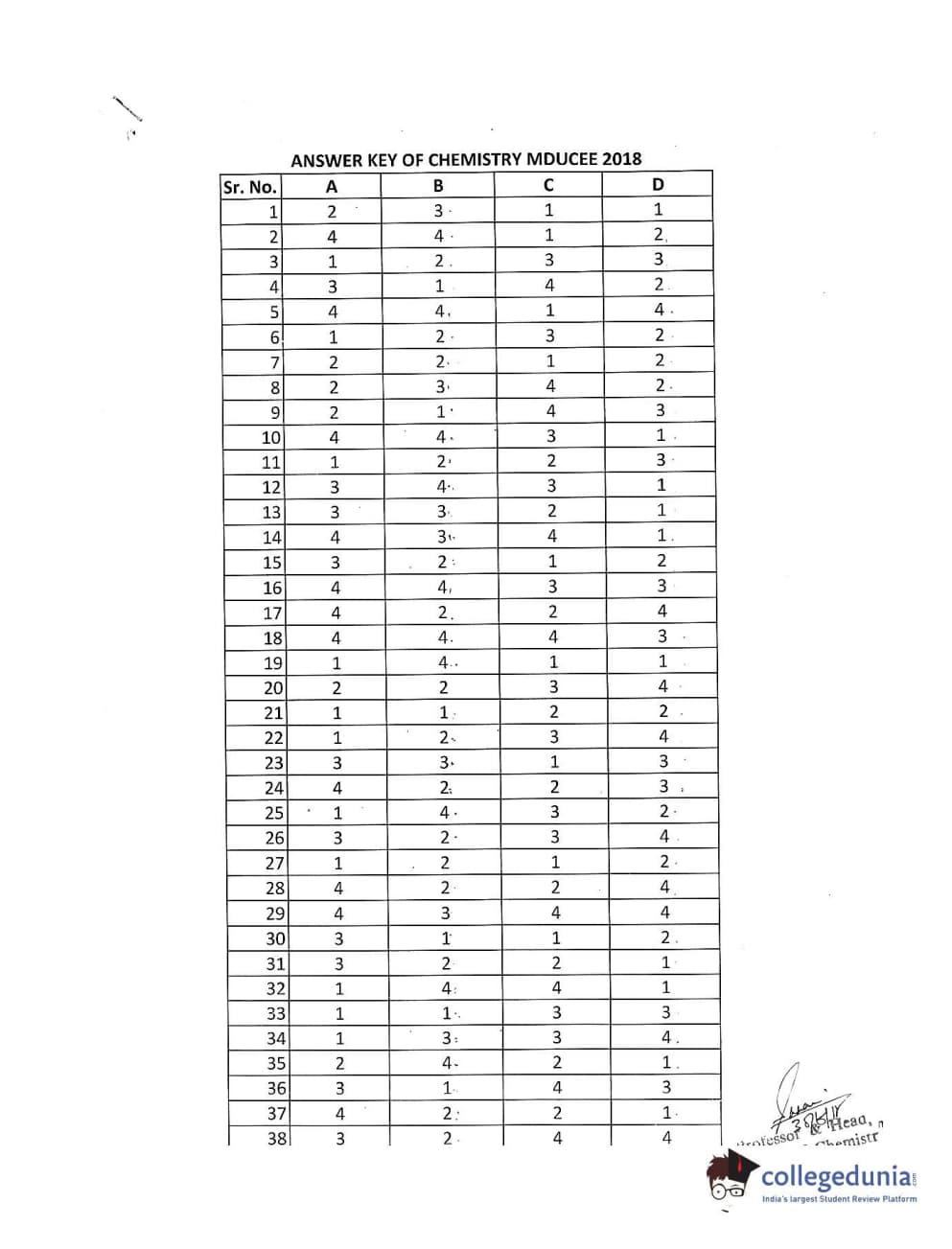 | MDUCEE 2018 Chemistry Set D Question Paper PDF | MDUCEE 2018 Chemistry Set D Answer Key PDF |