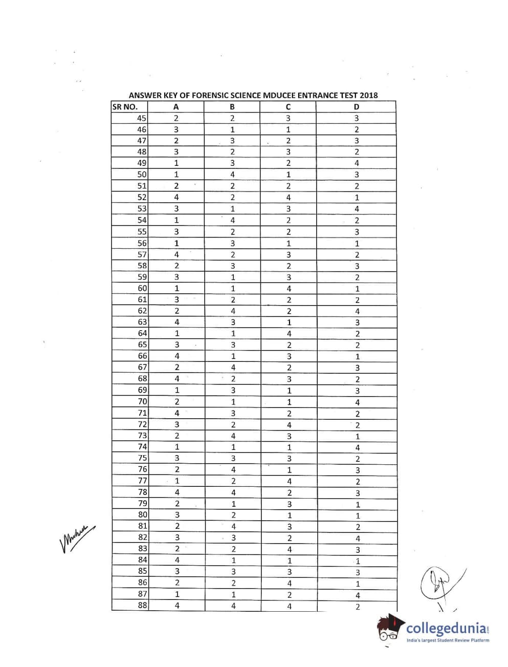 | MDUCEE 2018 Forensic Science Set A Question Paper PDF | MDUCEE 2018 Forensic Science Set A Answer Key PDF |