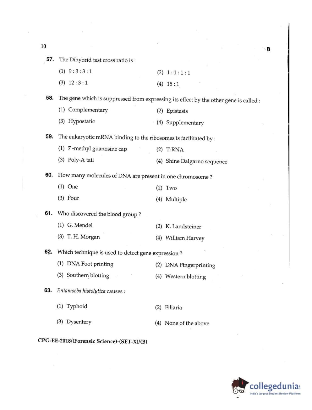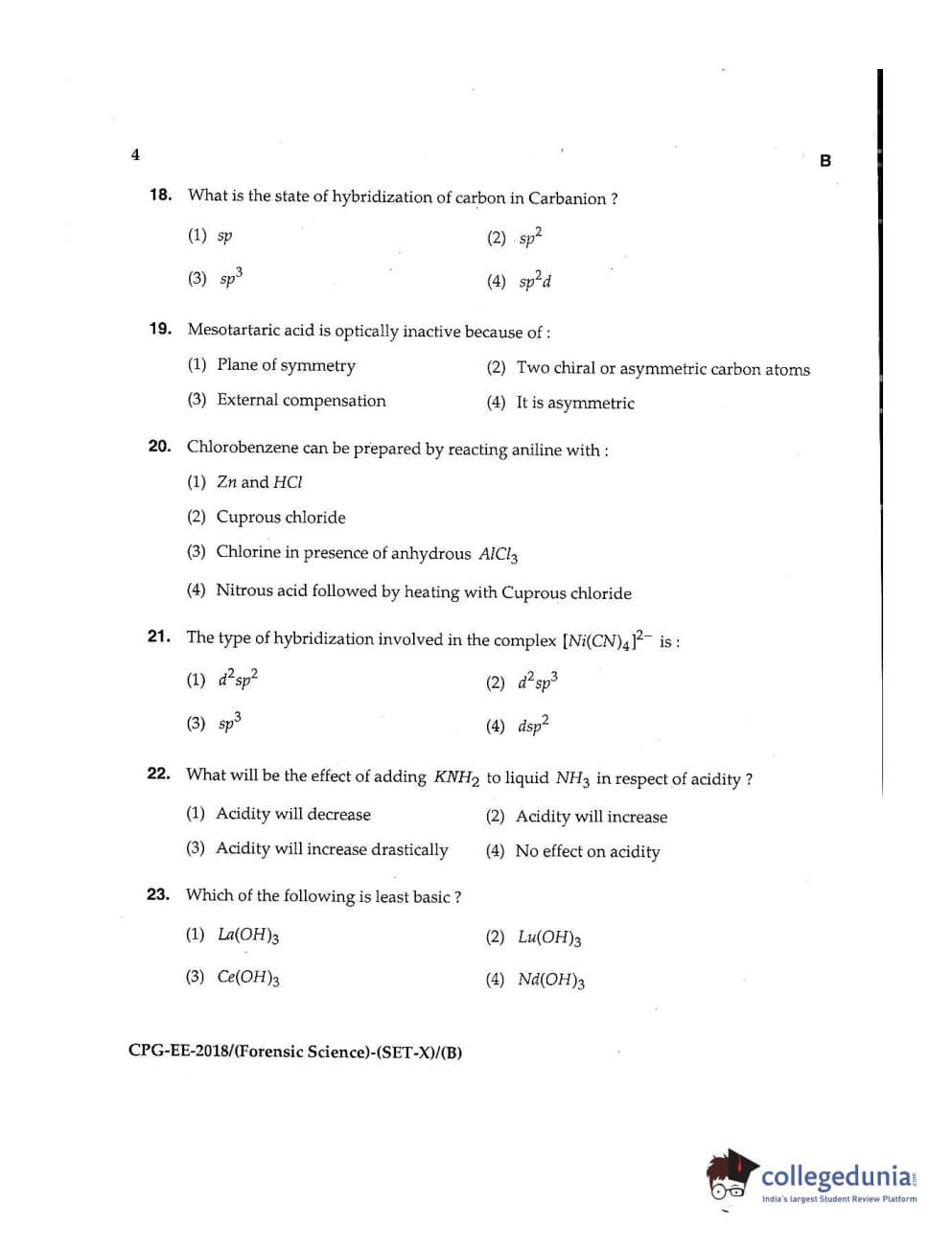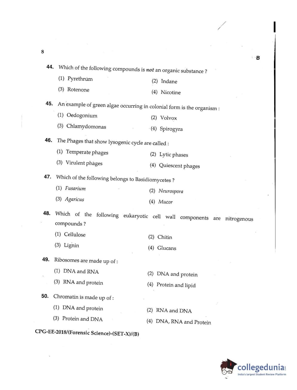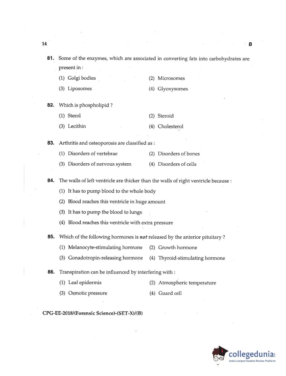 MDUCEE 2018 Forensic Science Set B Question Paper with Answer Key PDFs