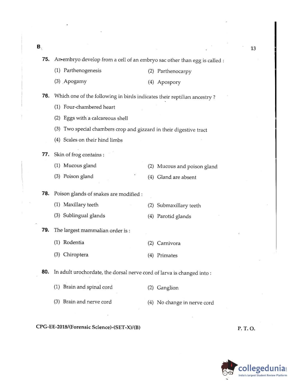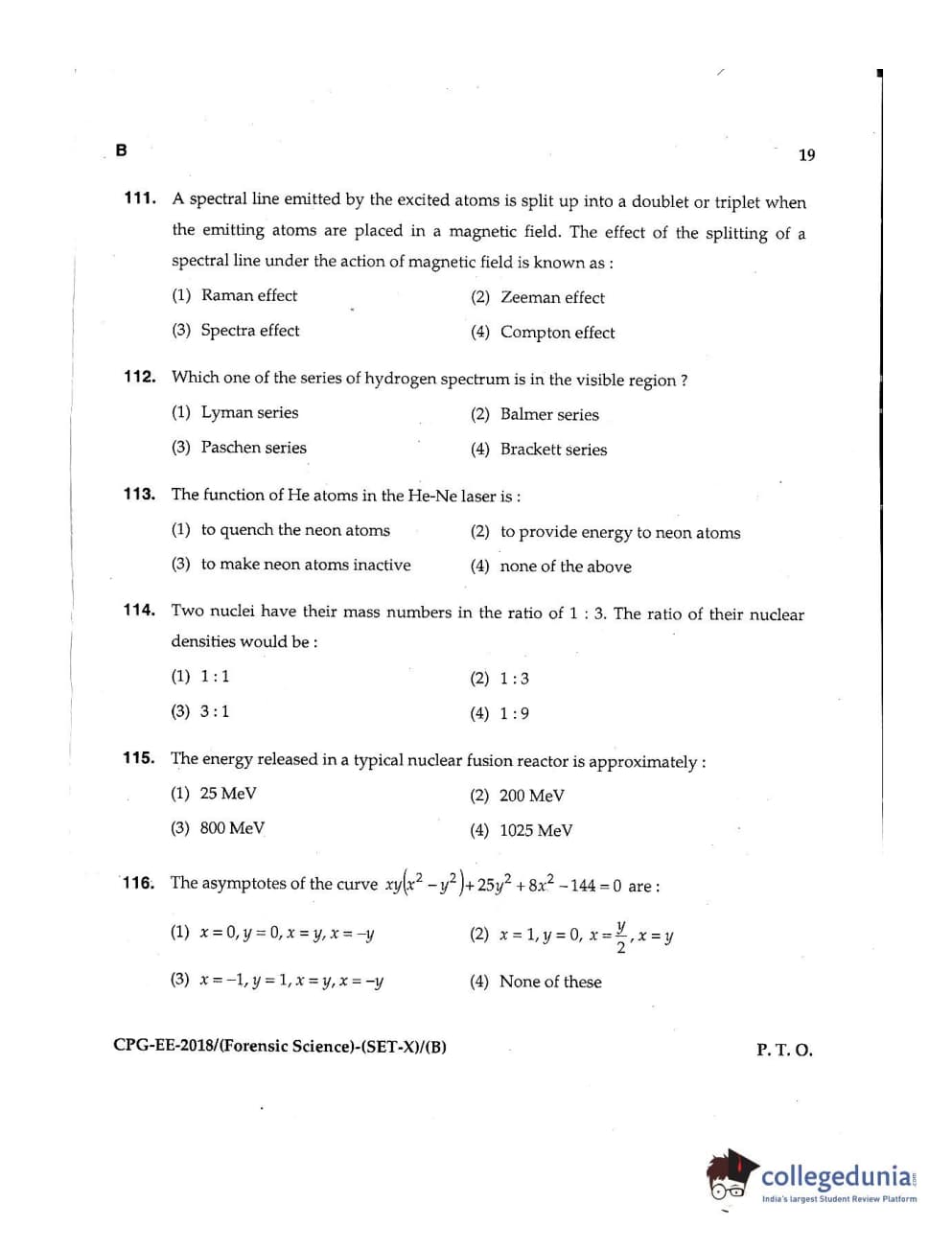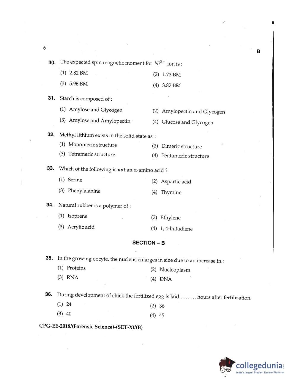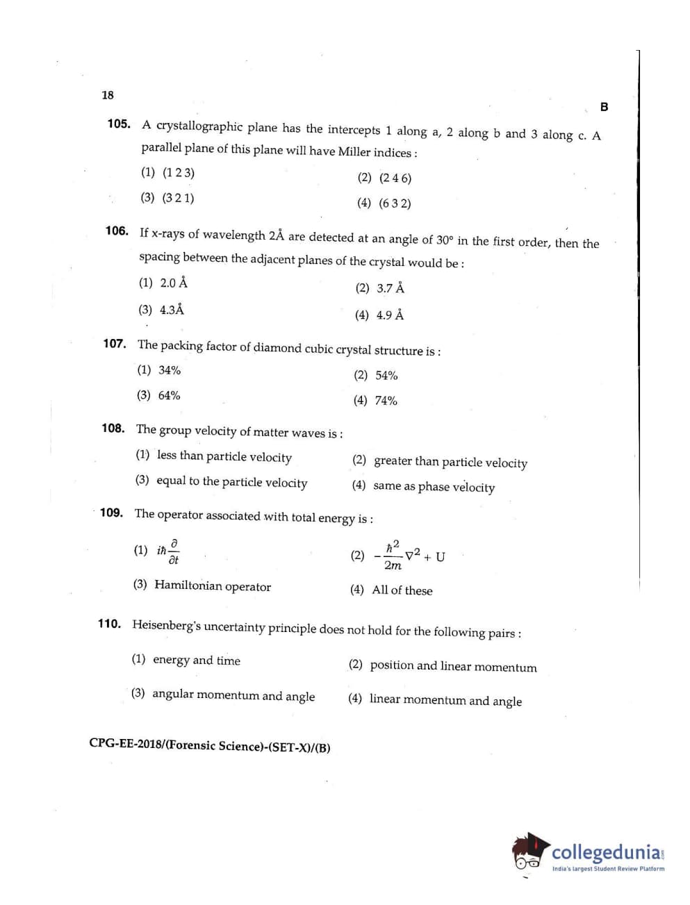 MDUCEE 2018 Forensic Science Set B Question Paper with Answer Key PDFs