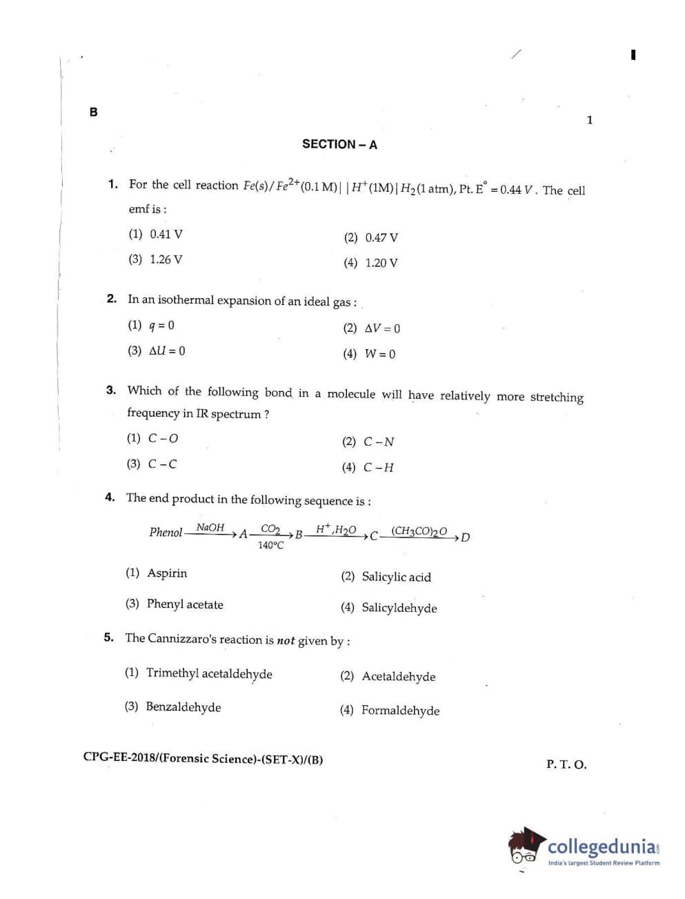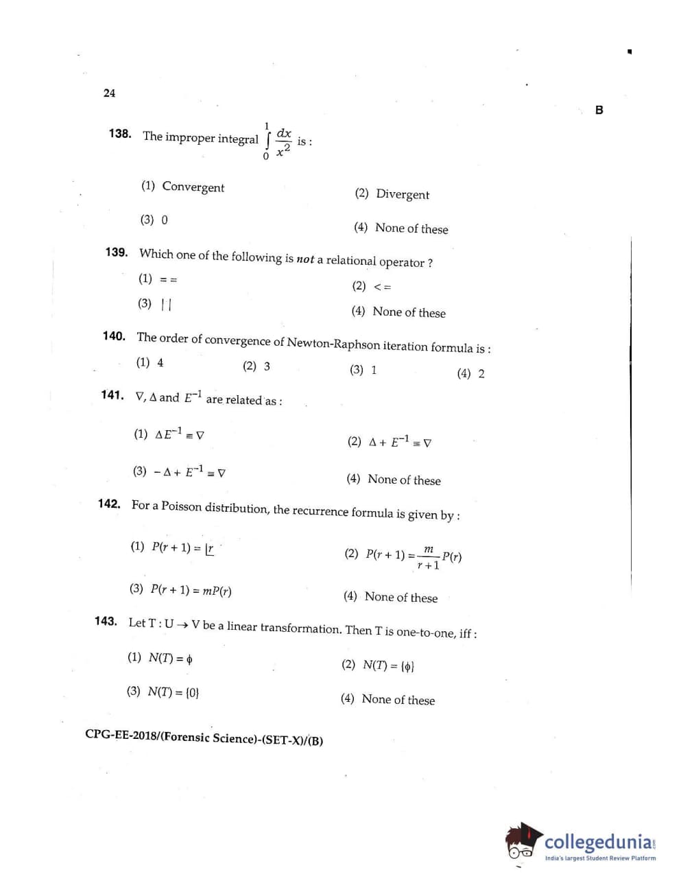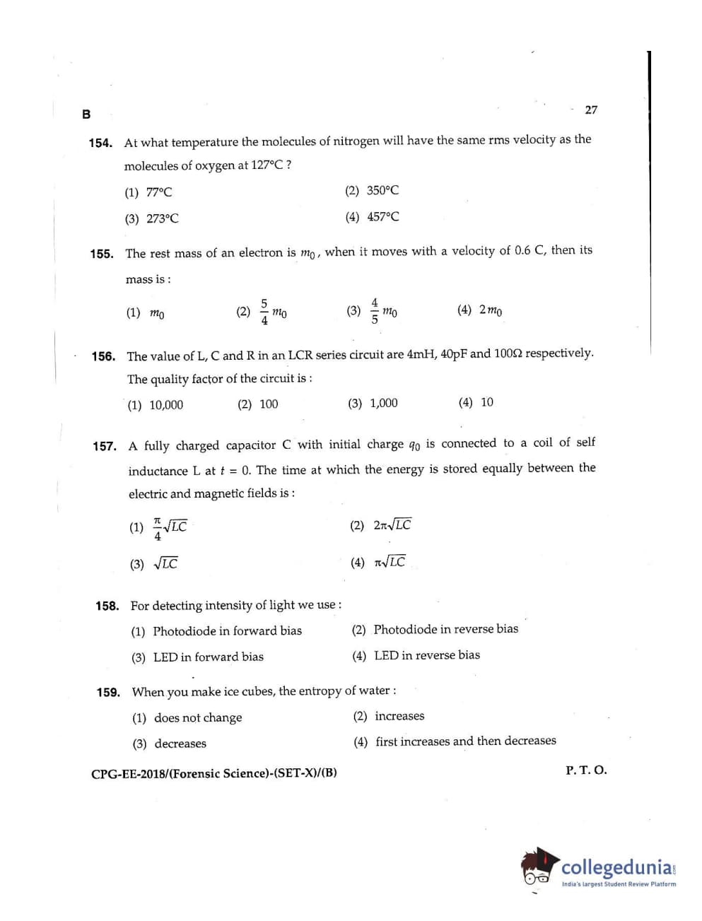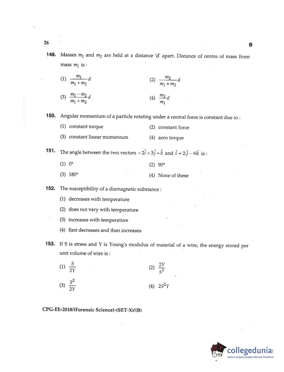 MDUCEE 2018 Forensic Science Set B Question Paper with Answer Key PDFs