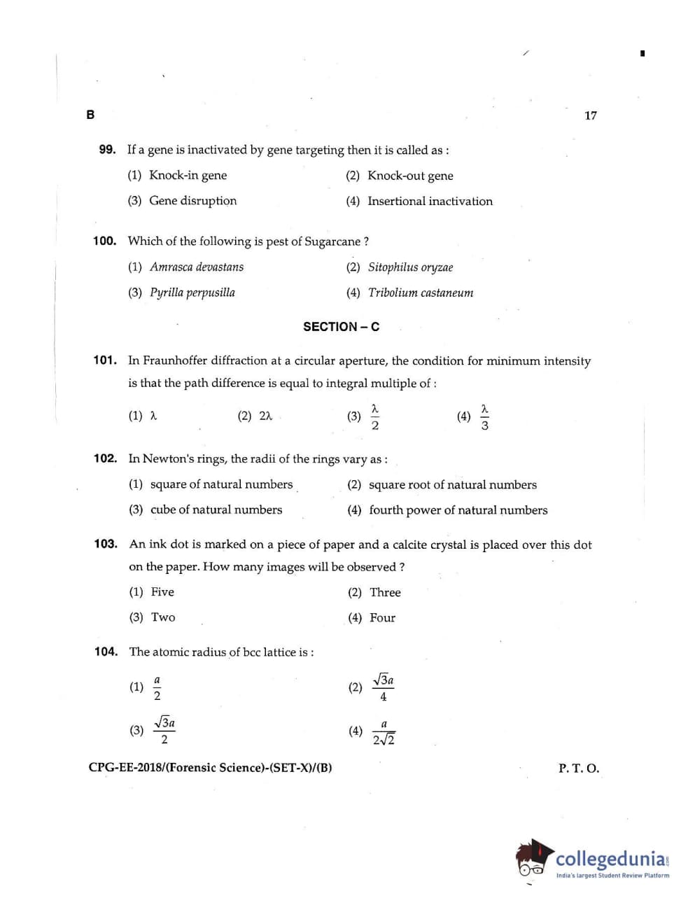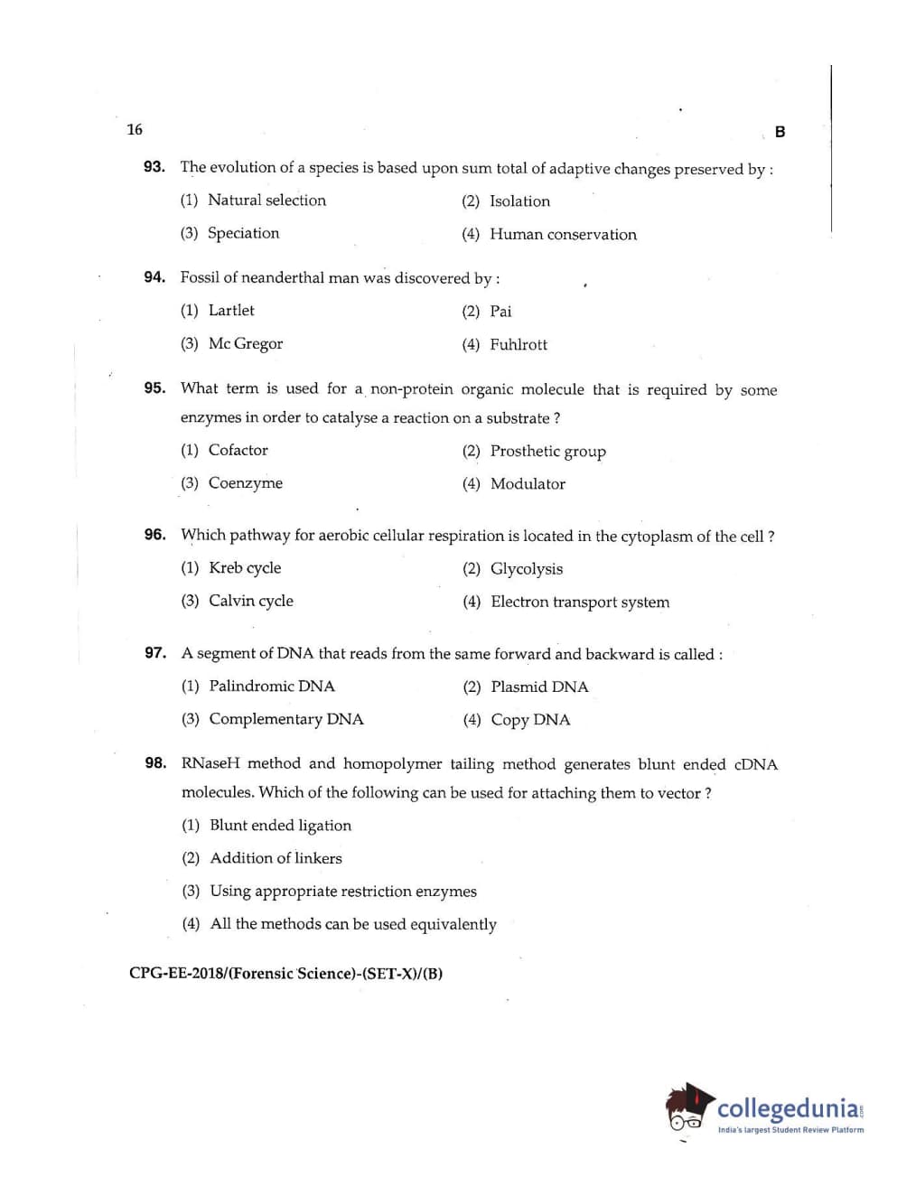 | MDUCEE 2018 Forensic Science Set B Question Paper PDF | MDUCEE 2018 Forensic Science Set B Answer Key PDF |