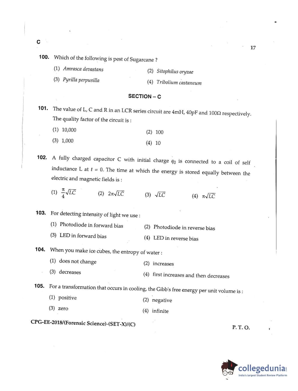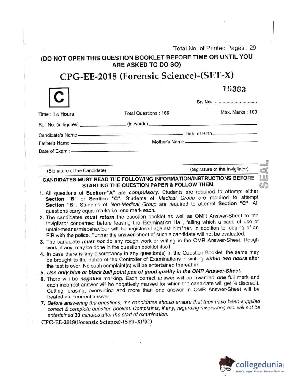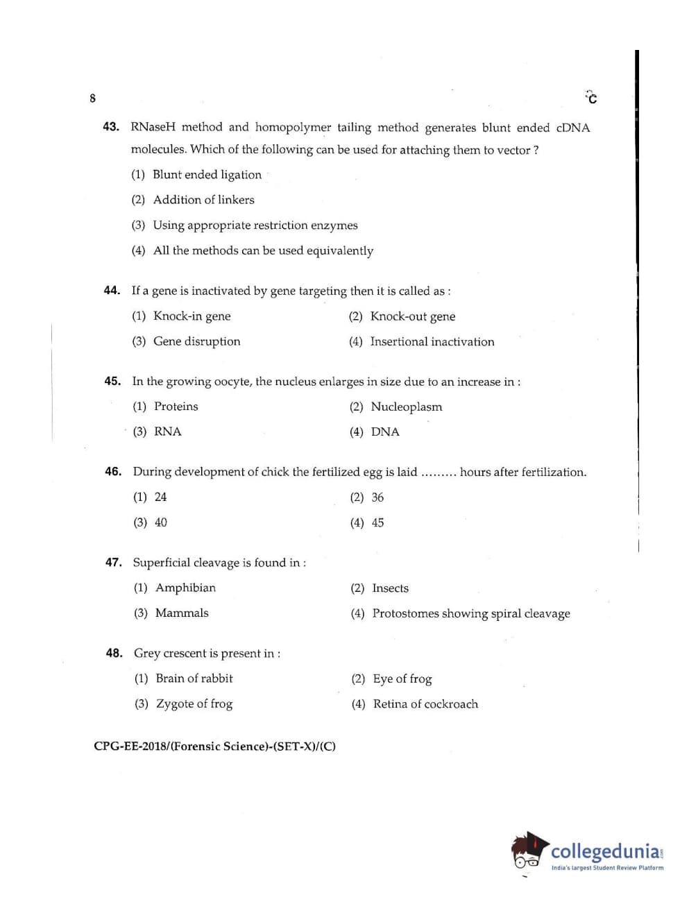 | MDUCEE 2018 Forensic Science Set C Question Paper PDF | MDUCEE 2018 Forensic Science Set C Answer Key PDF |
