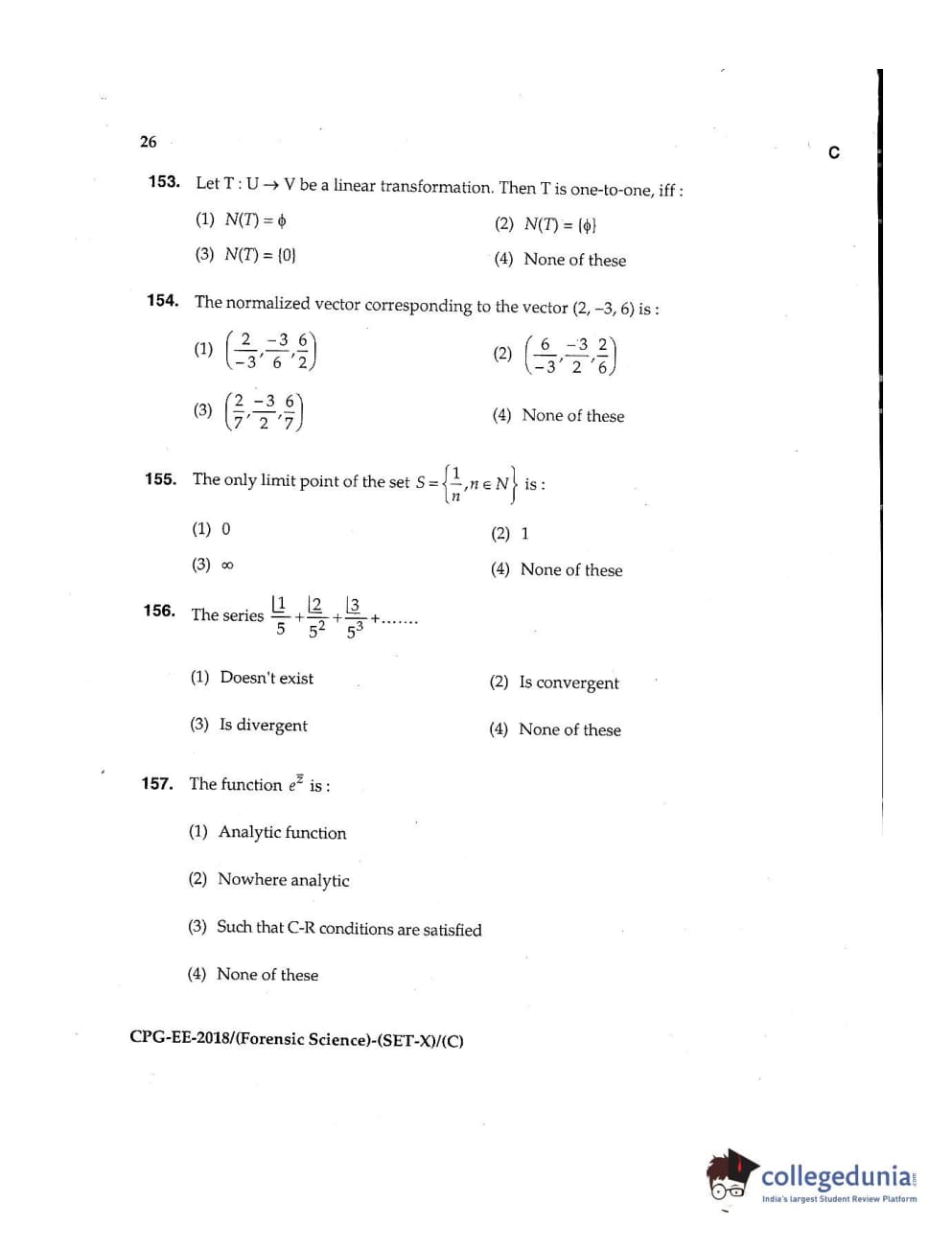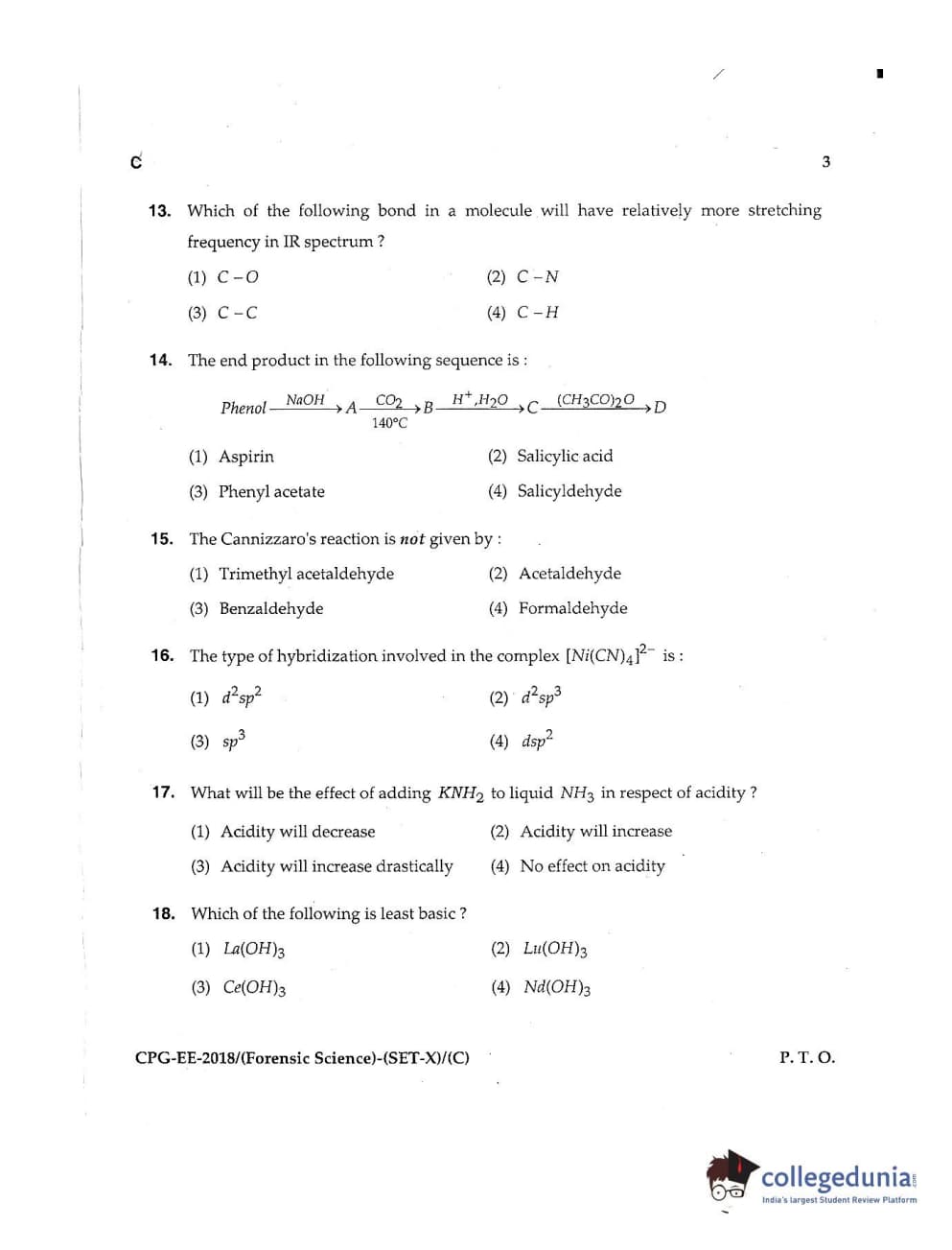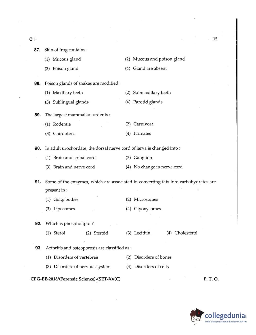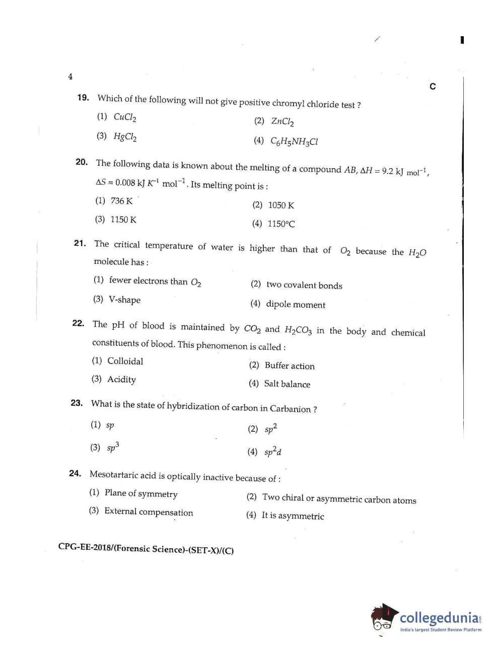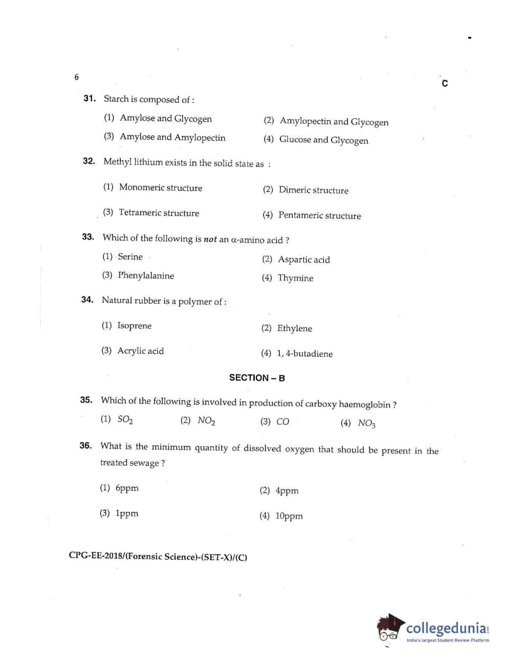 MDUCEE 2018 Forensic Science Set C Question Paper with Answer Key PDFs