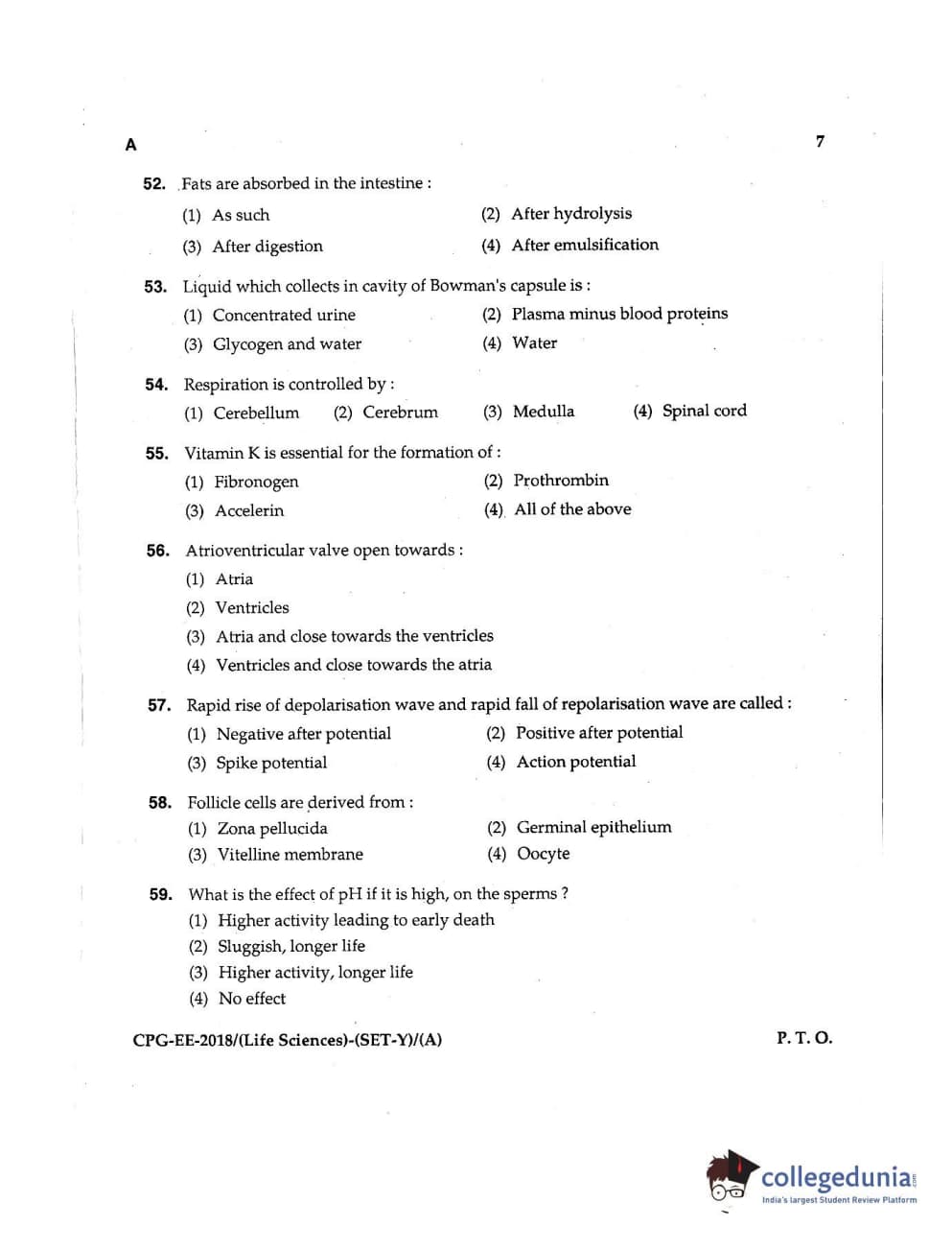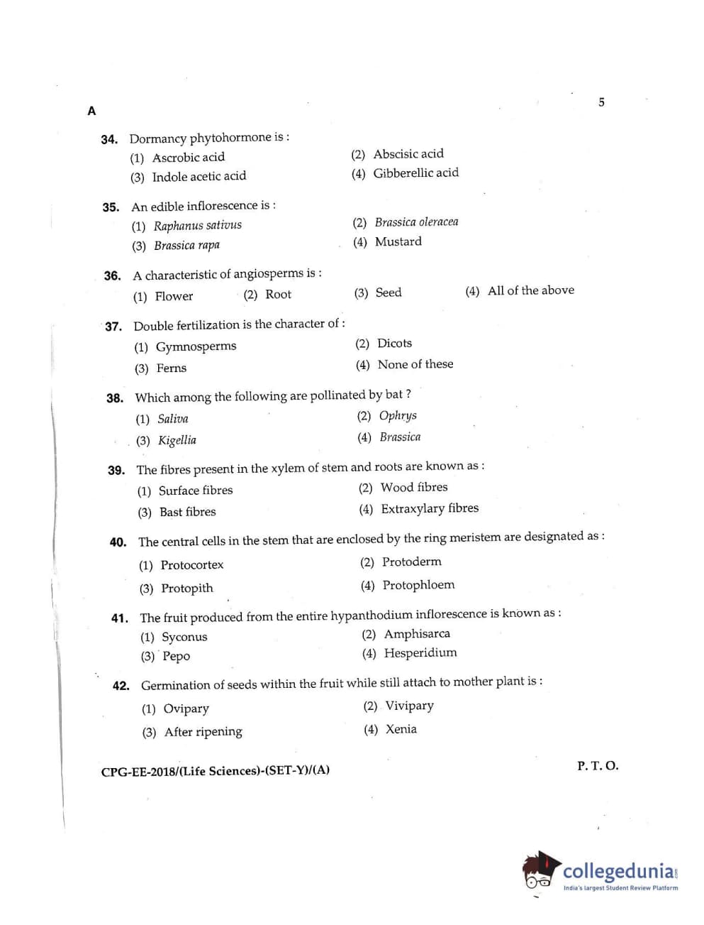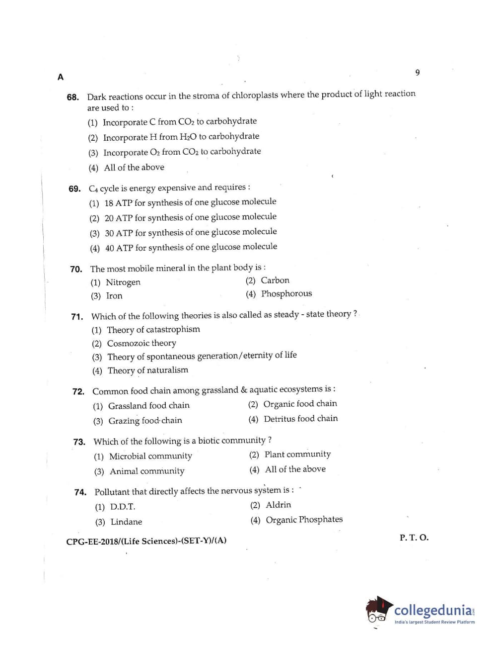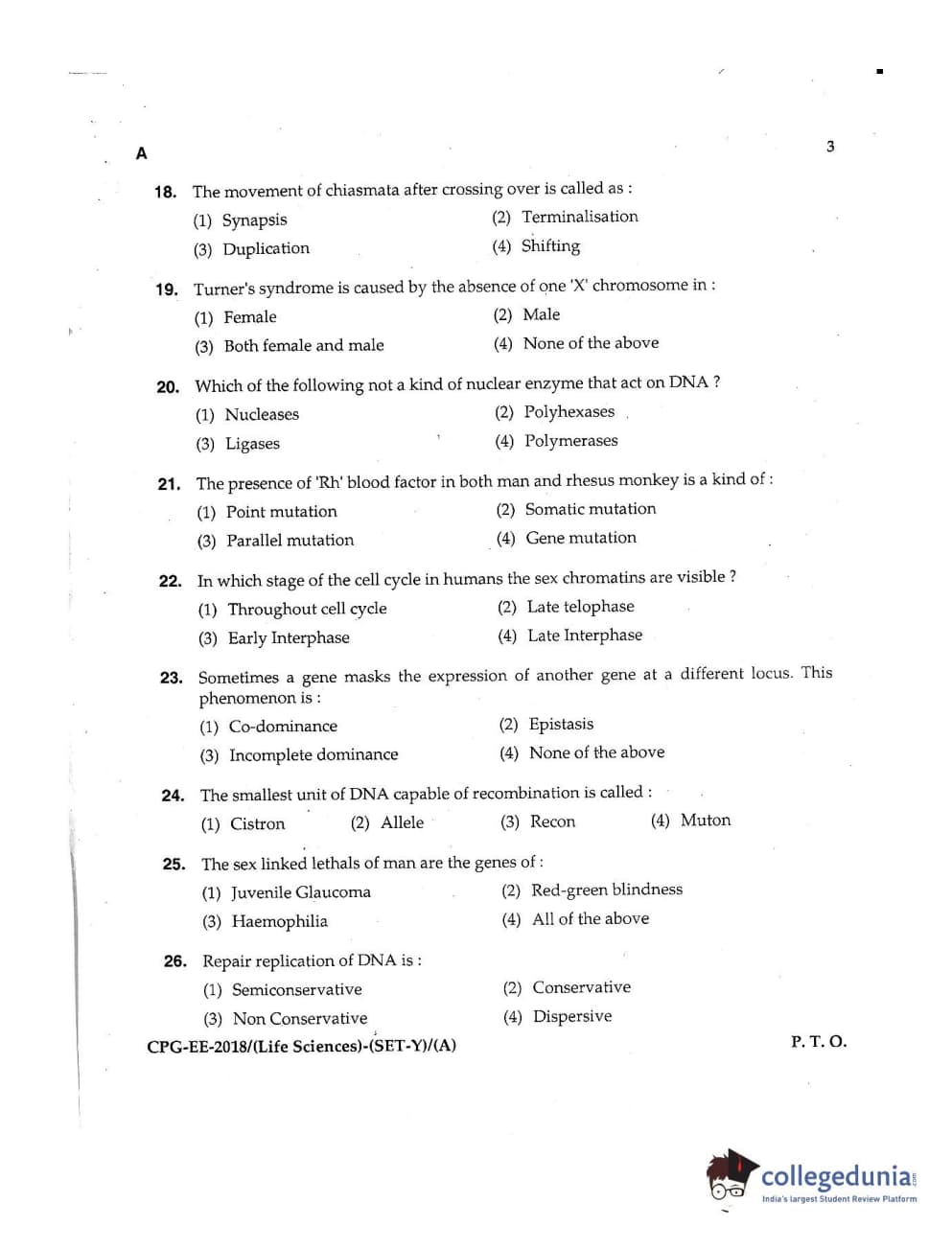 MDUCEE 2018 Life Sciences Set A Question Paper with Answer Key PDFs