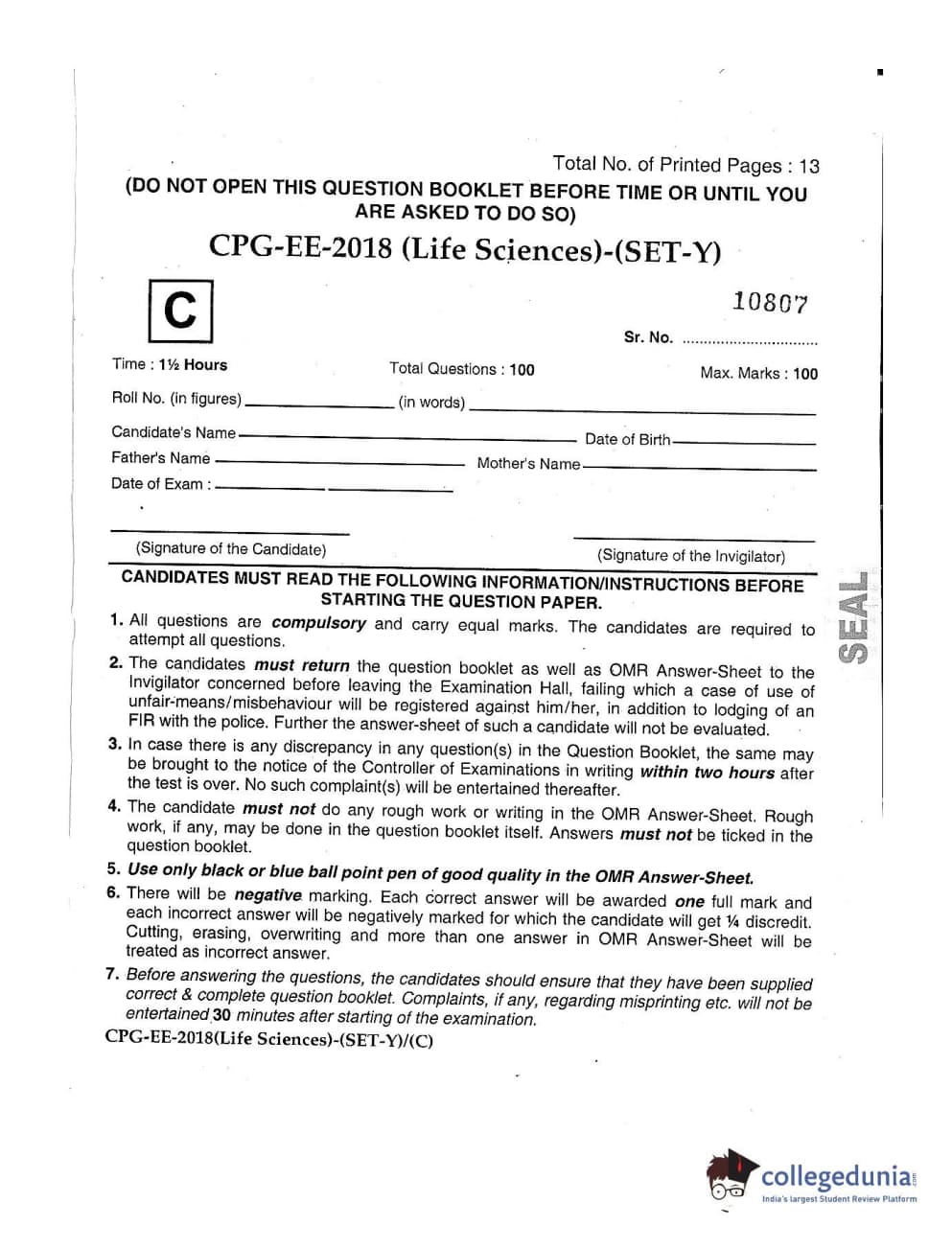 MDUCEE 2018 Life Sciences Set C Question paper with answer key pdf is available for download. The exam was successfully organized by Maharishi Dayanand University. The question paper comprised a total of 100 questions.