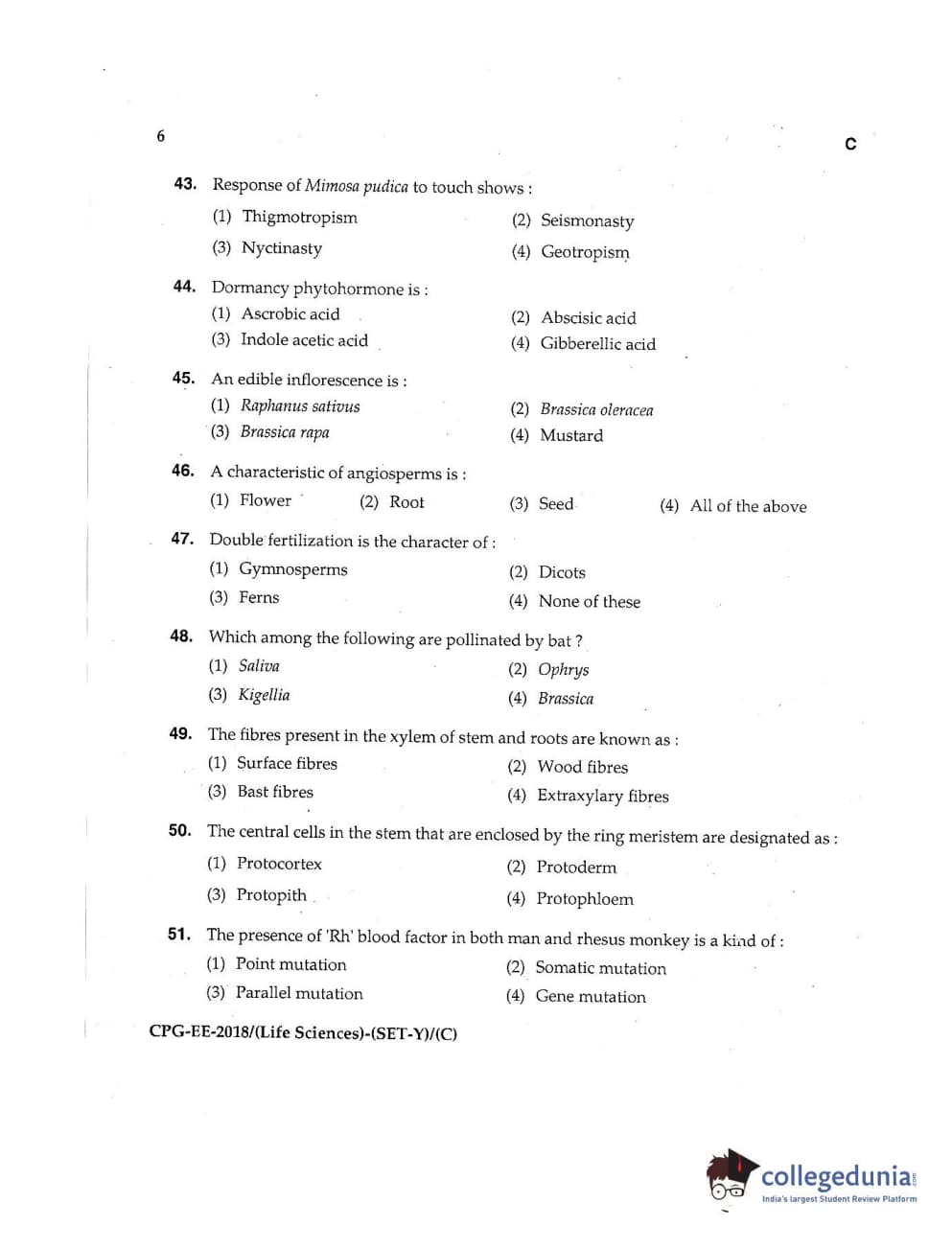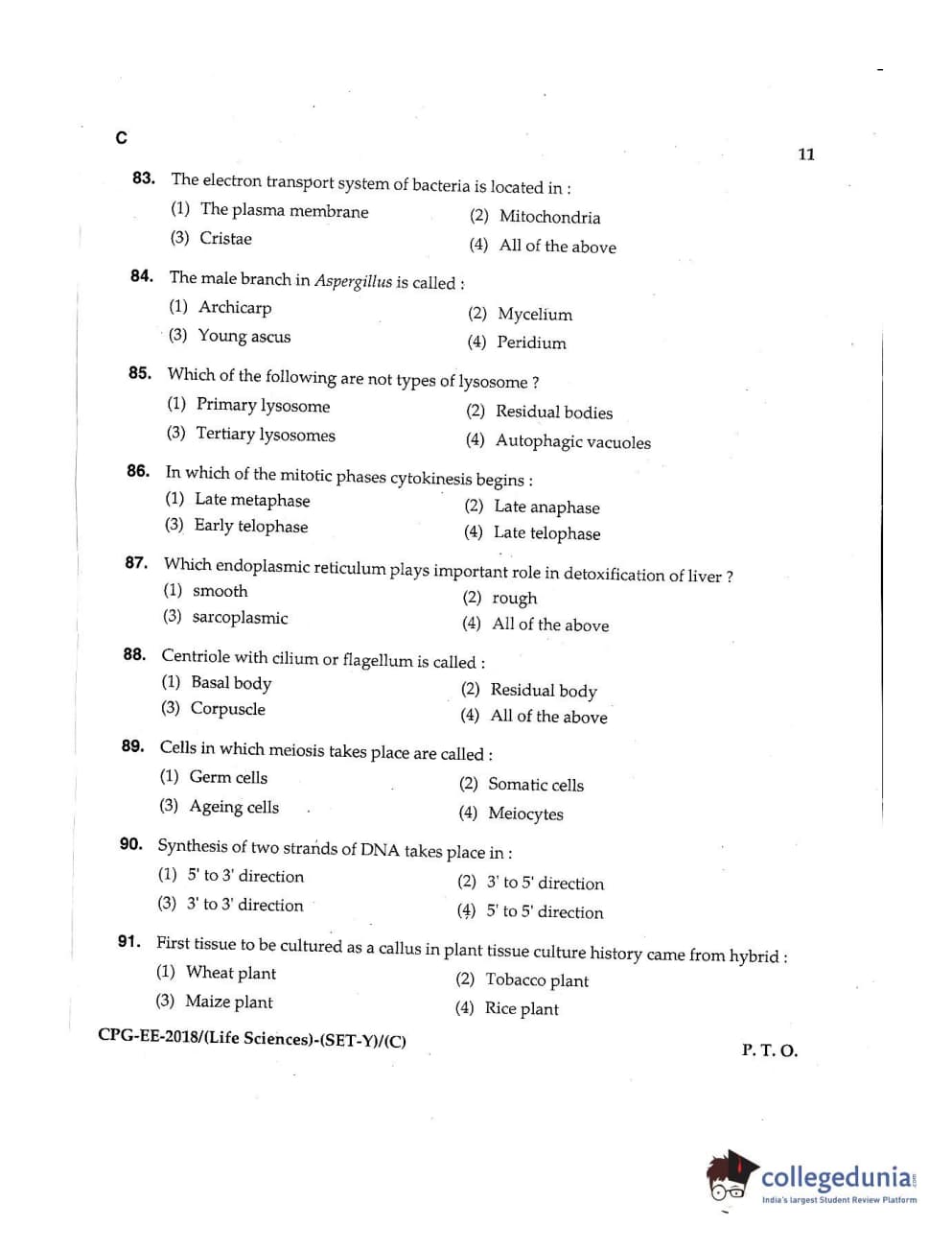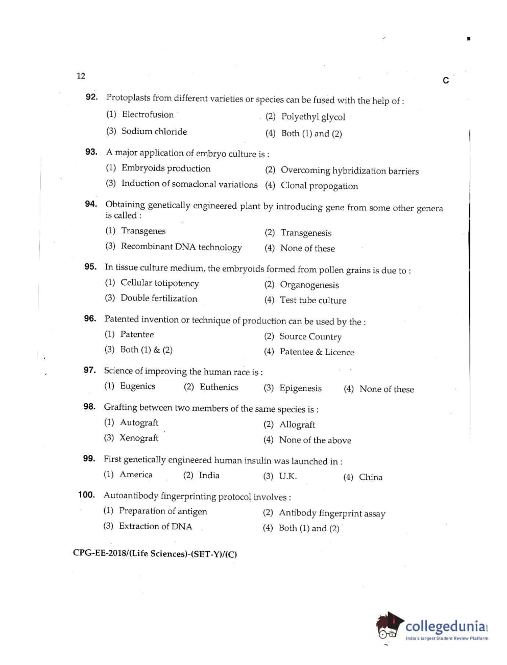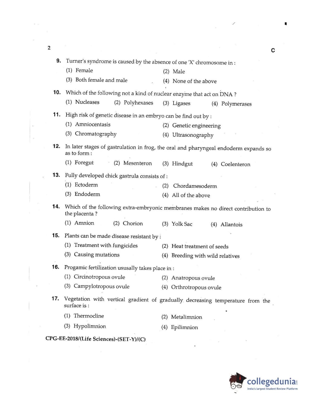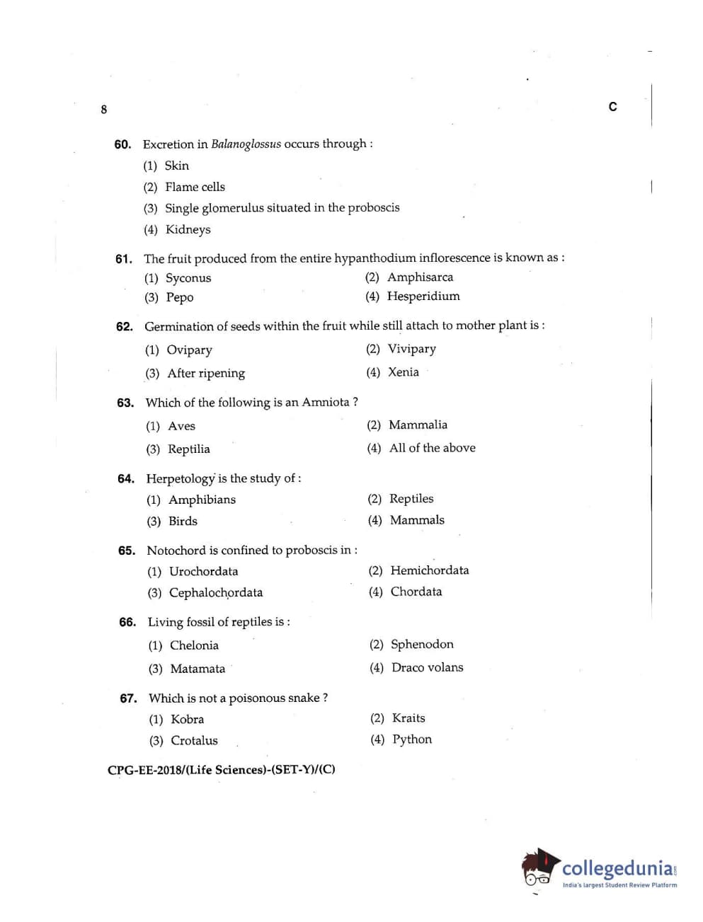 MDUCEE 2018 Life Sciences Set C Question Paper with Answer Key PDFs