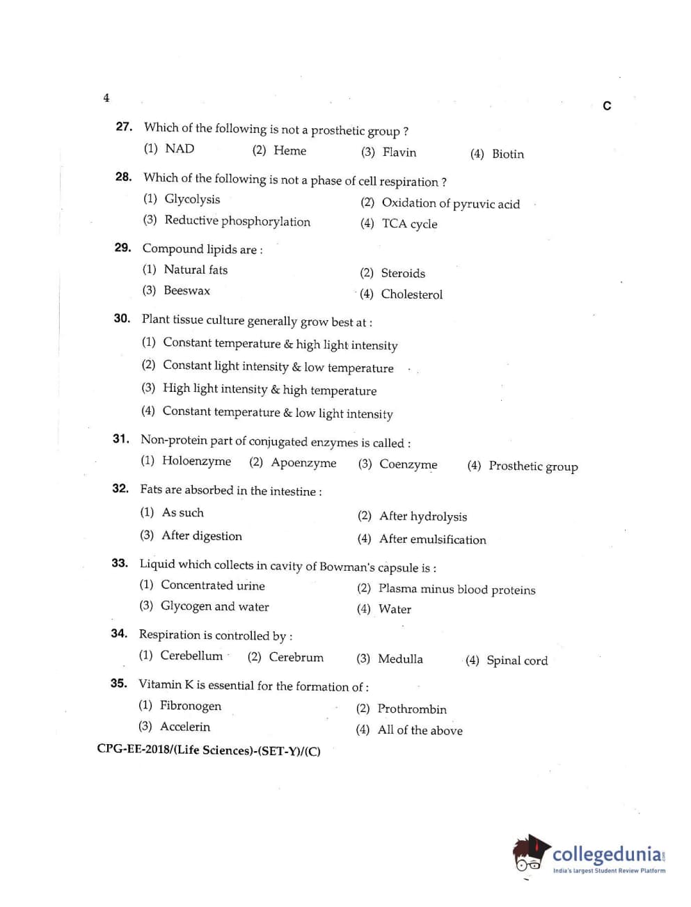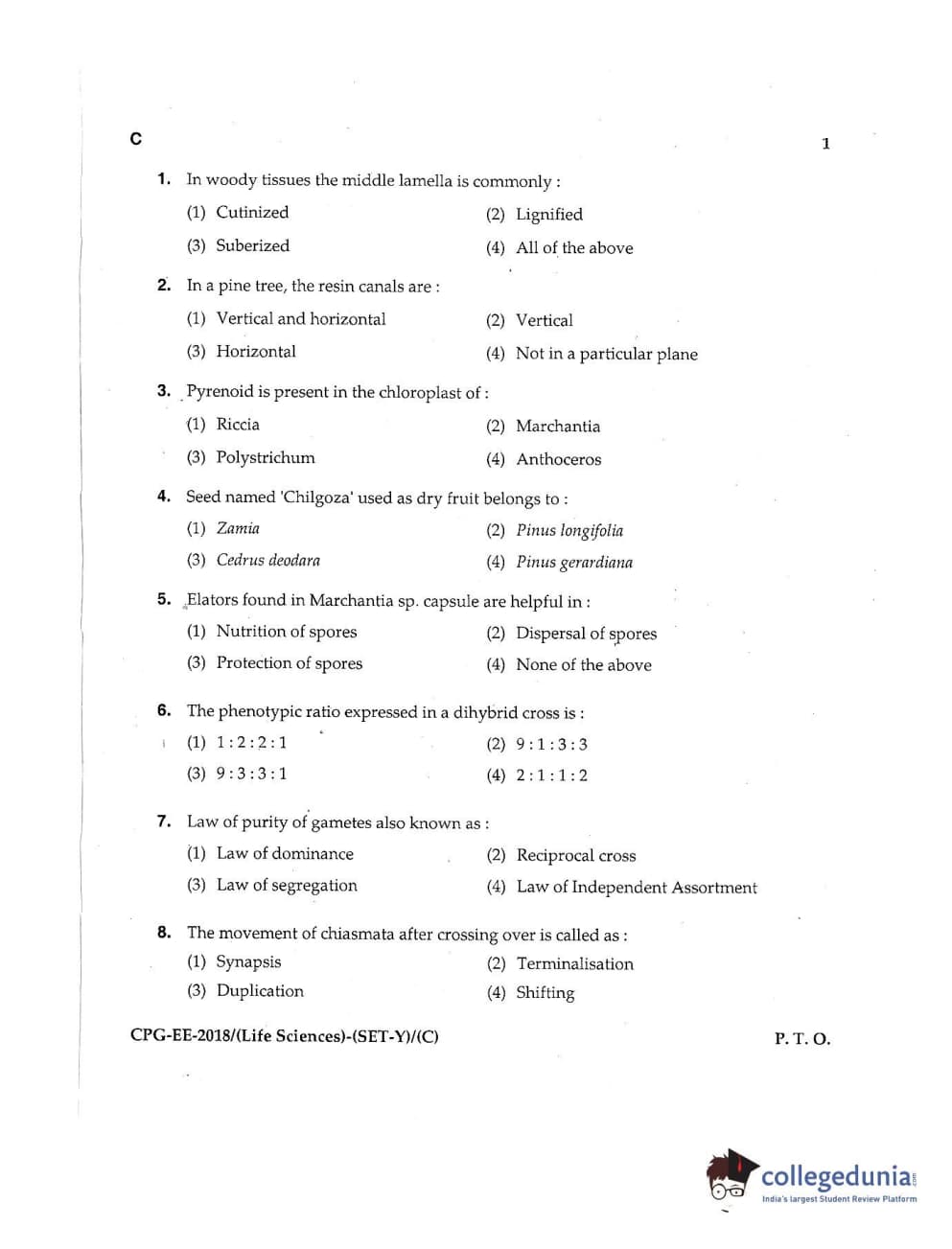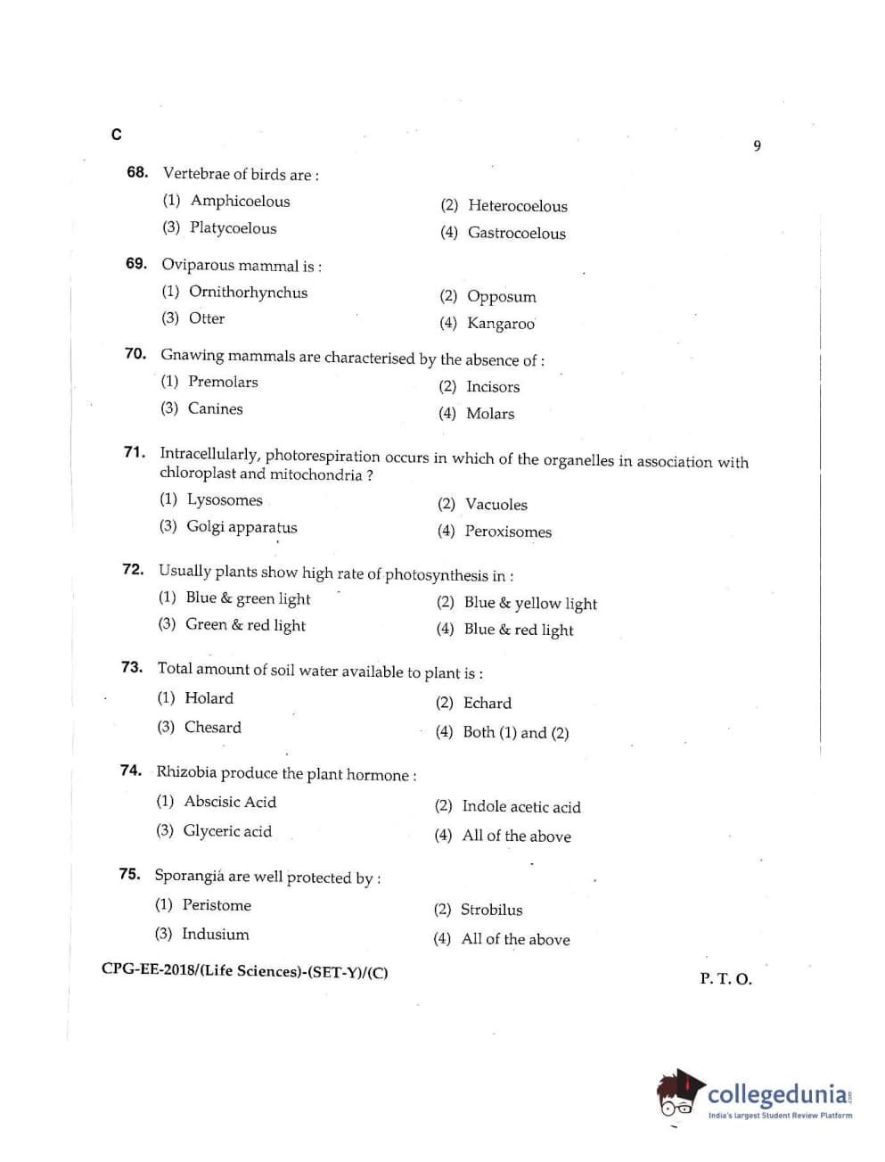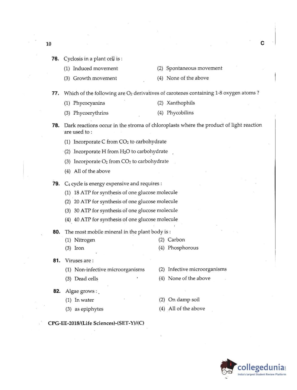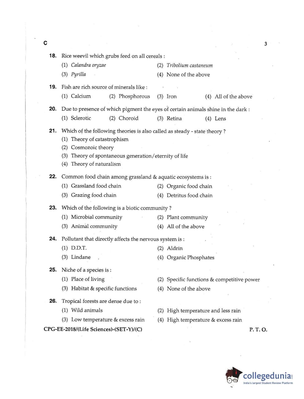 MDUCEE 2018 Life Sciences Set C Question Paper with Answer Key PDFs