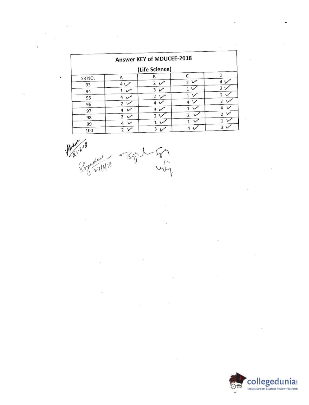 | MDUCEE 2018 Life Sciences Set C Question Paper PDF | MDUCEE 2018 Life Sciences Set C Answer Key PDF |