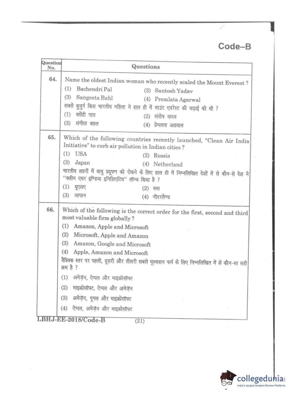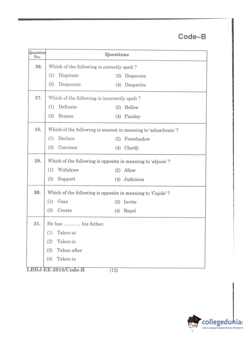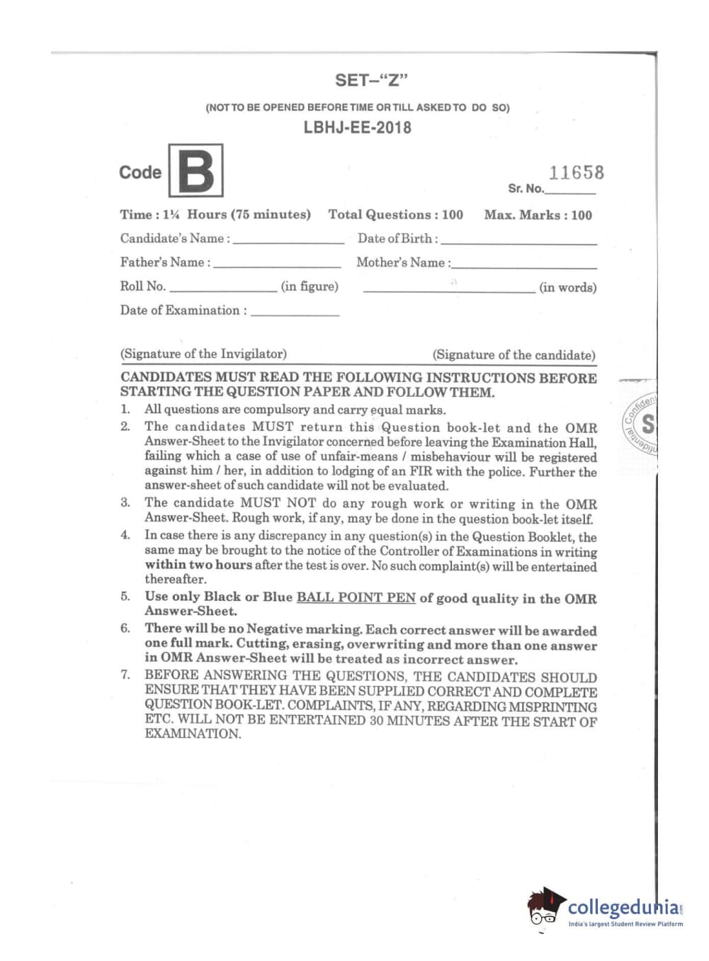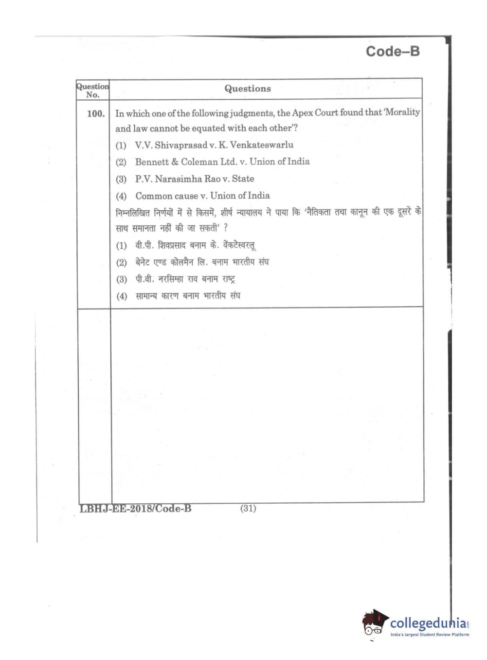MDUCEE 2018 LL.B 3 Years Set B Question paper with answer key pdf is available for download. The exam was successfully organized by Maharishi Dayanand University. The question paper comprised a total of 100 questions.