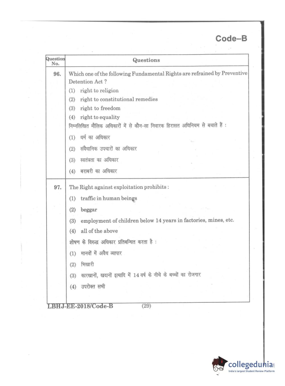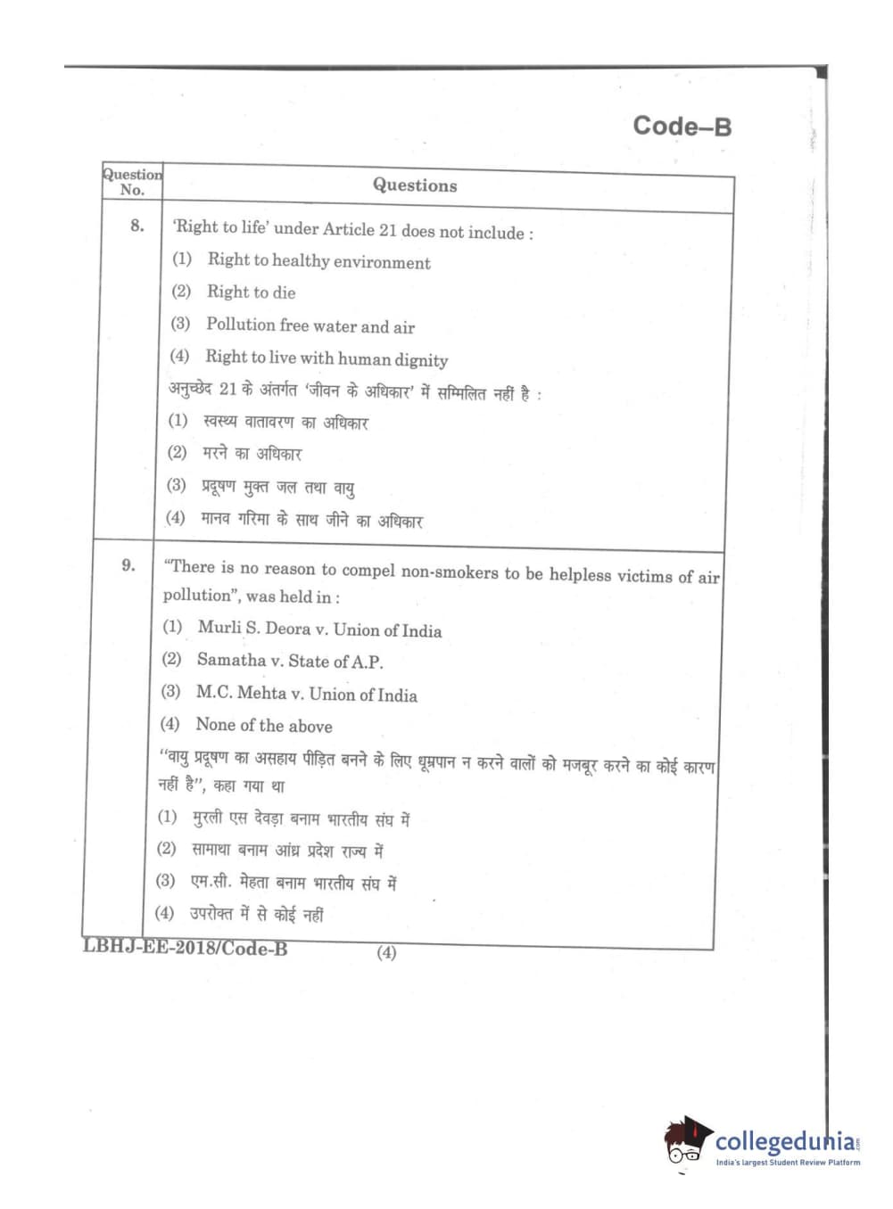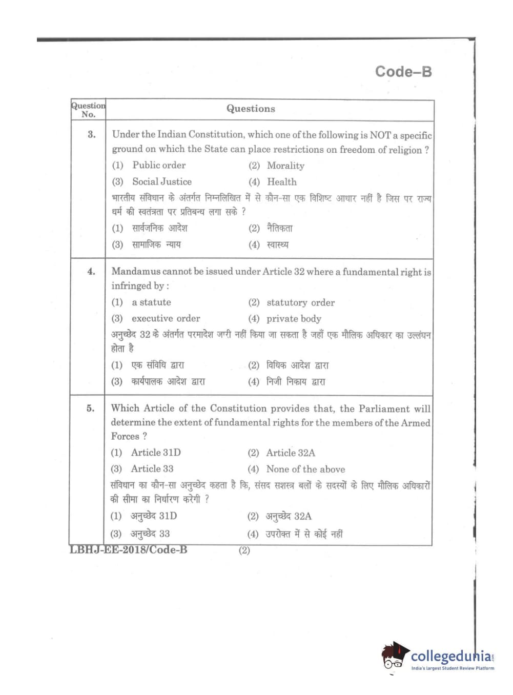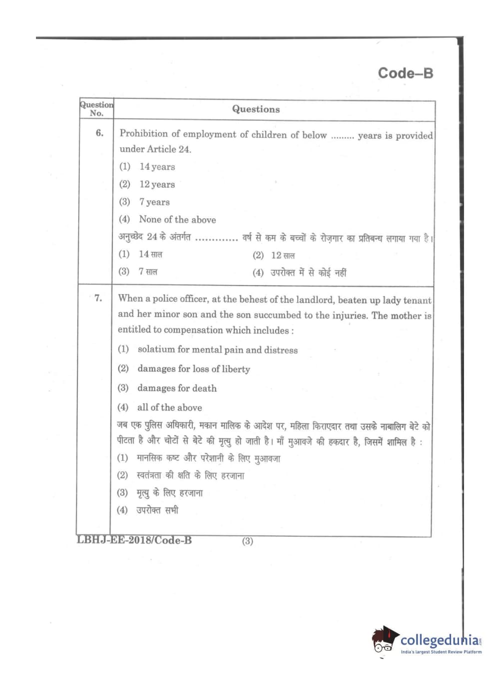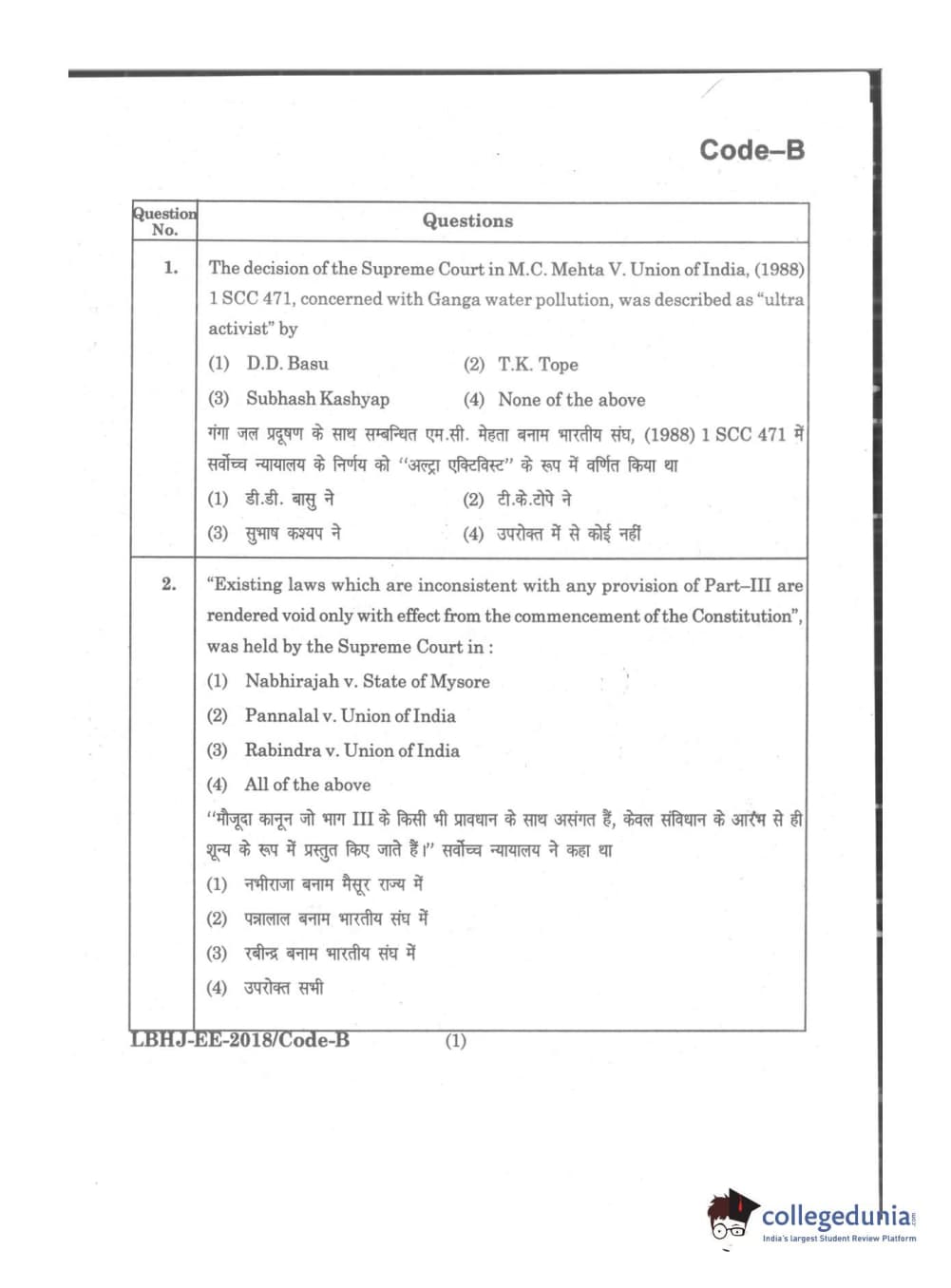 MDUCEE 2018 LL.B 3 Years Set B Question Paper with Answer Key PDFs
