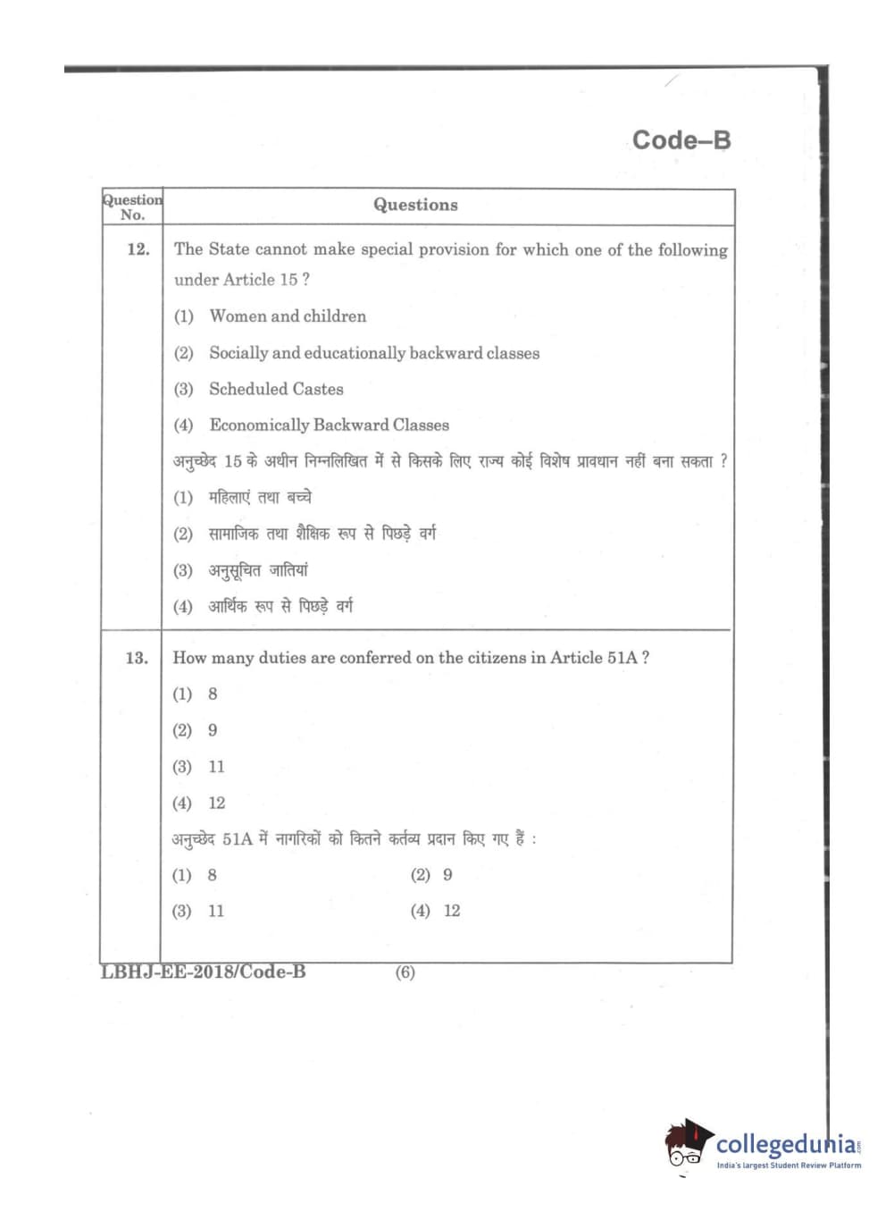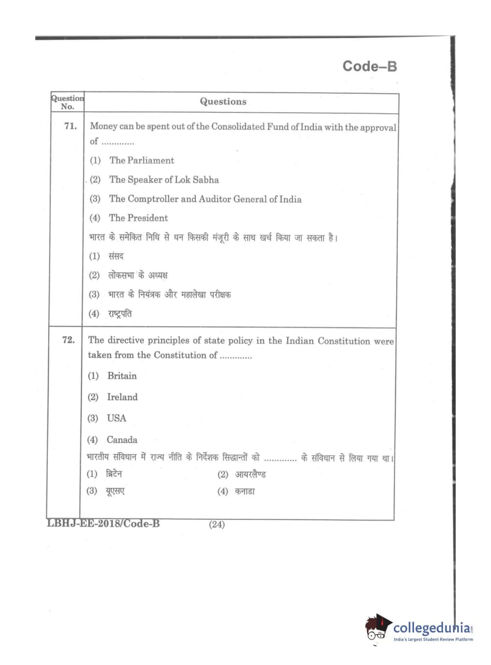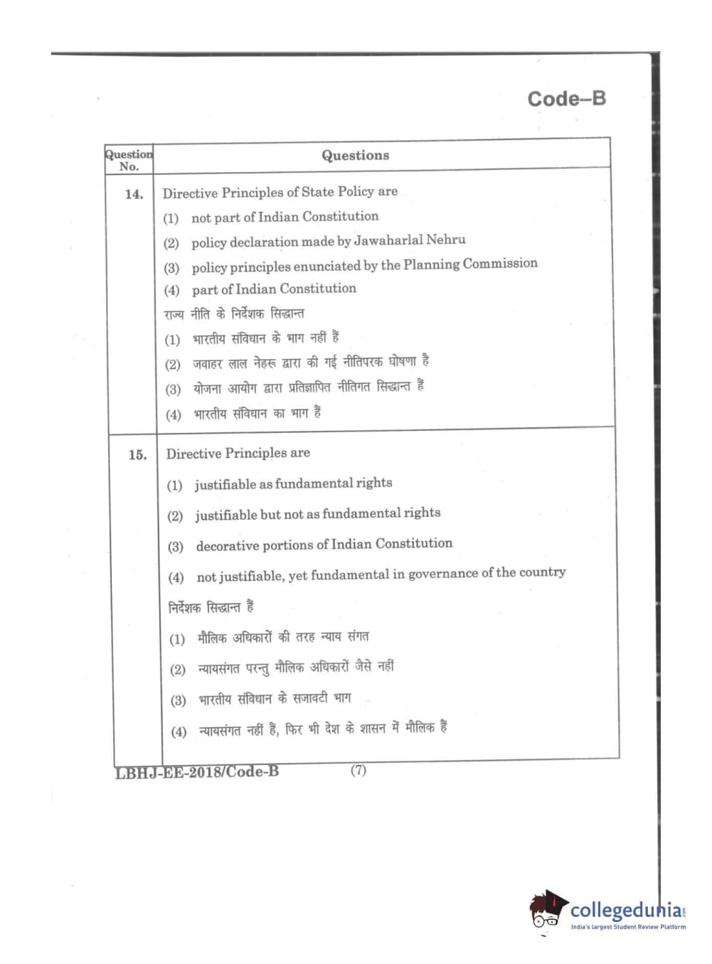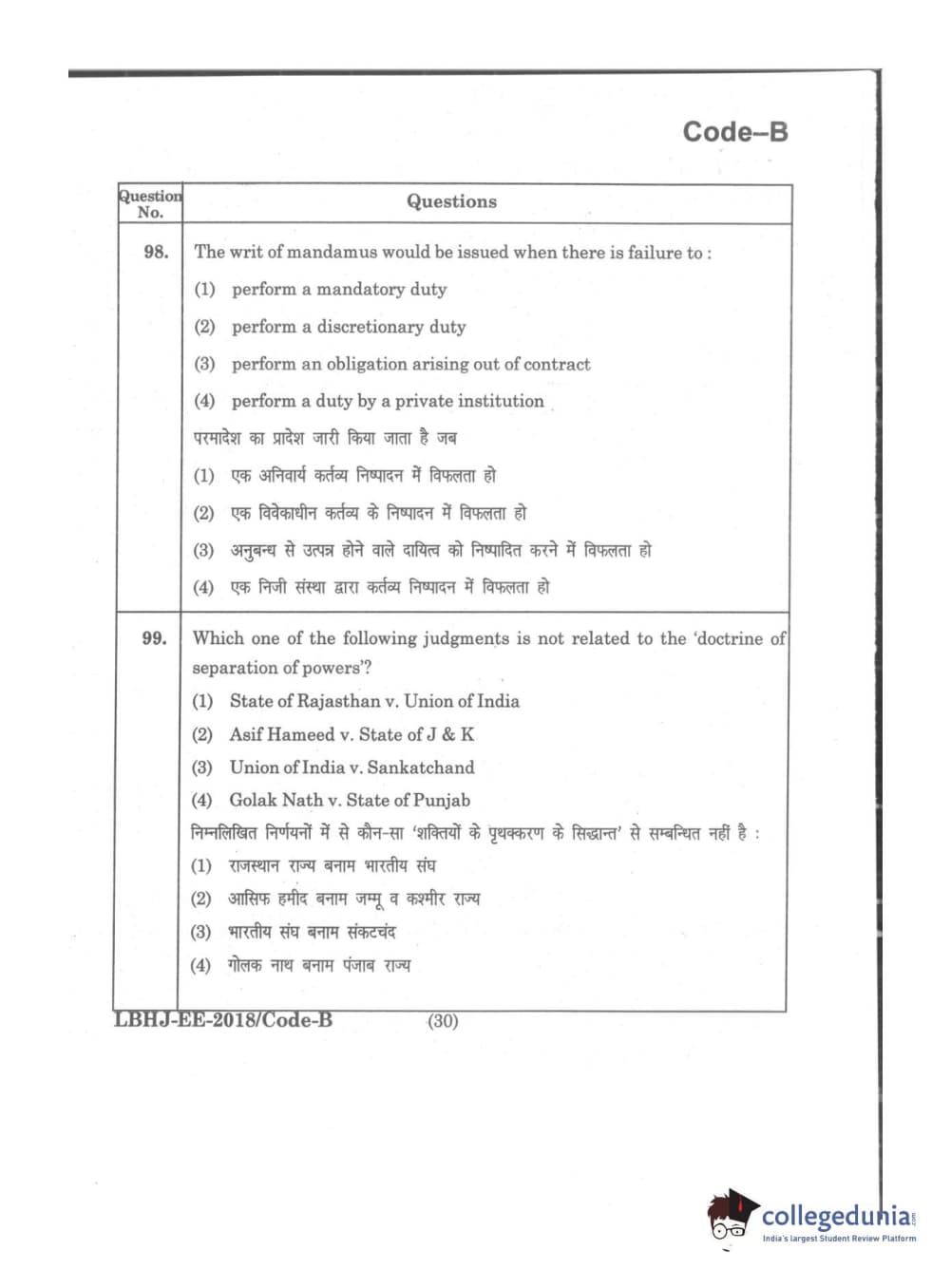 MDUCEE 2018 LL.B 3 Years Set B Question Paper with Answer Key PDFs