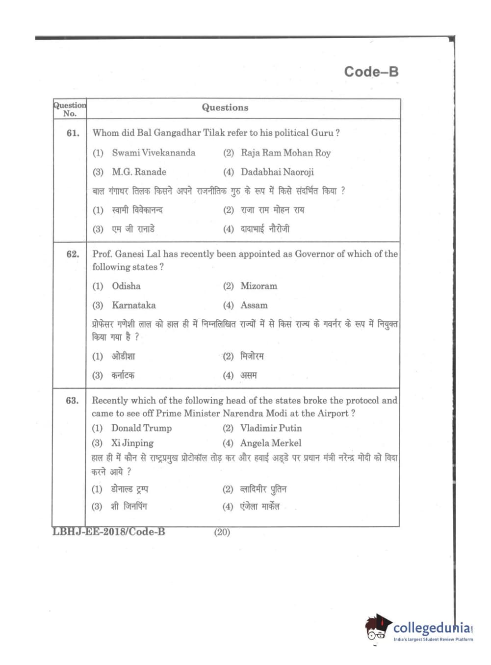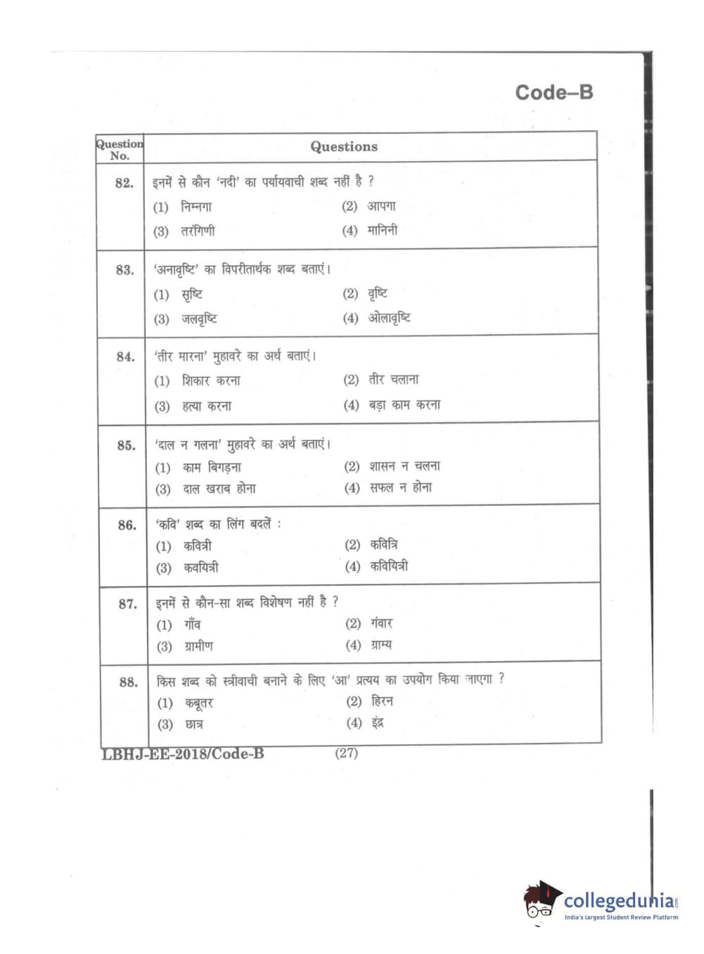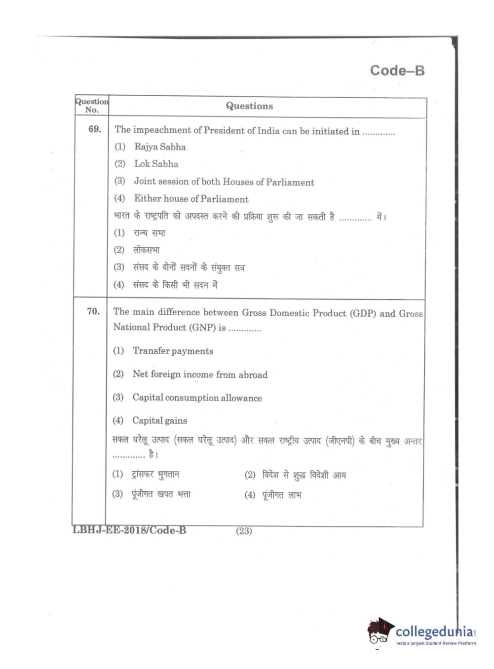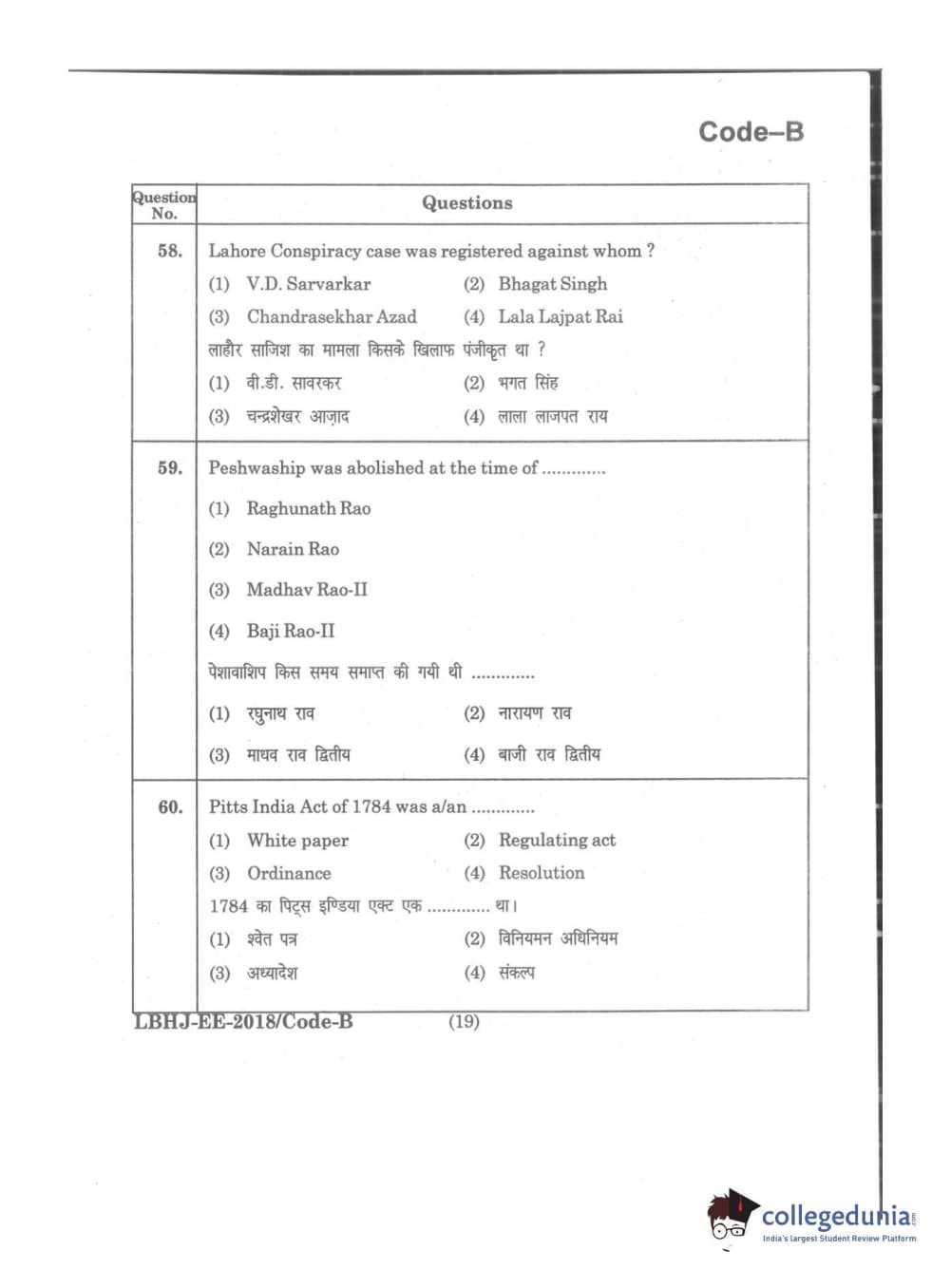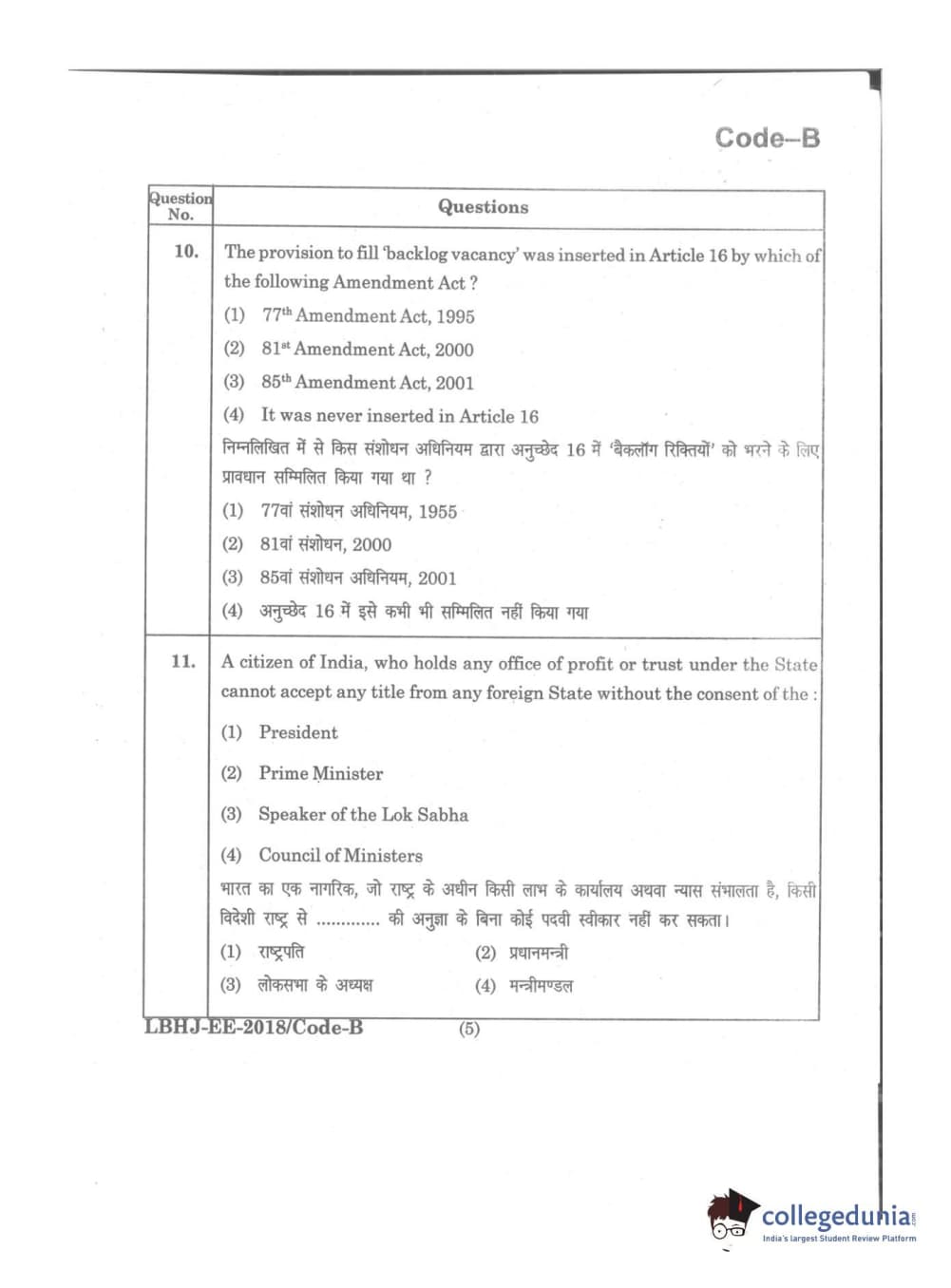 MDUCEE 2018 LL.B 3 Years Set B Question Paper with Answer Key PDFs