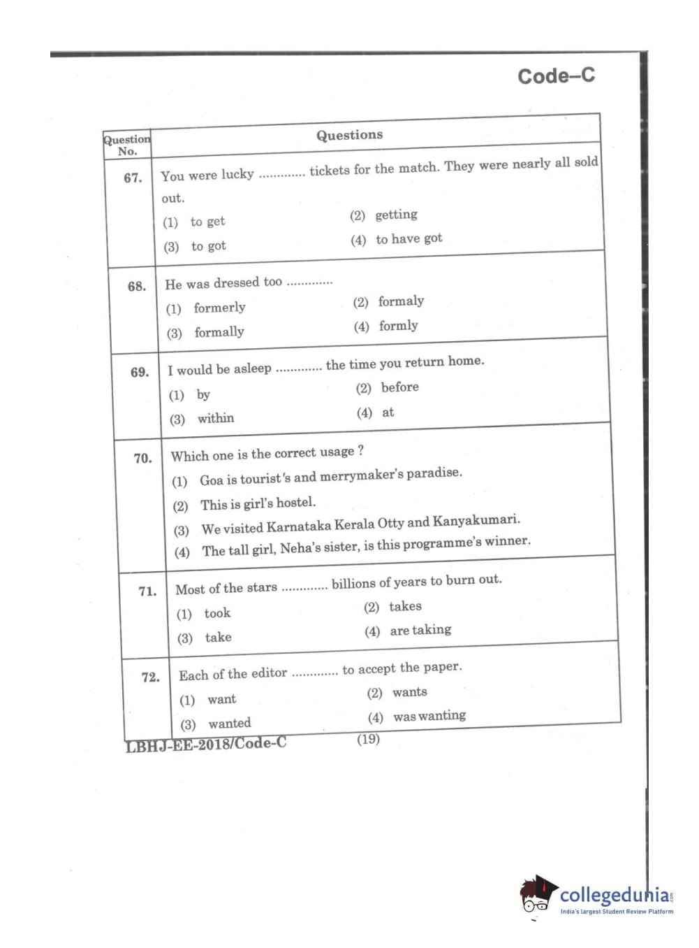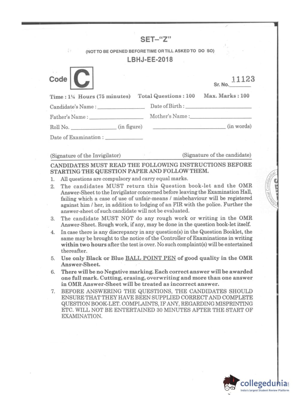 MDUCEE 2018 LL.B 3 Years Set C Question paper with answer key pdf is available for download. The exam was successfully organized by Maharishi Dayanand University. The question paper comprised a total of 100 questions.