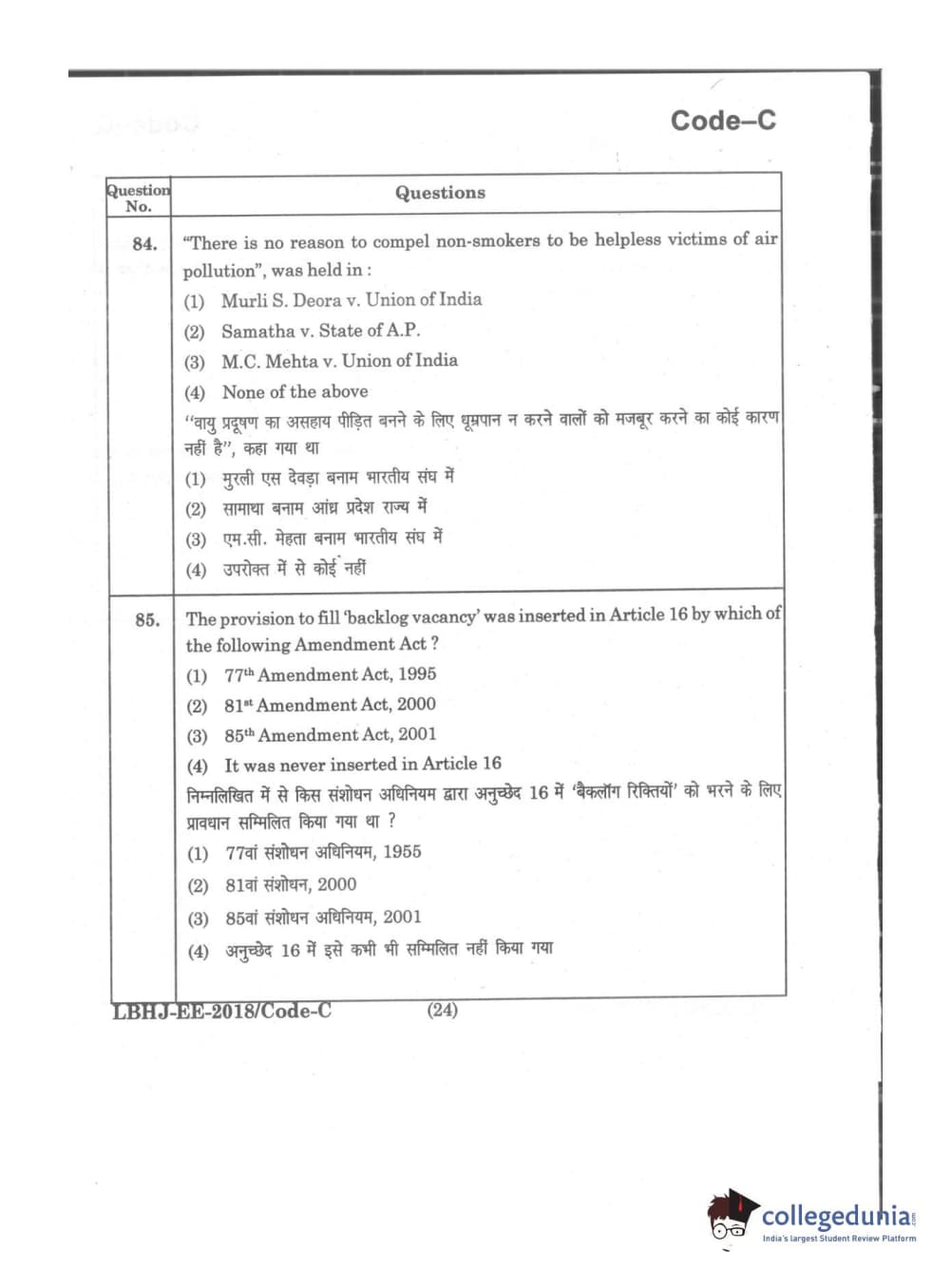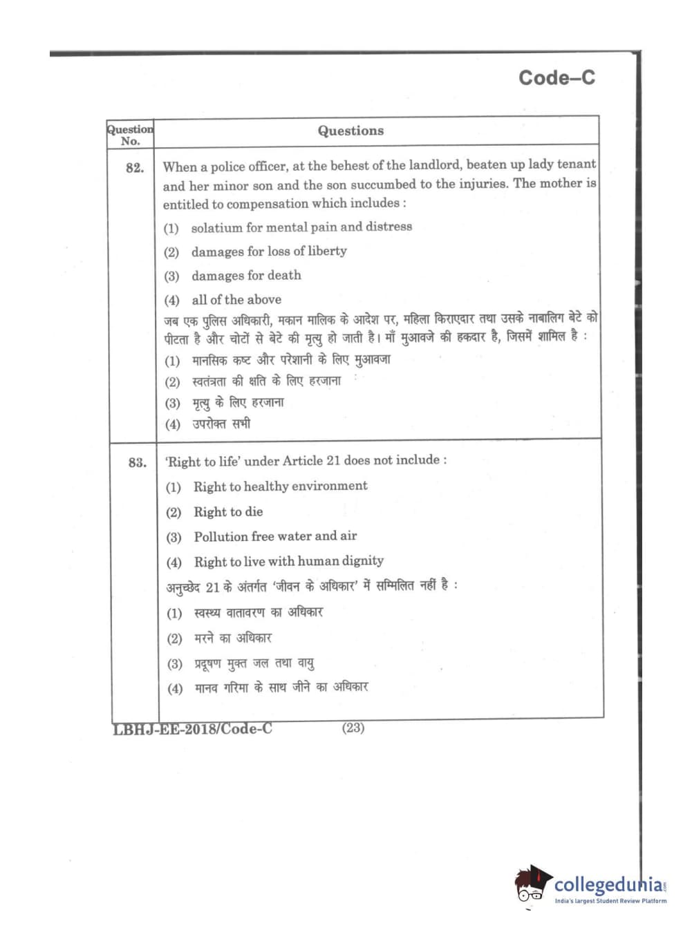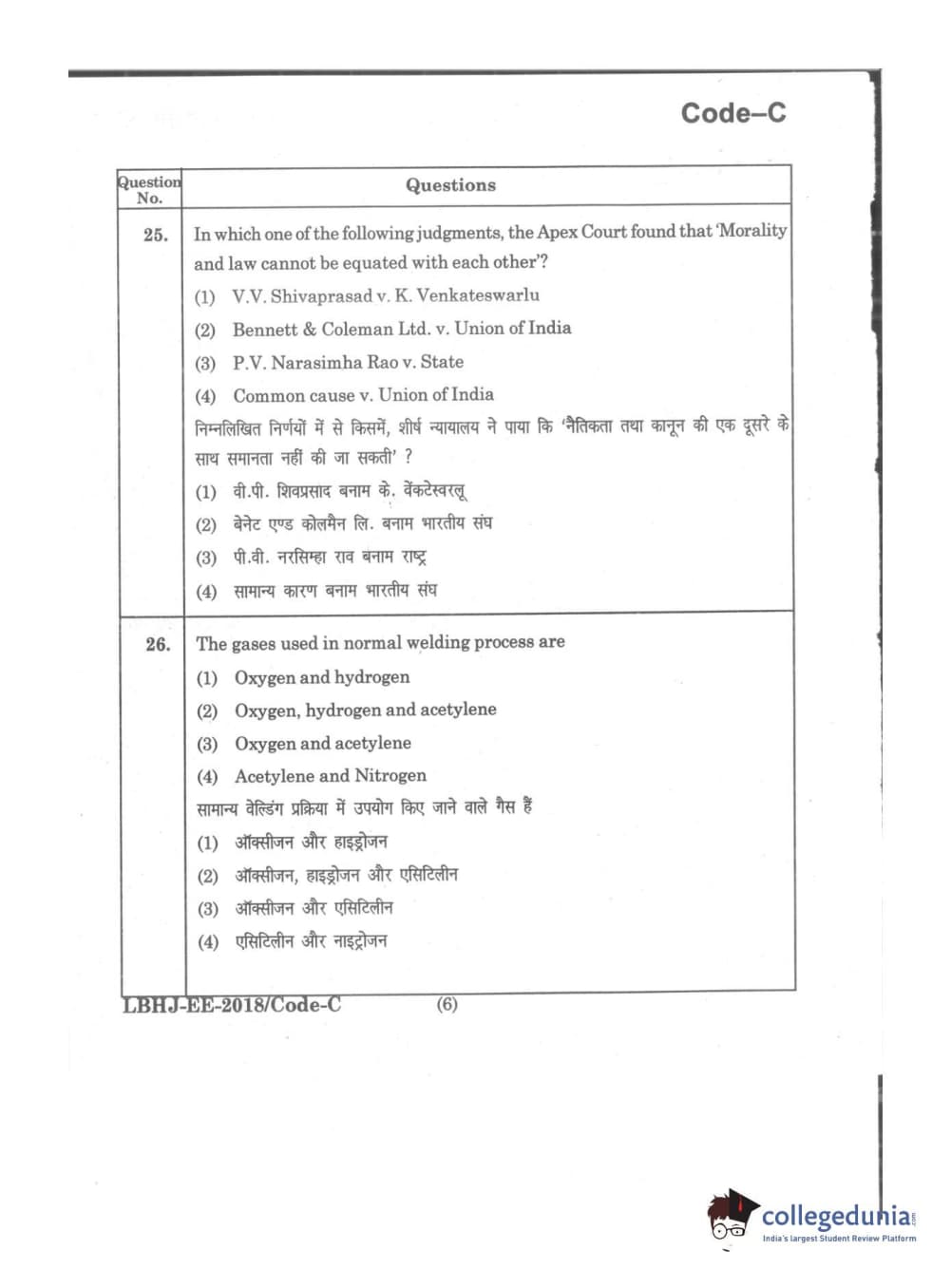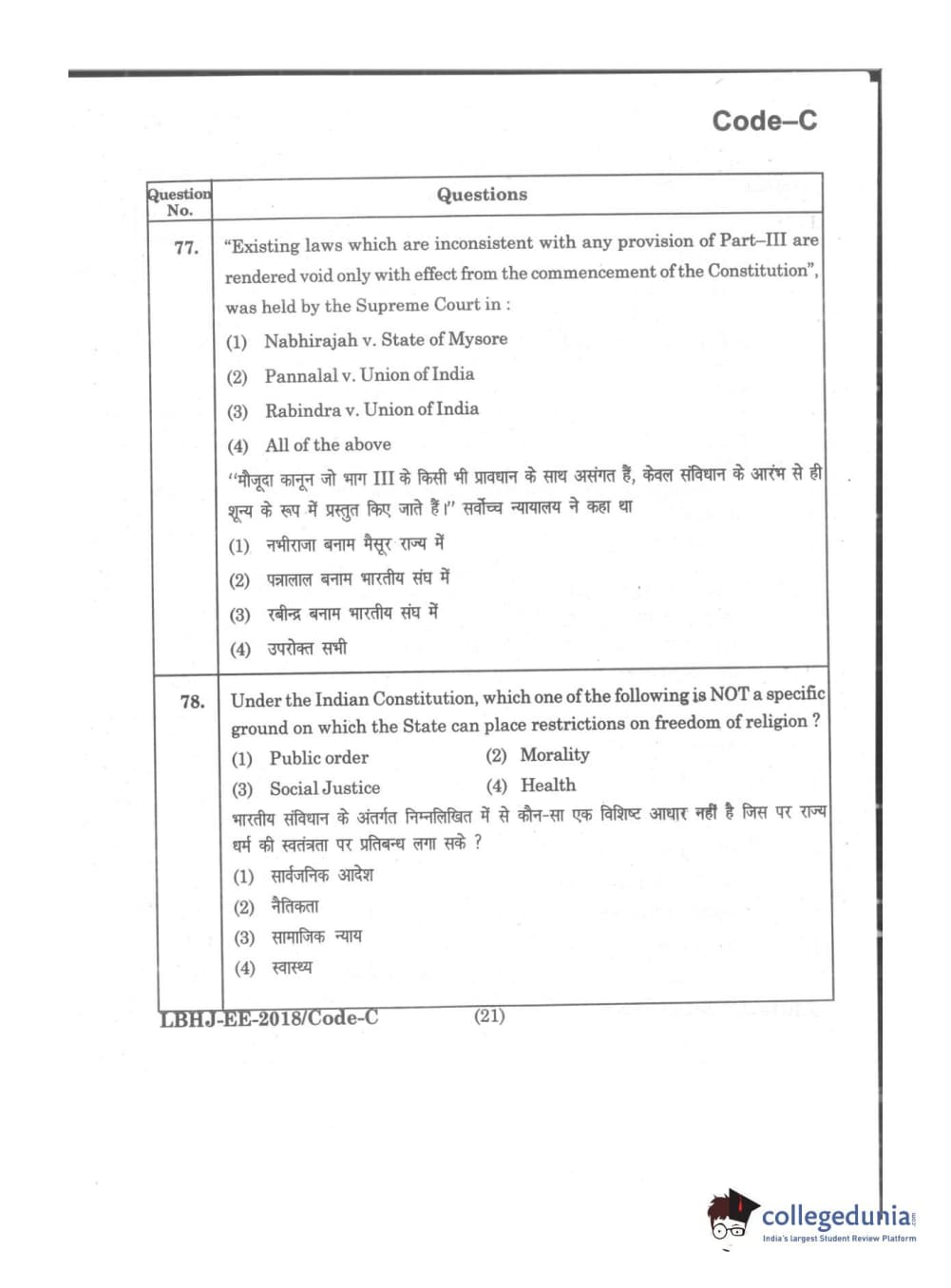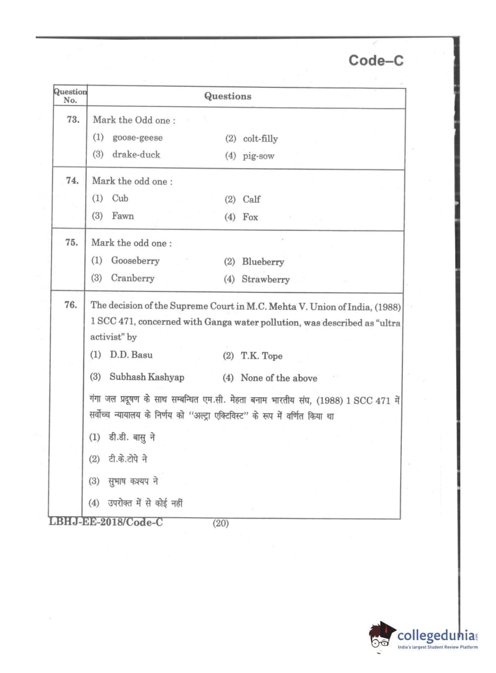 MDUCEE 2018 LL.B 3 Years Set C Question Paper with Answer Key PDFs