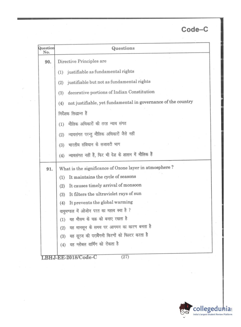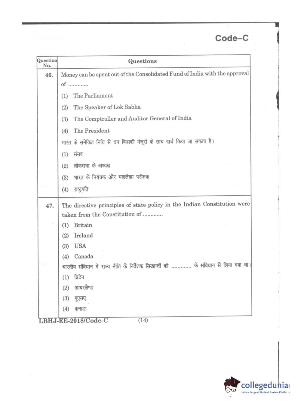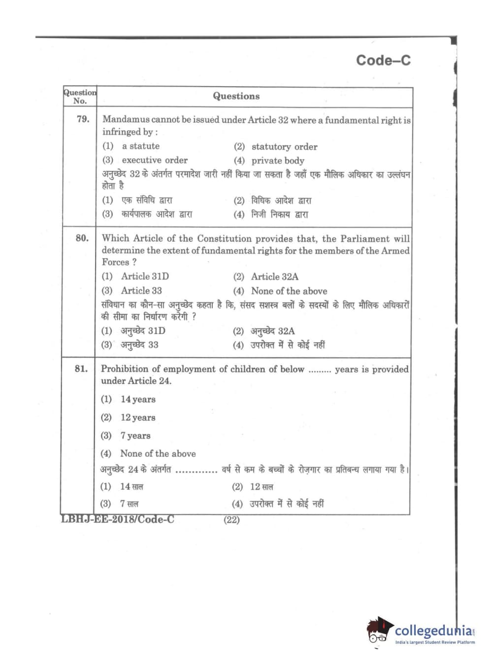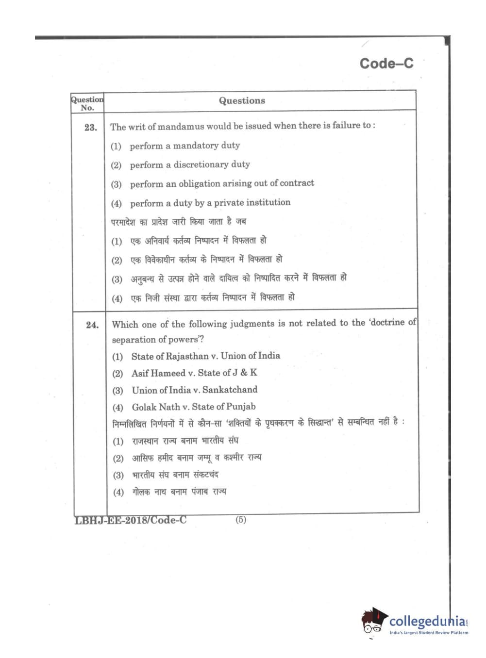 MDUCEE 2018 LL.B 3 Years Set C Question Paper with Answer Key PDFs