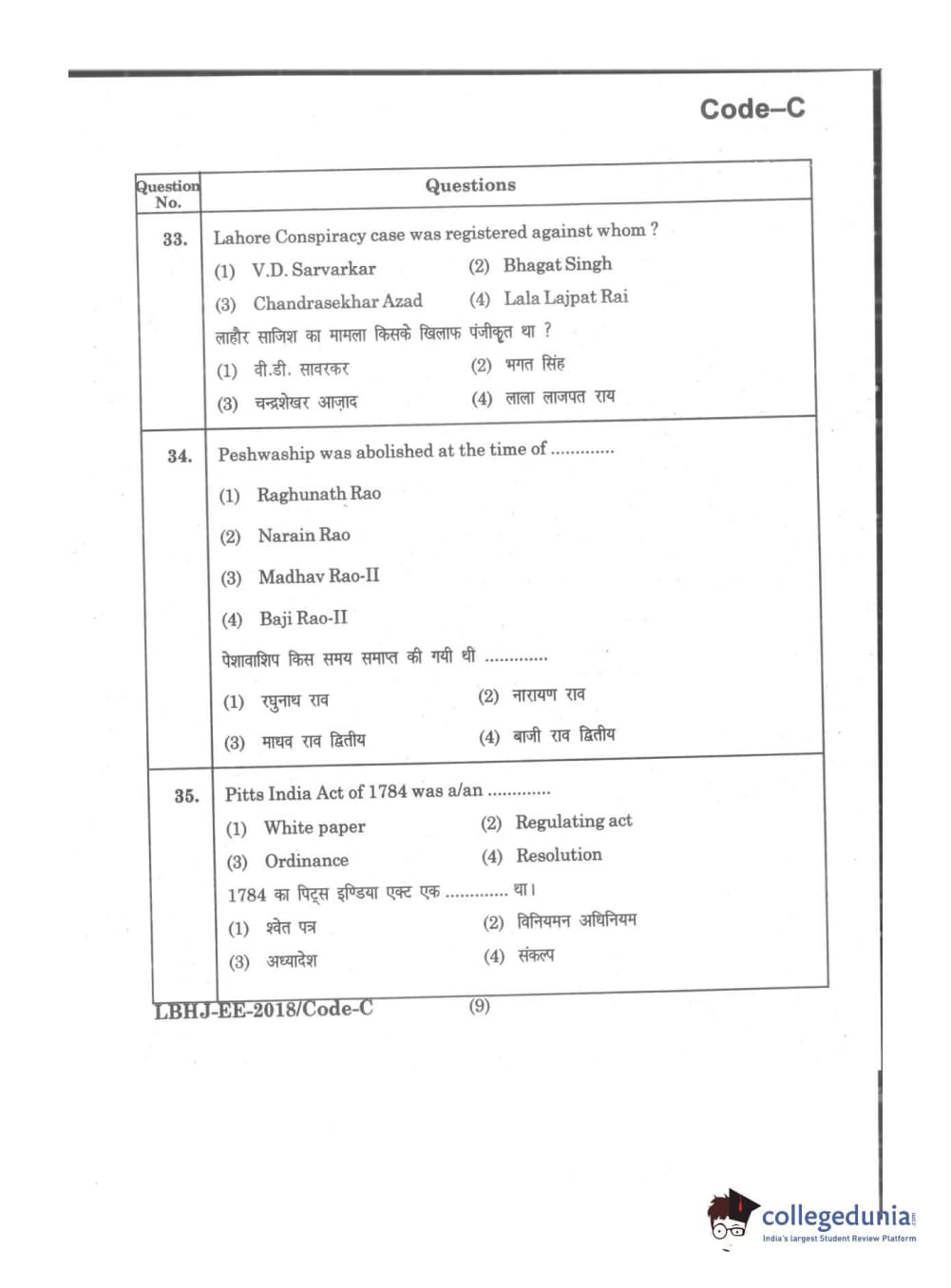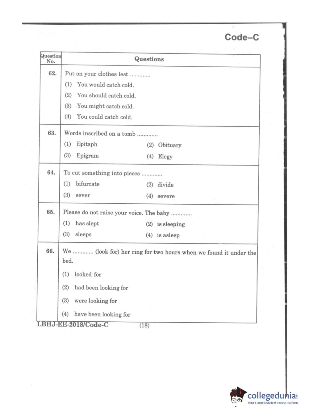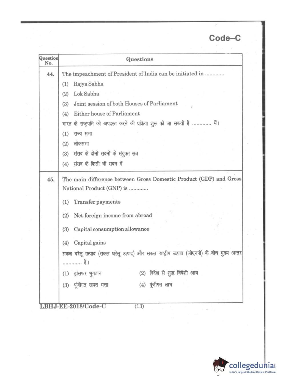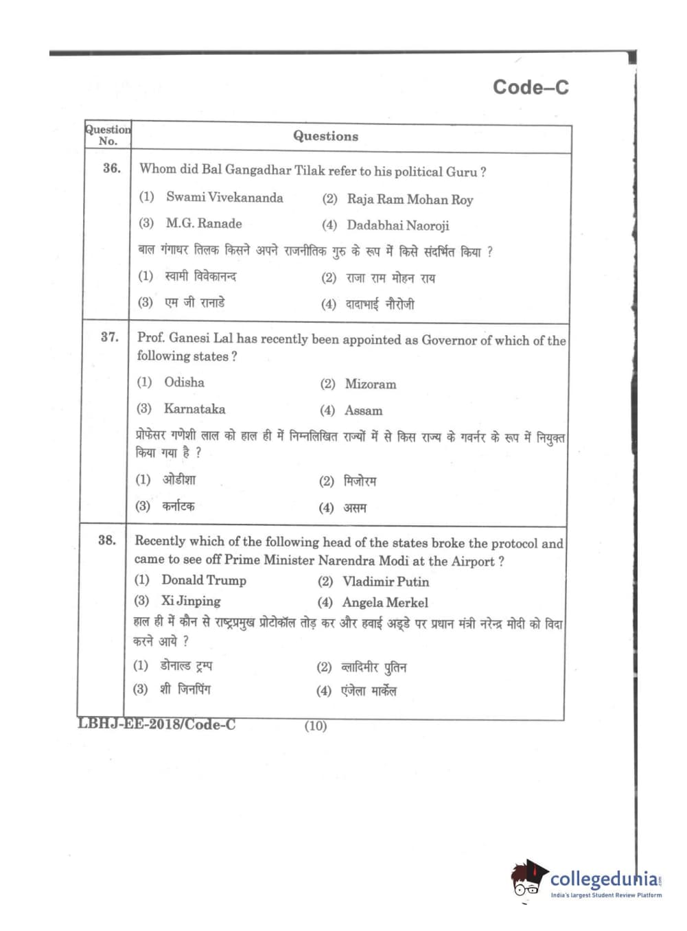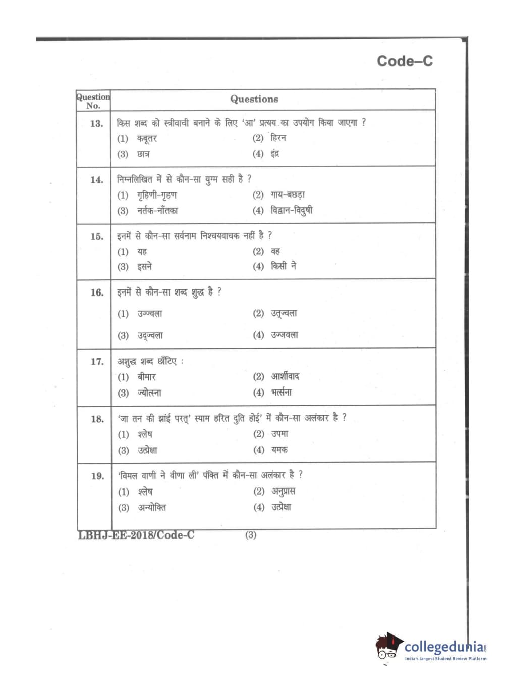 MDUCEE 2018 LL.B 3 Years Set C Question Paper with Answer Key PDFs