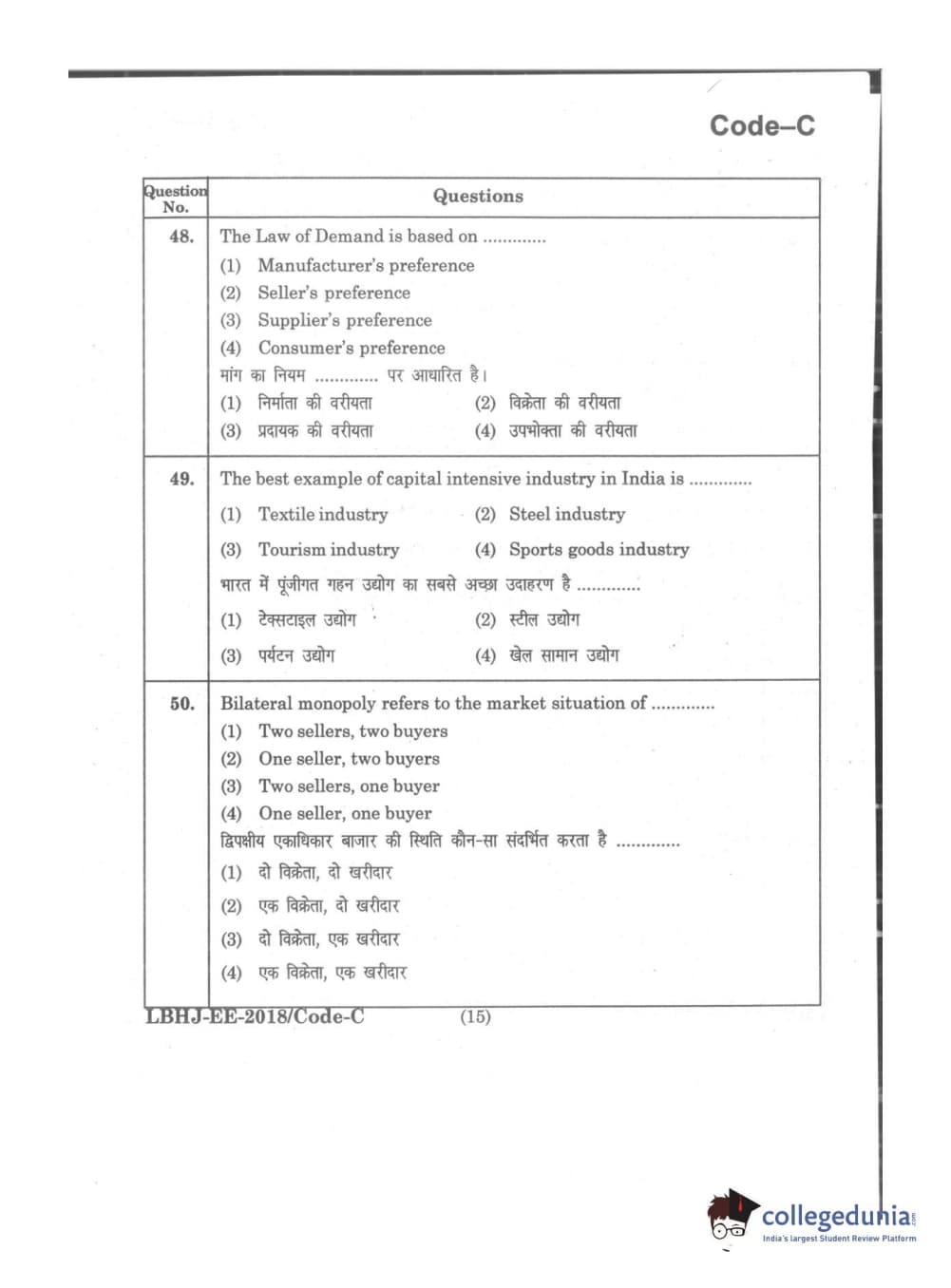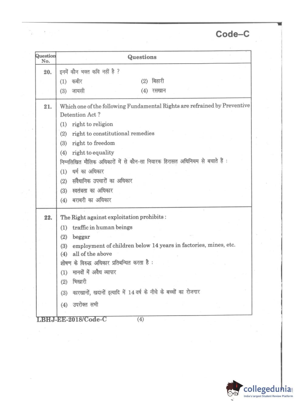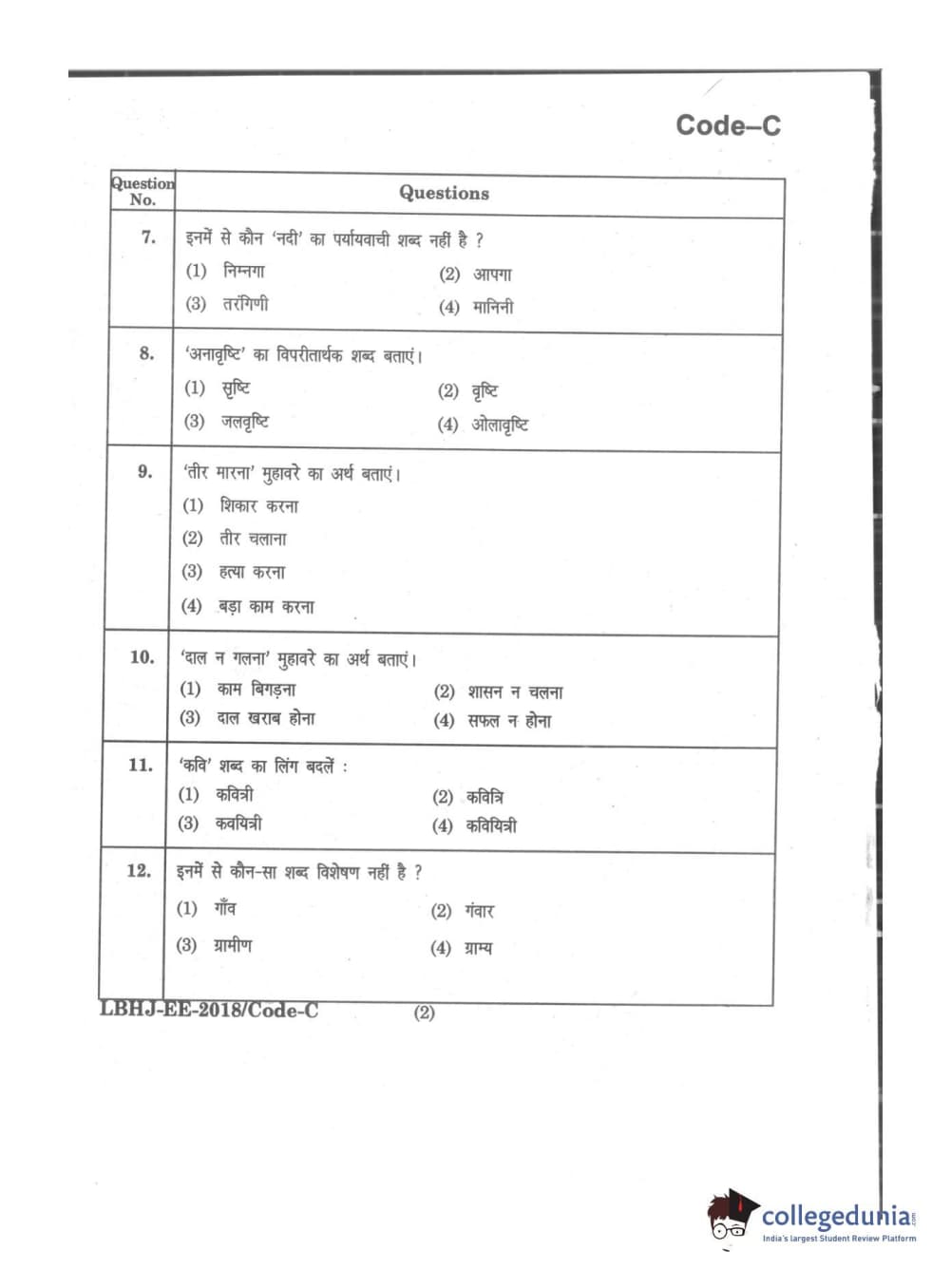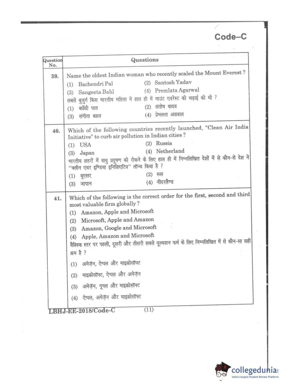 MDUCEE 2018 LL.B 3 Years Set C Question Paper with Answer Key PDFs