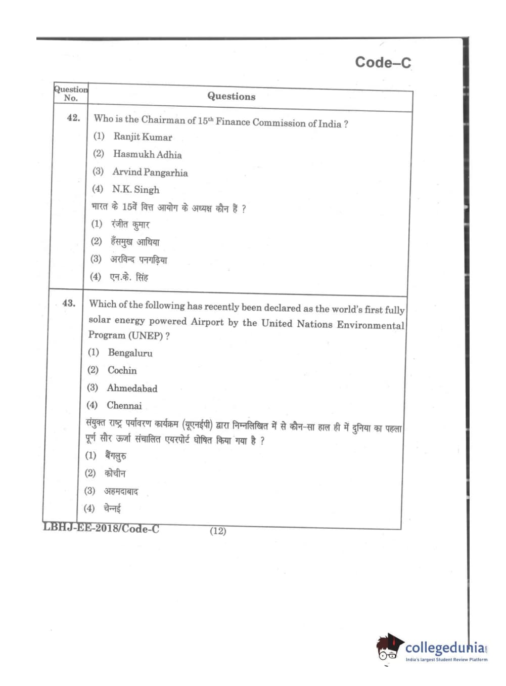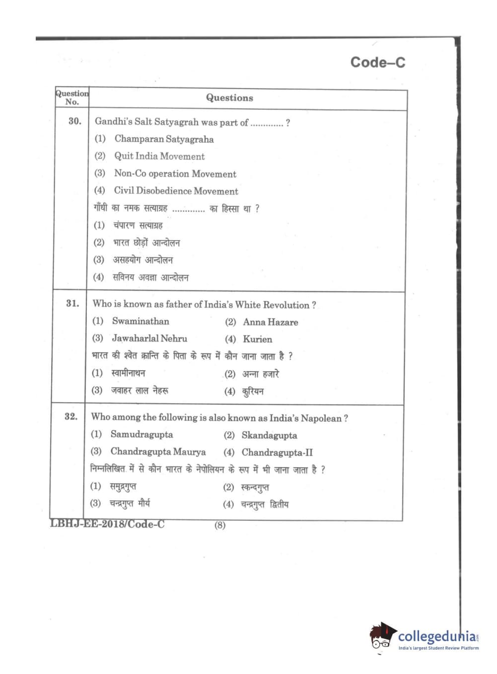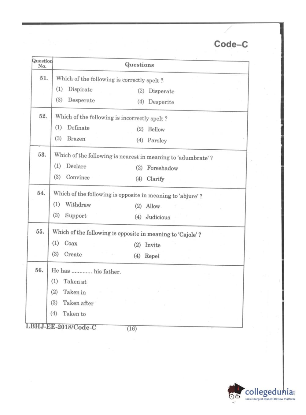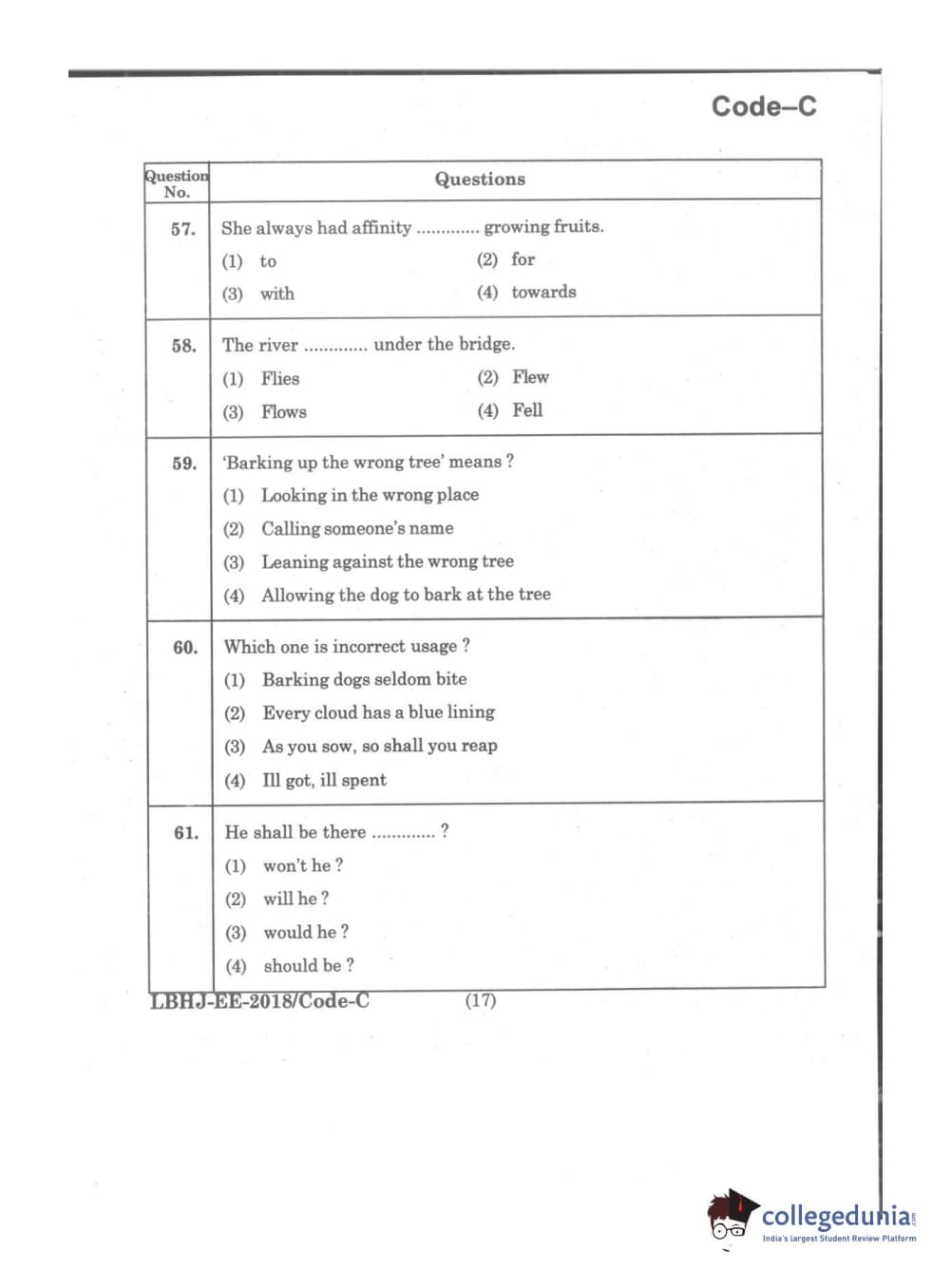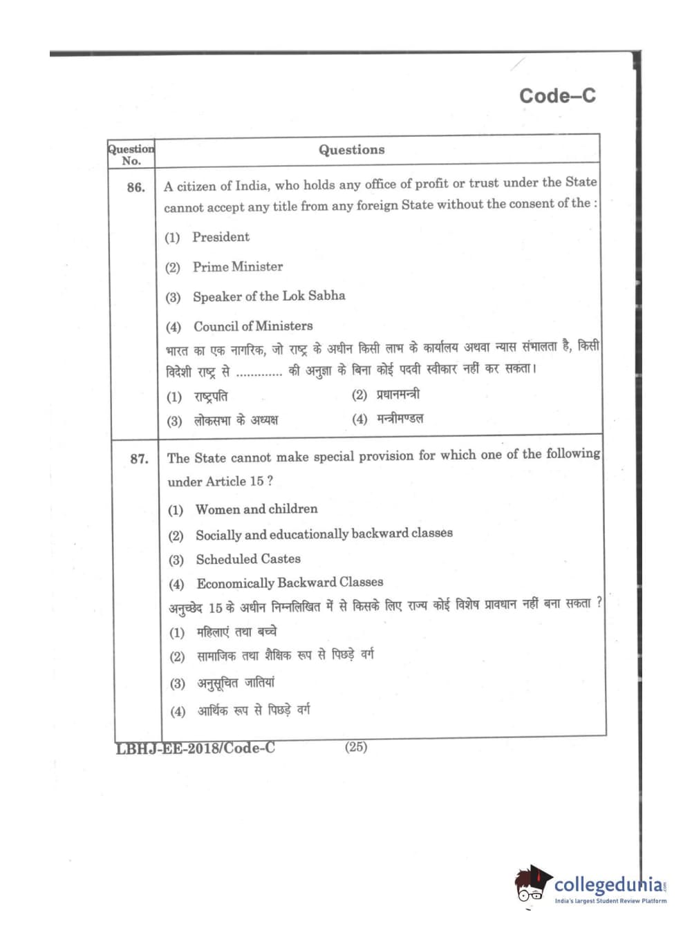 MDUCEE 2018 LL.B 3 Years Set C Question Paper with Answer Key PDFs