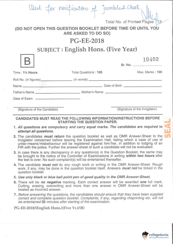 MDUCEE 2018 M.A. (Hons) English 5-Year Integrated Set B Question paper with answer key pdf is available for download. The exam was successfully organized by Maharishi Dayanand University. The question paper comprised a total of 100 questions.