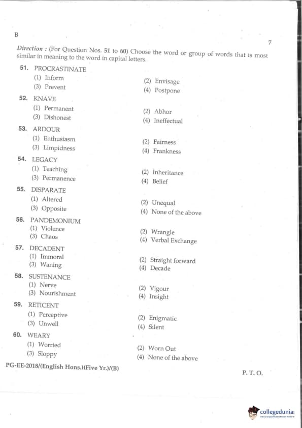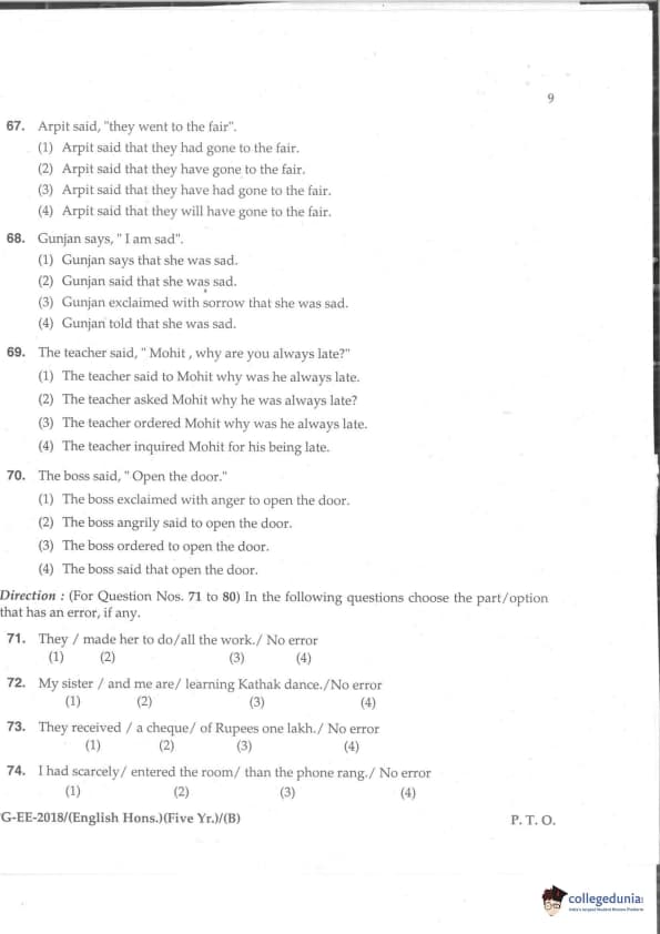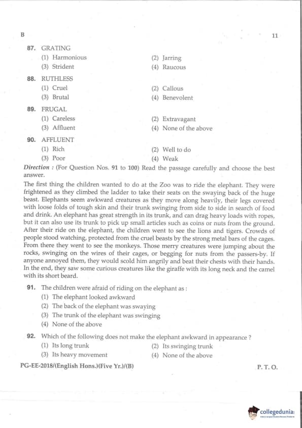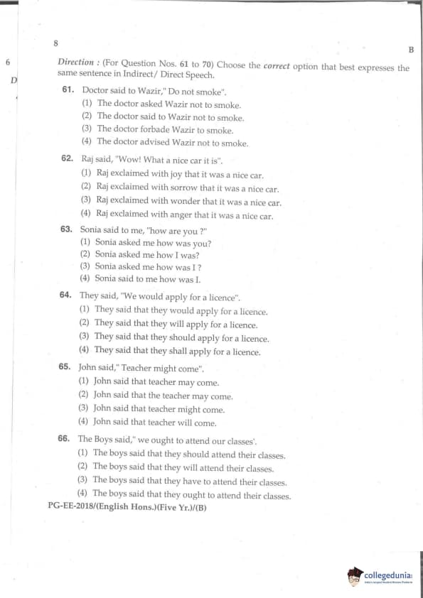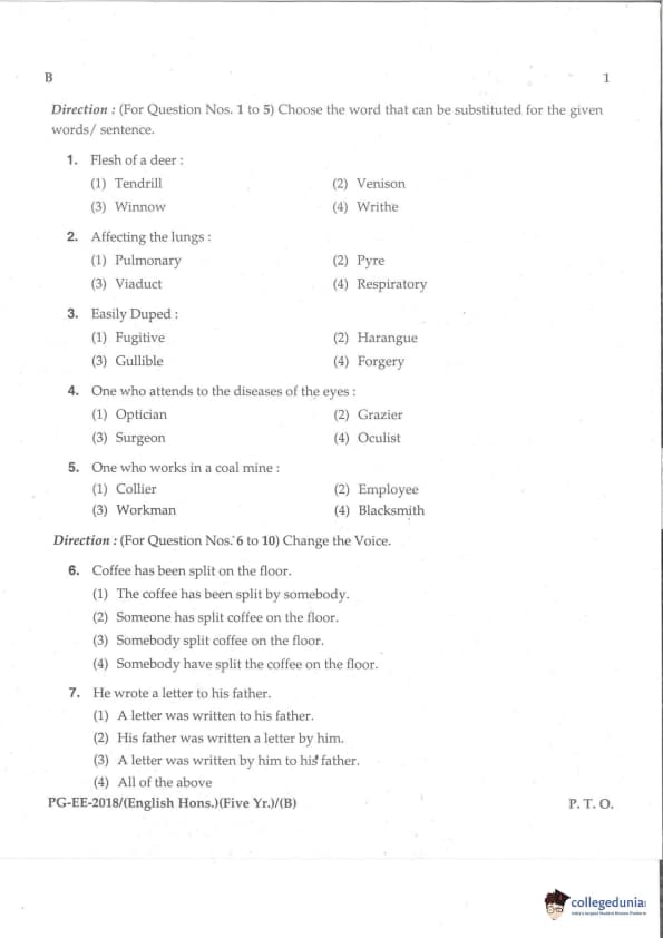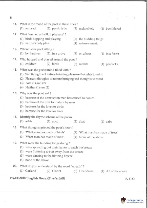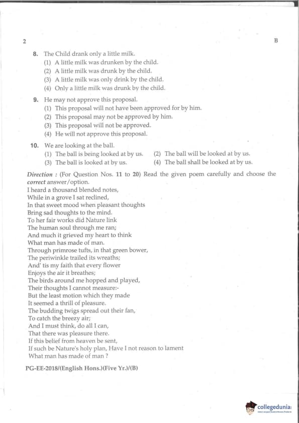 MDUCEE 2018 M.A. (Hons) English 5-Year Integrated Set B Question Paper with Answer Key PDFs
