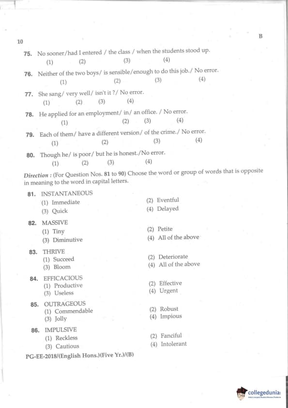 | MDUCEE 2018 M.A. (Hons) English 5-Year Integrated Set B Question Paper PDF | MDUCEE 2018 M.A. (Hons) English 5-Year Integrated Set B Answer Key PDF |