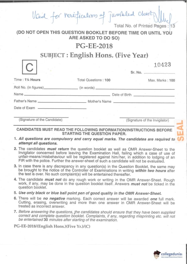 MDUCEE 2018 M.A. (Hons) English 5-Year Integrated Set C Question paper with answer key pdf is available for download. The exam was successfully organized by Maharishi Dayanand University. The question paper comprised a total of 100 questions.