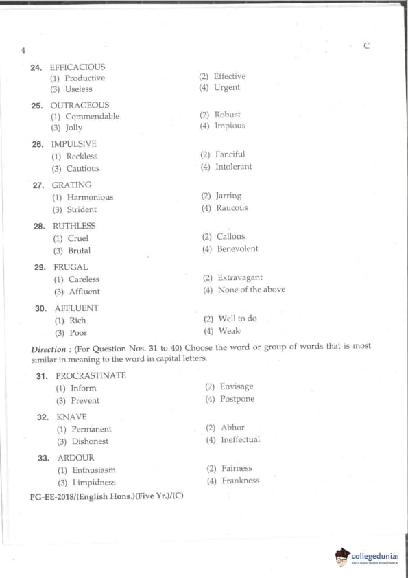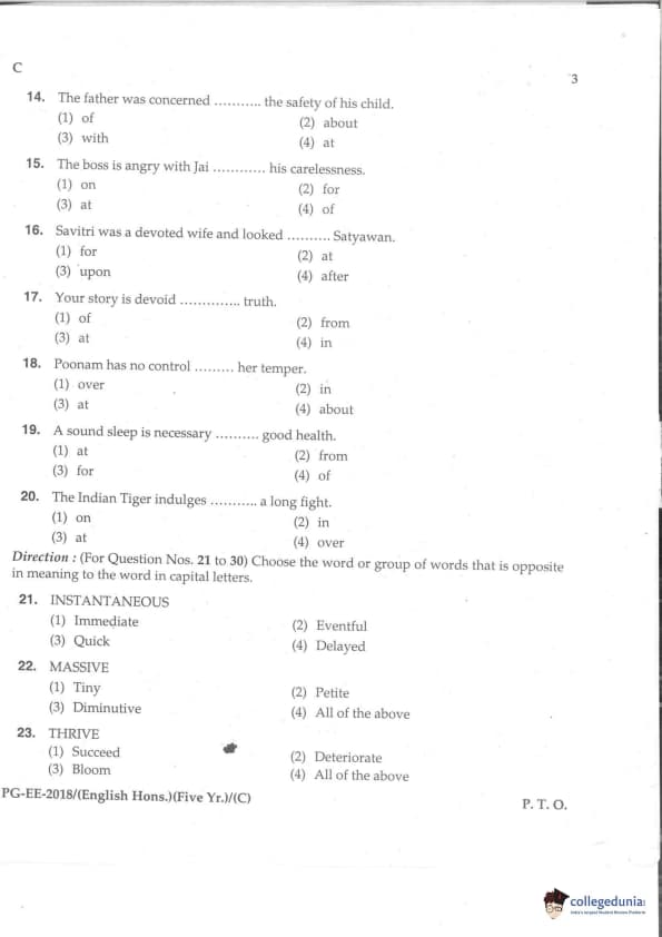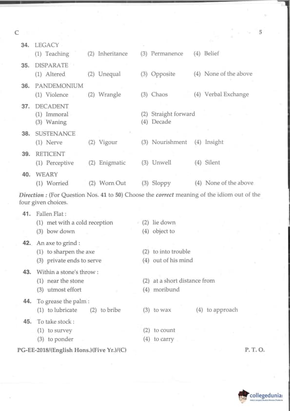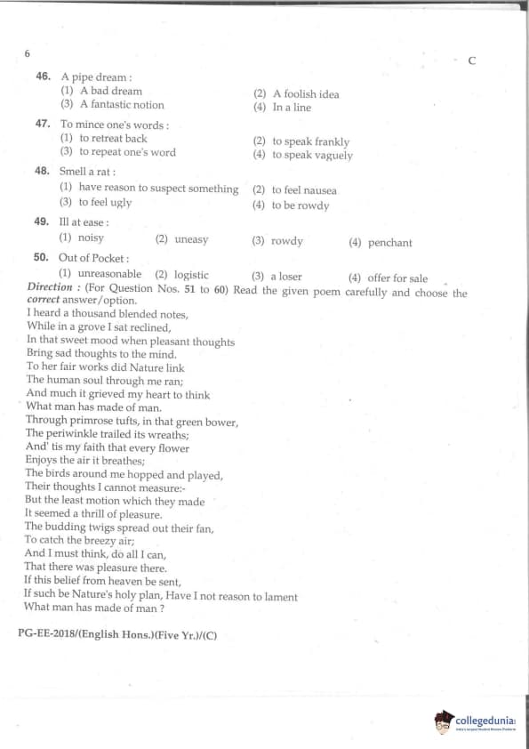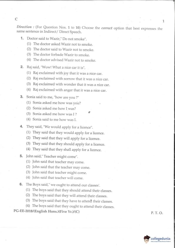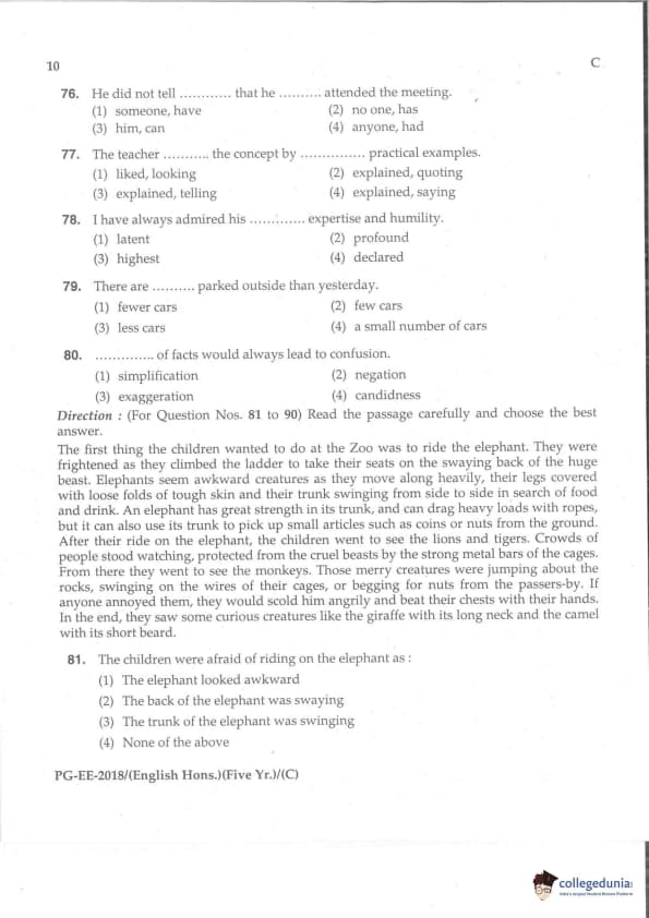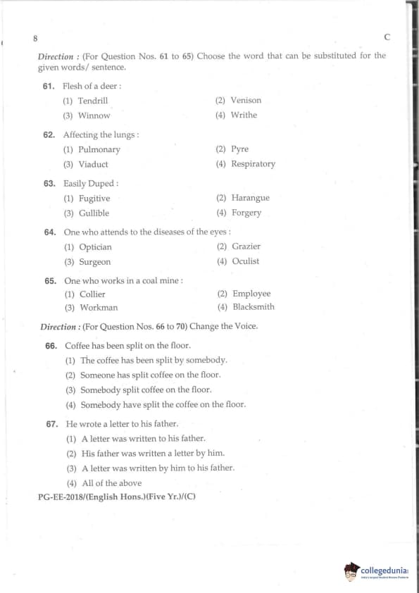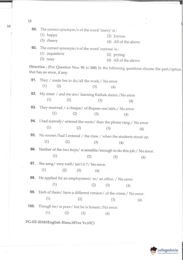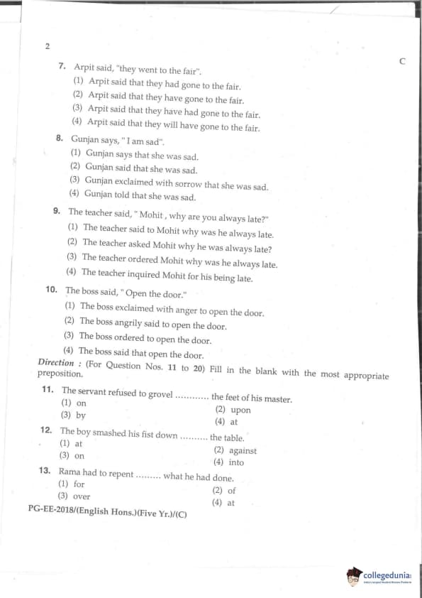 MDUCEE 2018 M.A. (Hons) English 5-Year Integrated Set C Question Paper with Answer Key PDFs