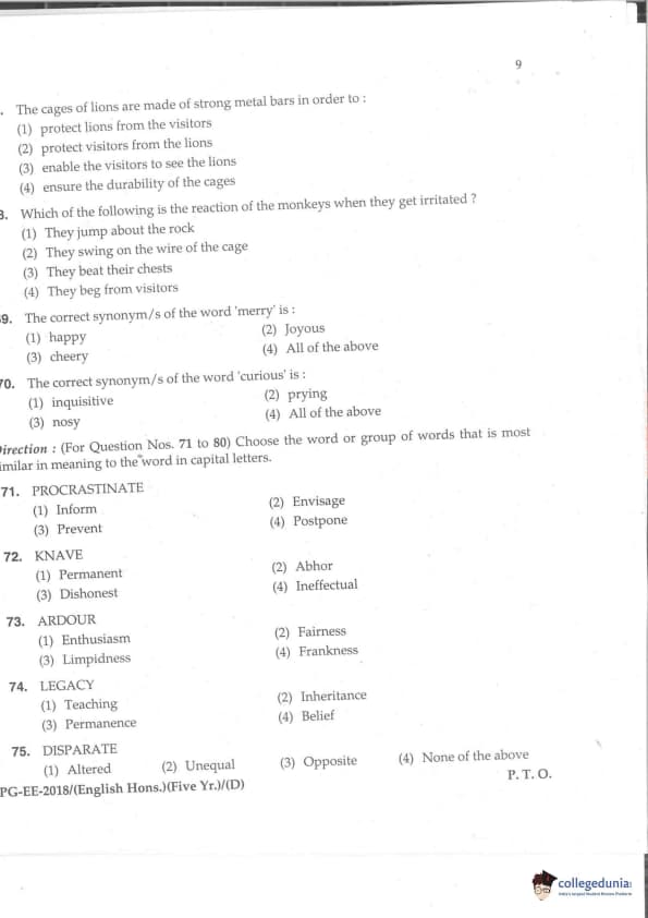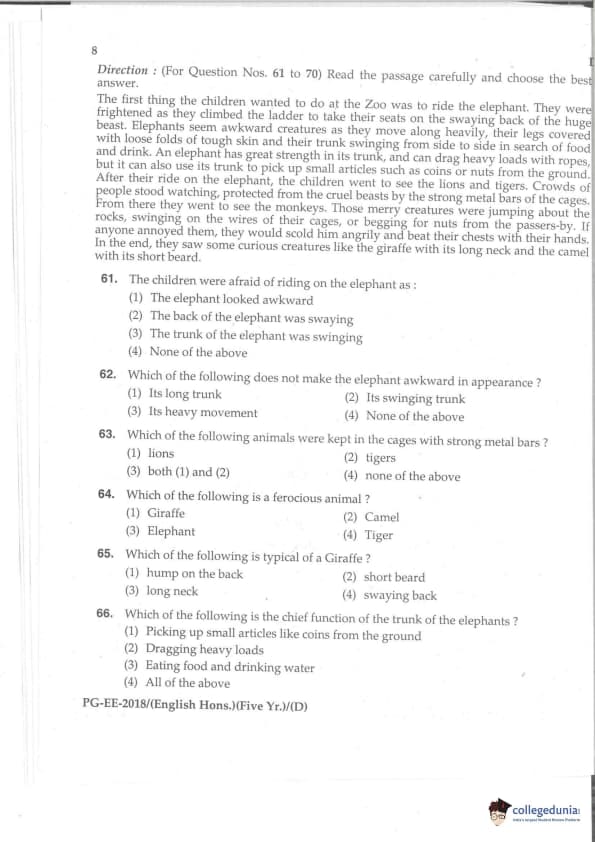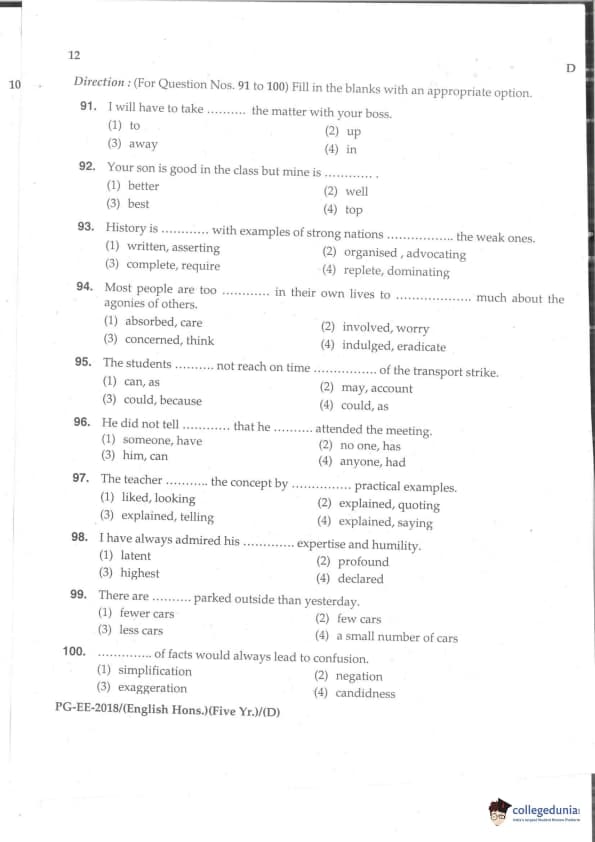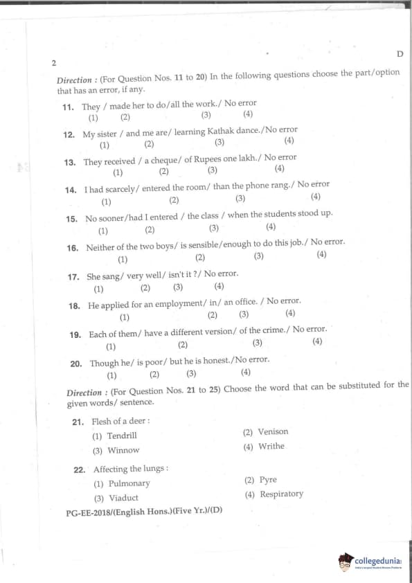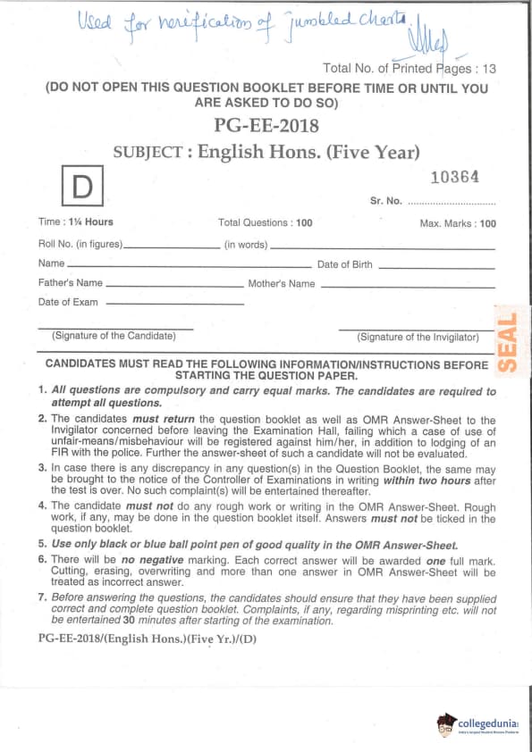 | MDUCEE 2018 M.A. (Hons) English 5-Year Integrated Set D Question Paper PDF | MDUCEE 2018 M.A. (Hons) English 5-Year Integrated Set D Answer Key PDF |