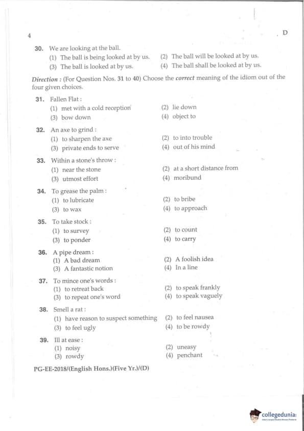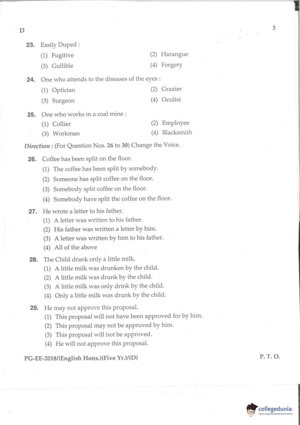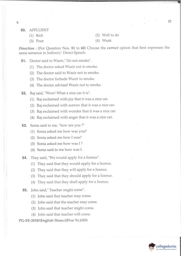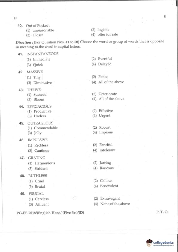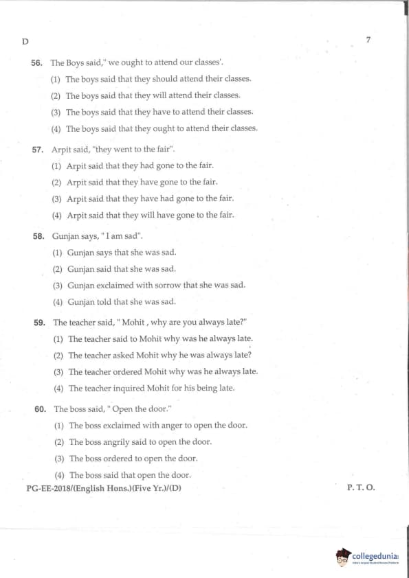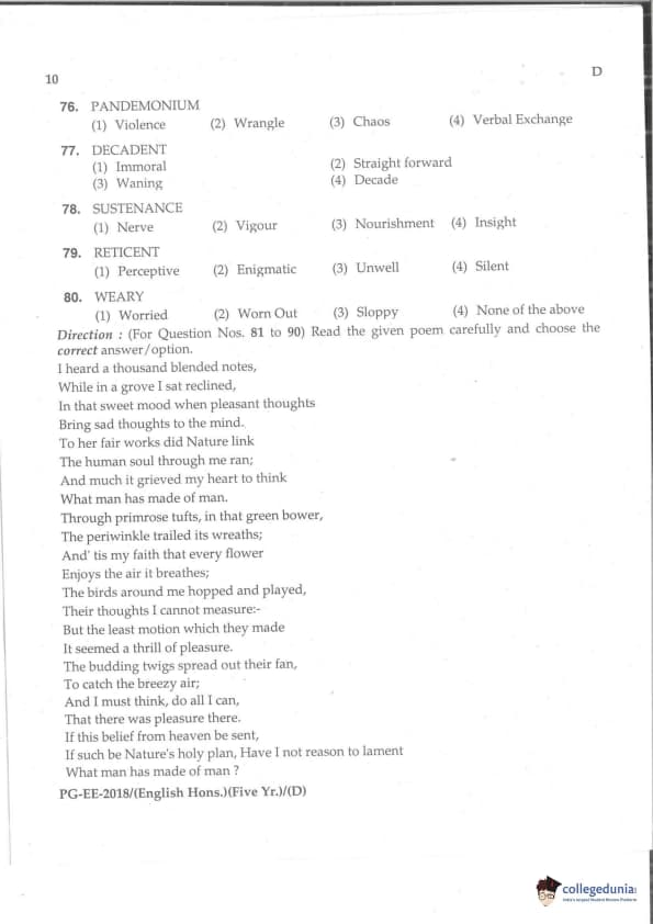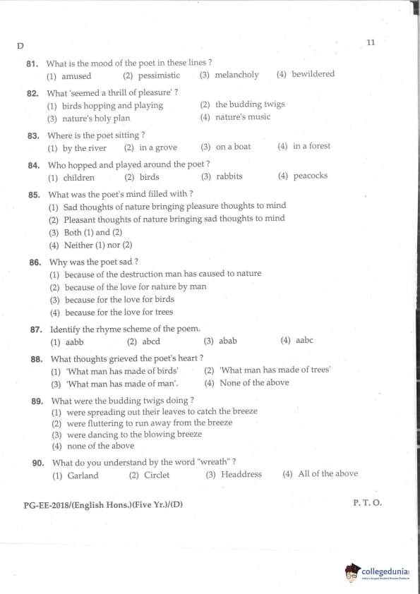 MDUCEE 2018 M.A. (Hons) English 5-Year Integrated Set D Question Paper with Answer Key PDFs