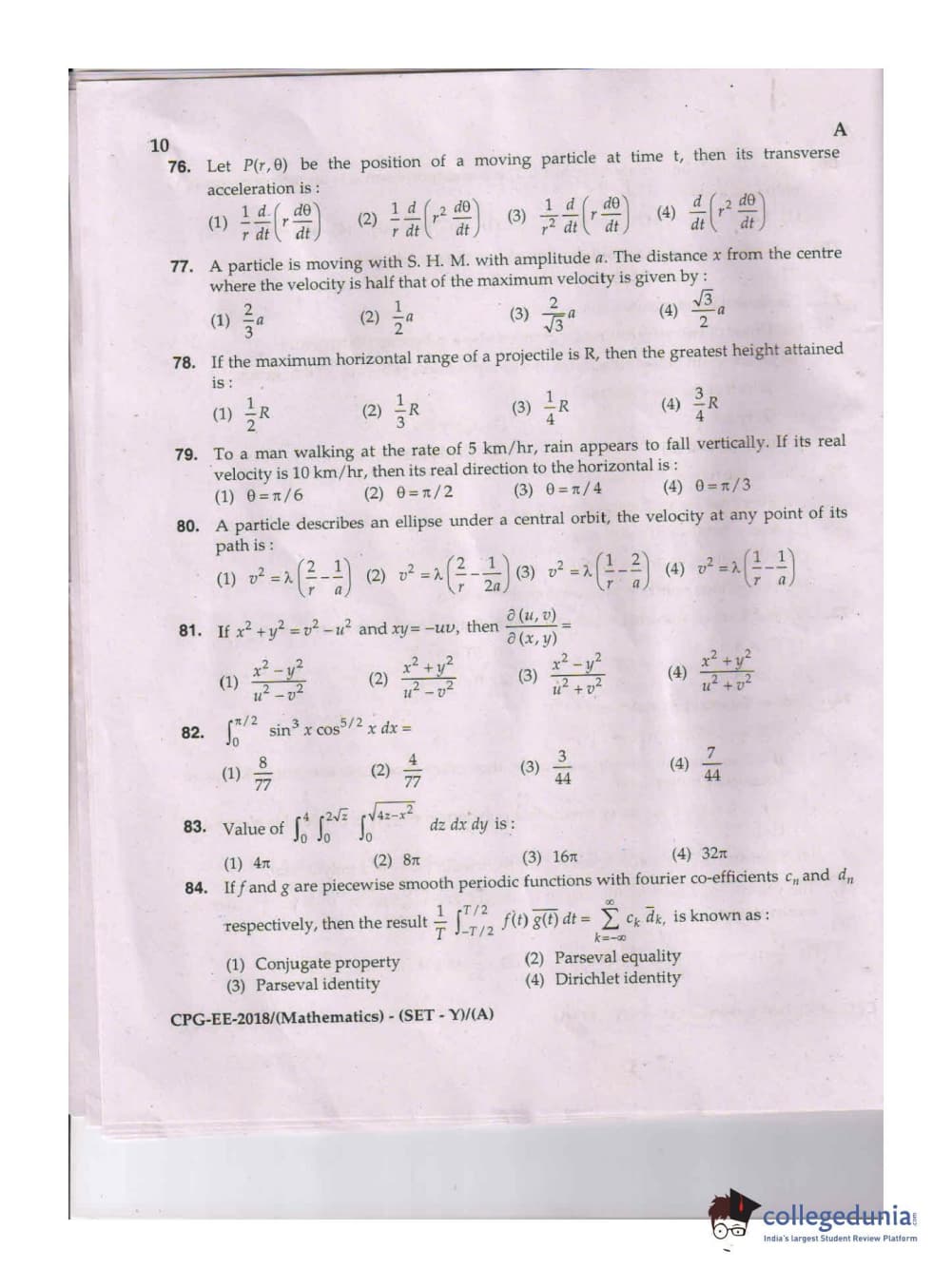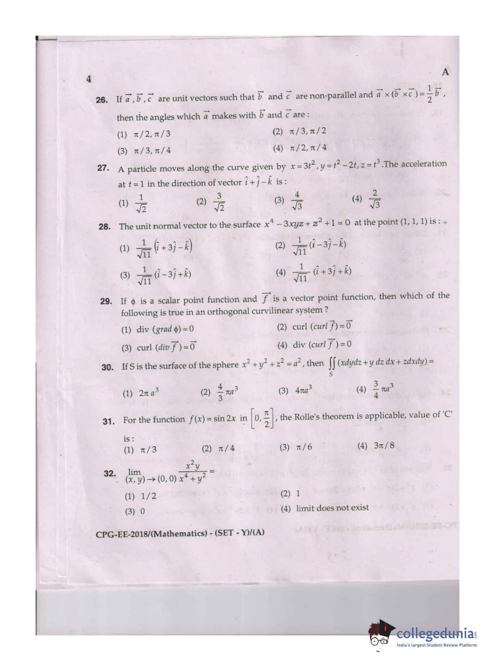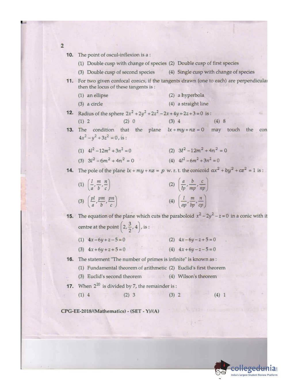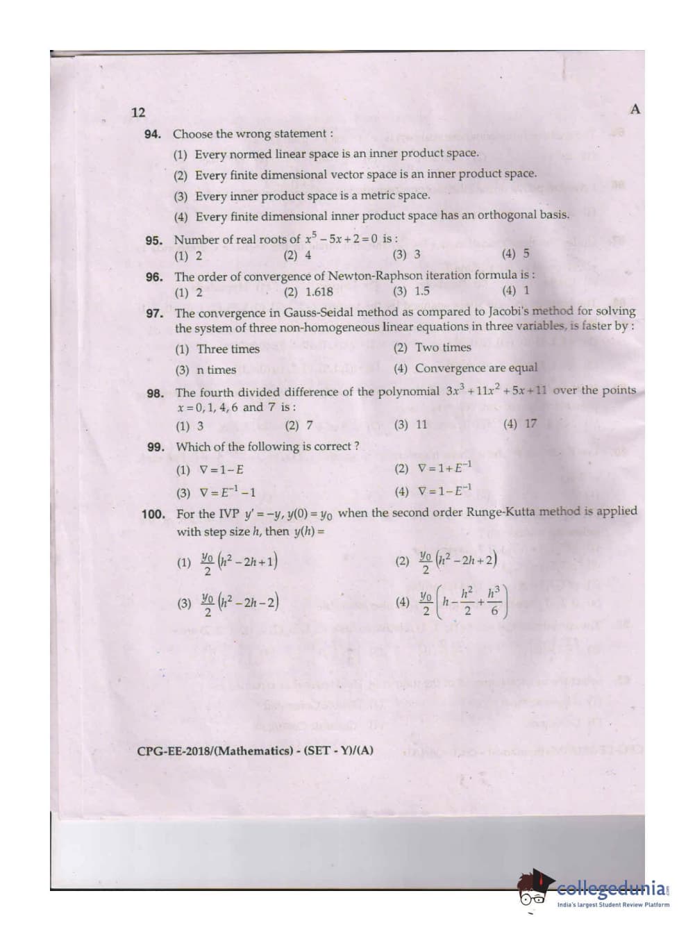 MDUCEE 2018 Mathematics Set A Question Paper with Answer Key PDFs