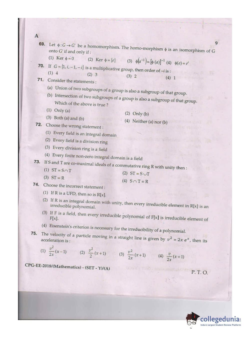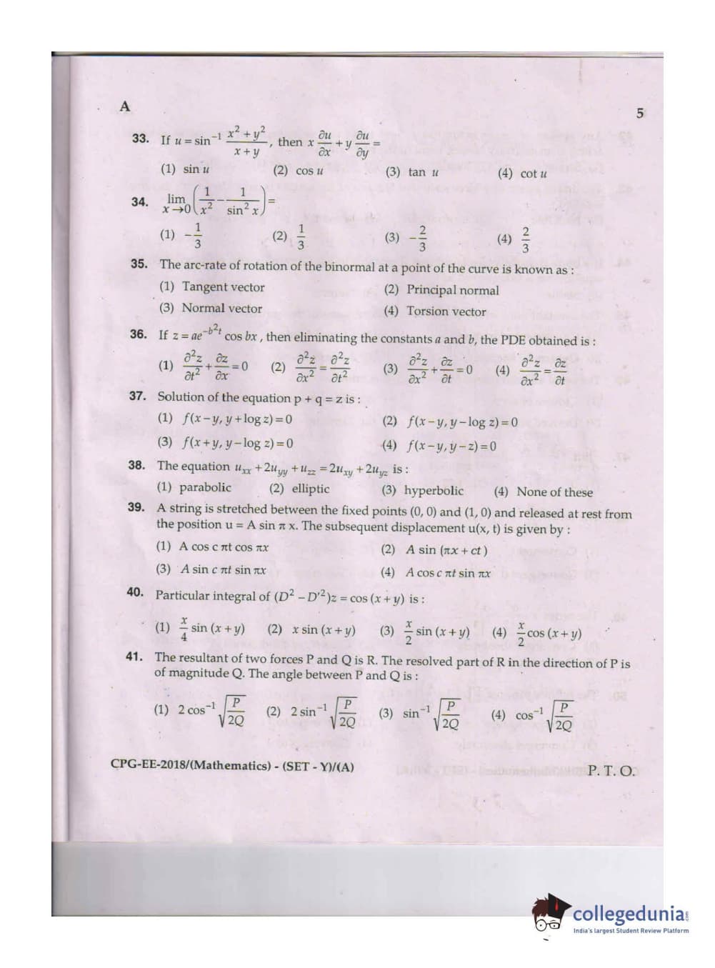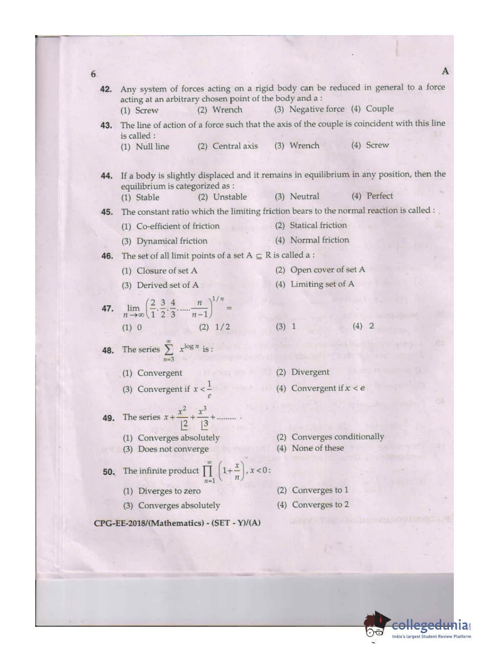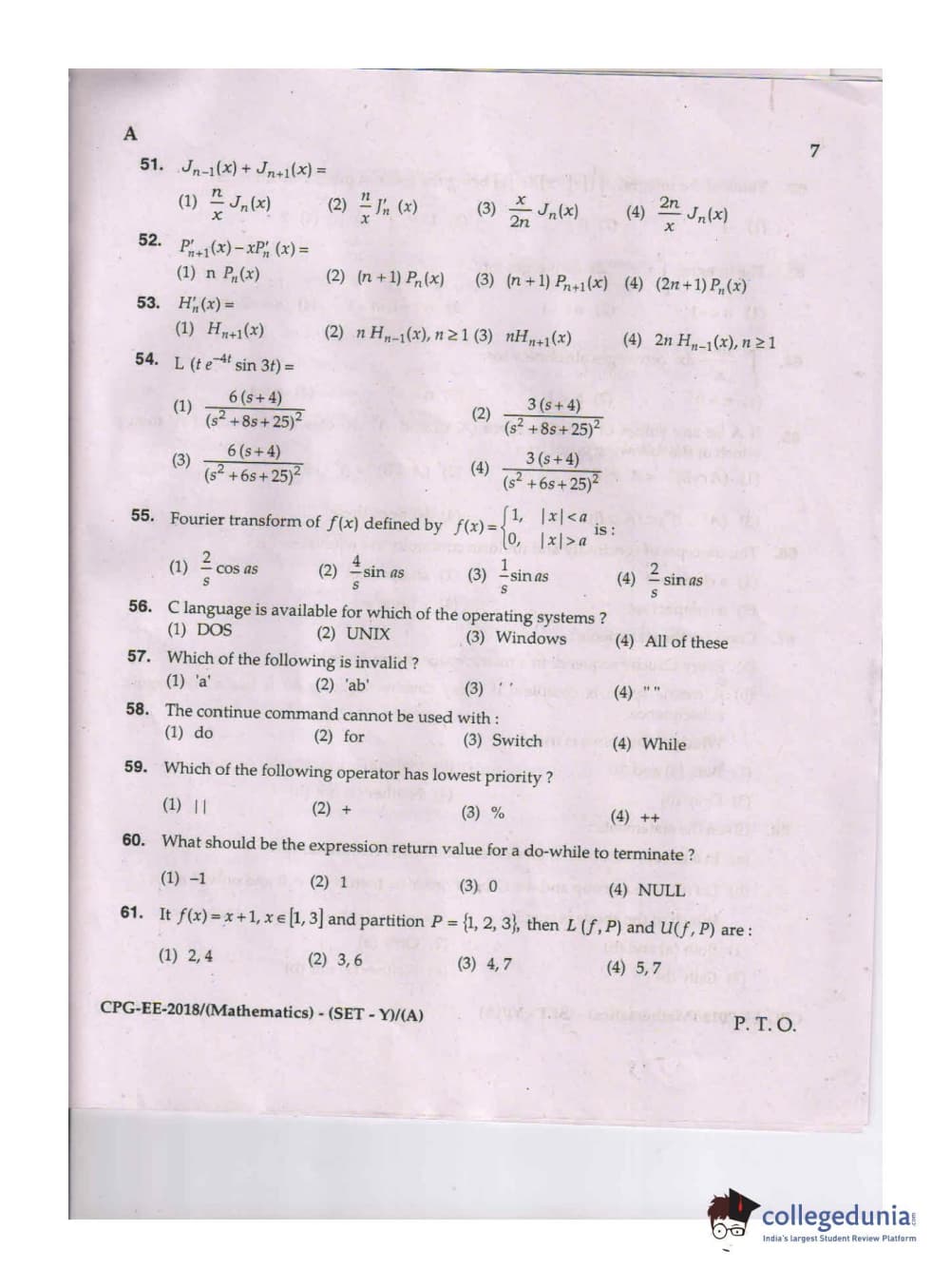 MDUCEE 2018 Mathematics Set A Question Paper with Answer Key PDFs